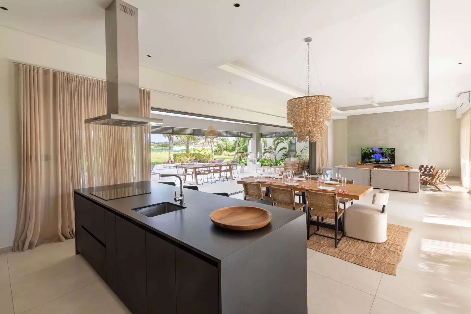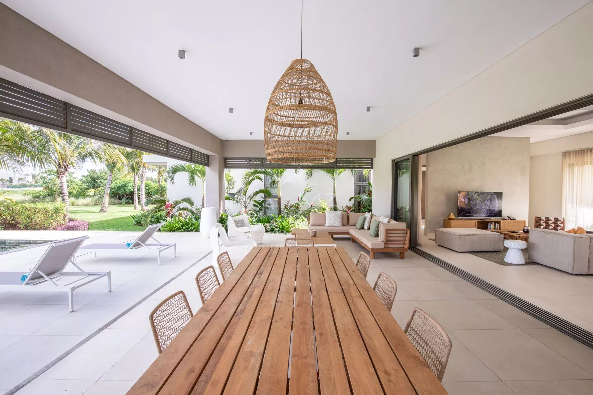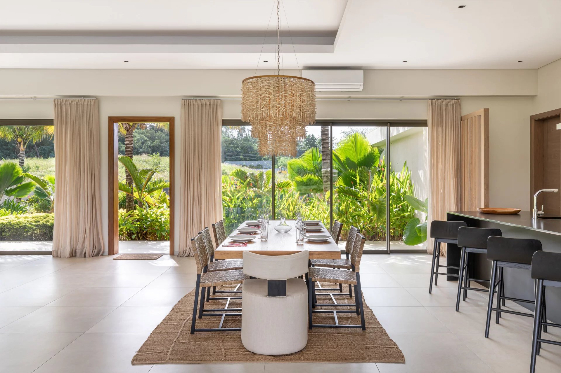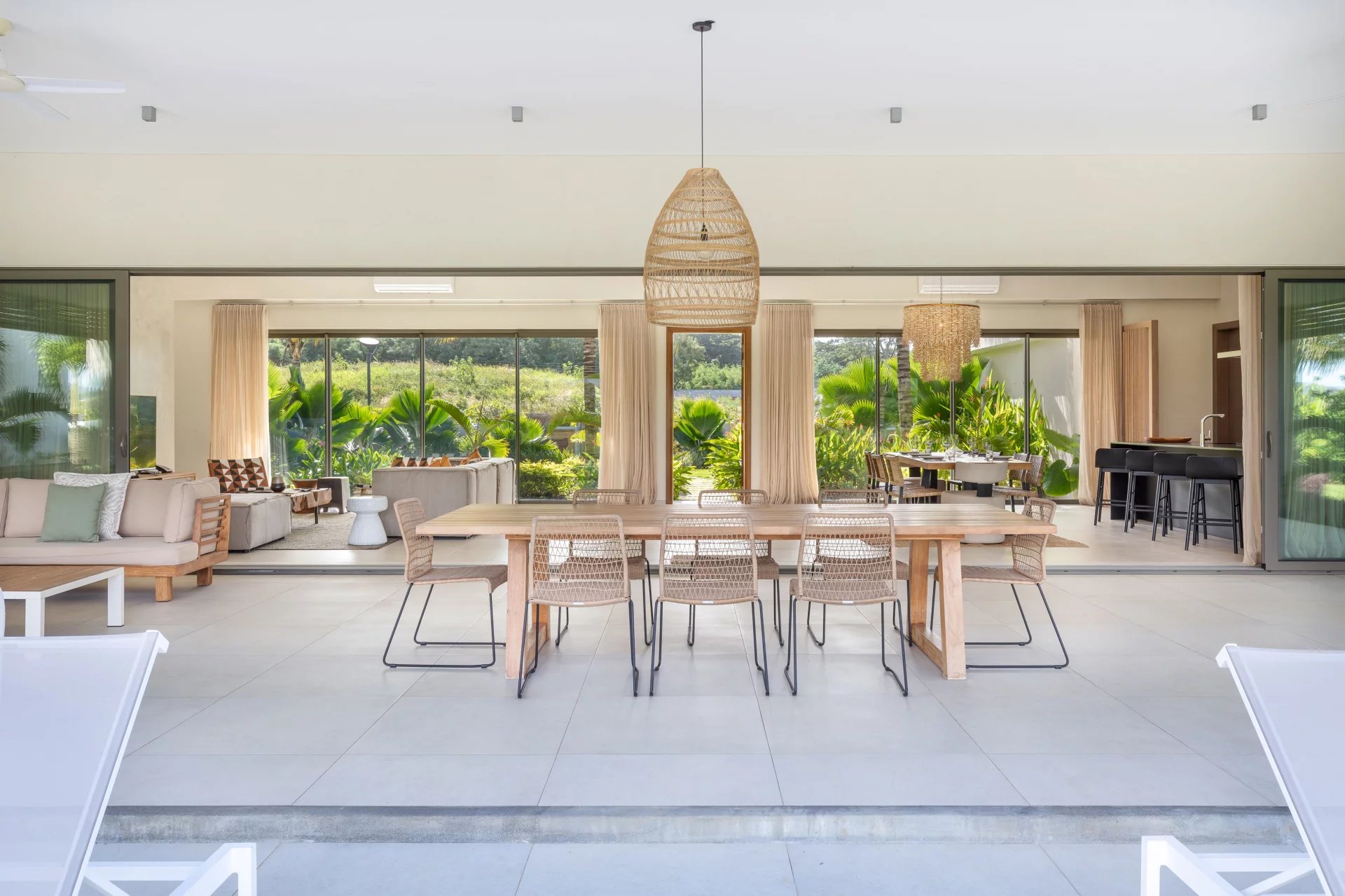 Mit vier Schlafzimmern mit angeschlossenen Badezimmern, Ankleidezimmer und Außendusche im Hauptschlafzimmer verfügt diese Immobilie auch über eine moderne und voll ausgestattete Küche sowie ein geräumiges gemütliches Wohnzimmer. Große Fenster sorgen für eine nahtlose und harmonische Verbindung zwischen Innen- und Außenbereich.