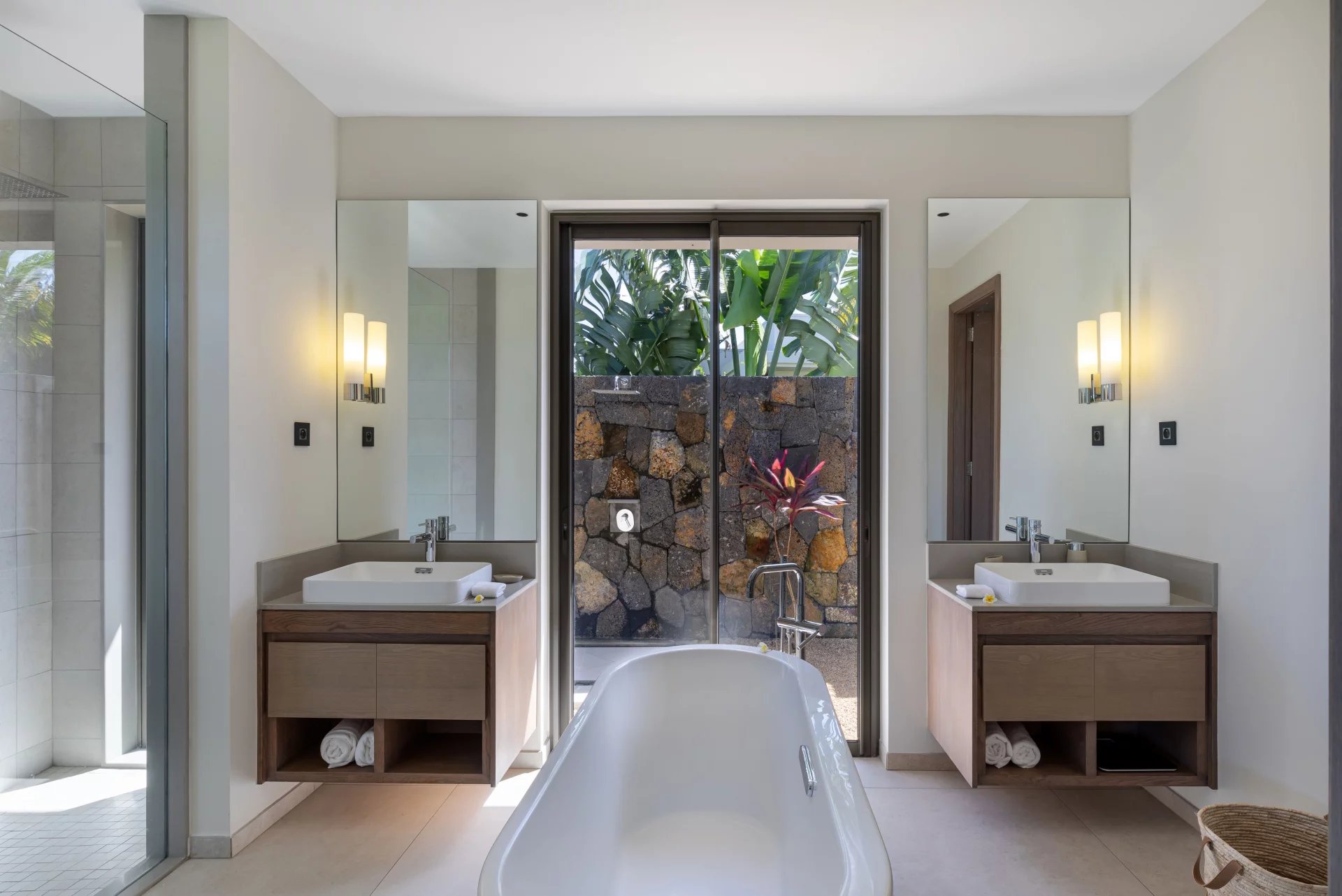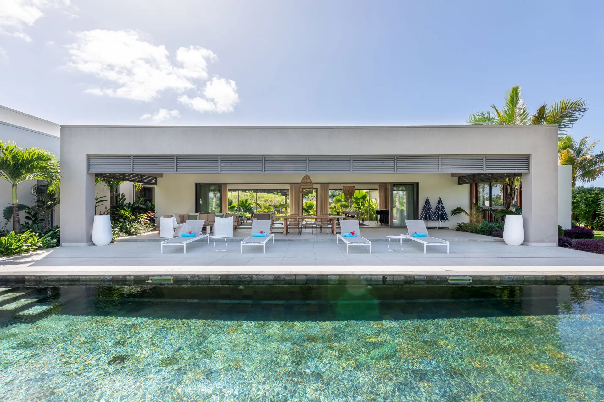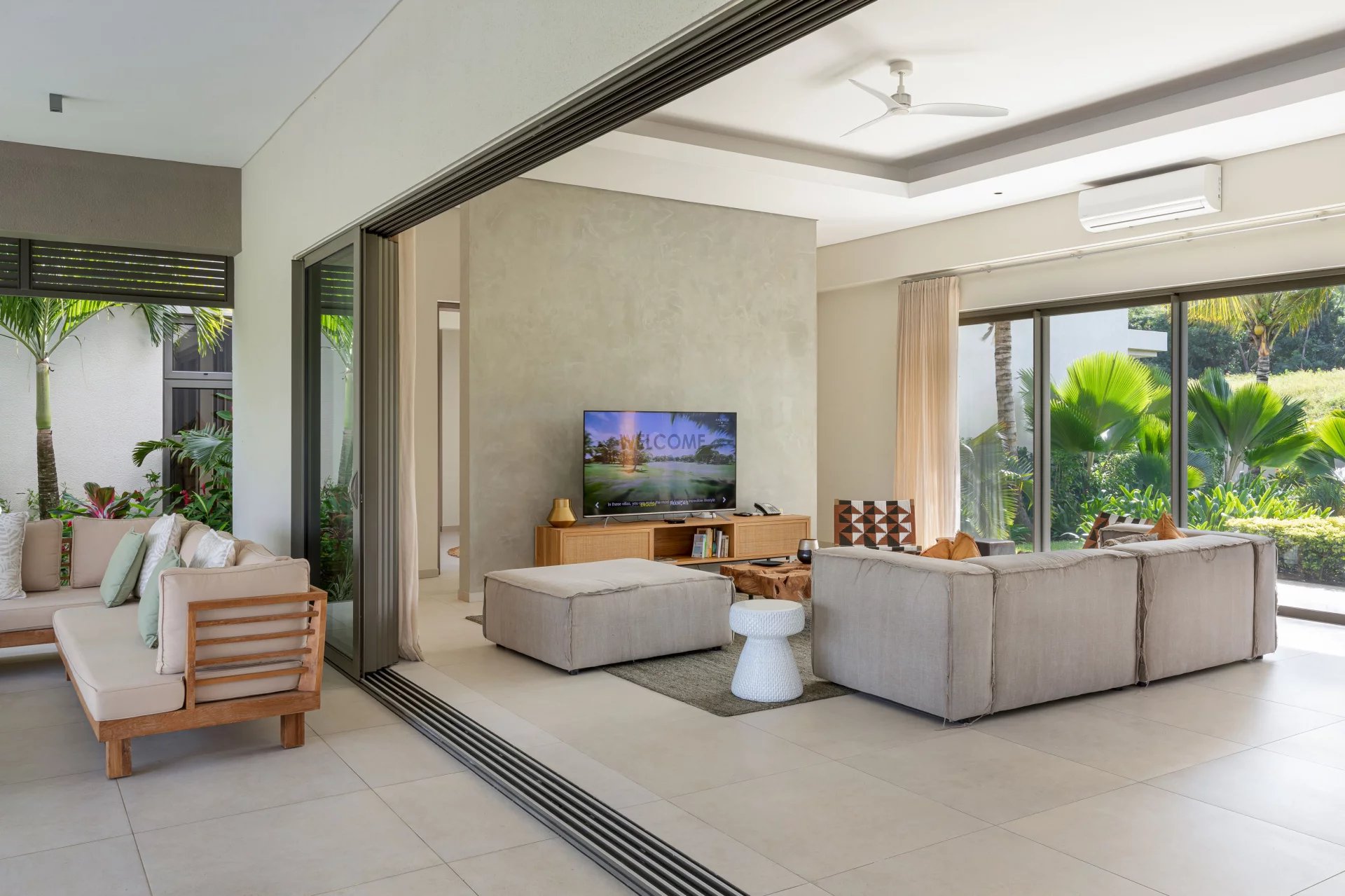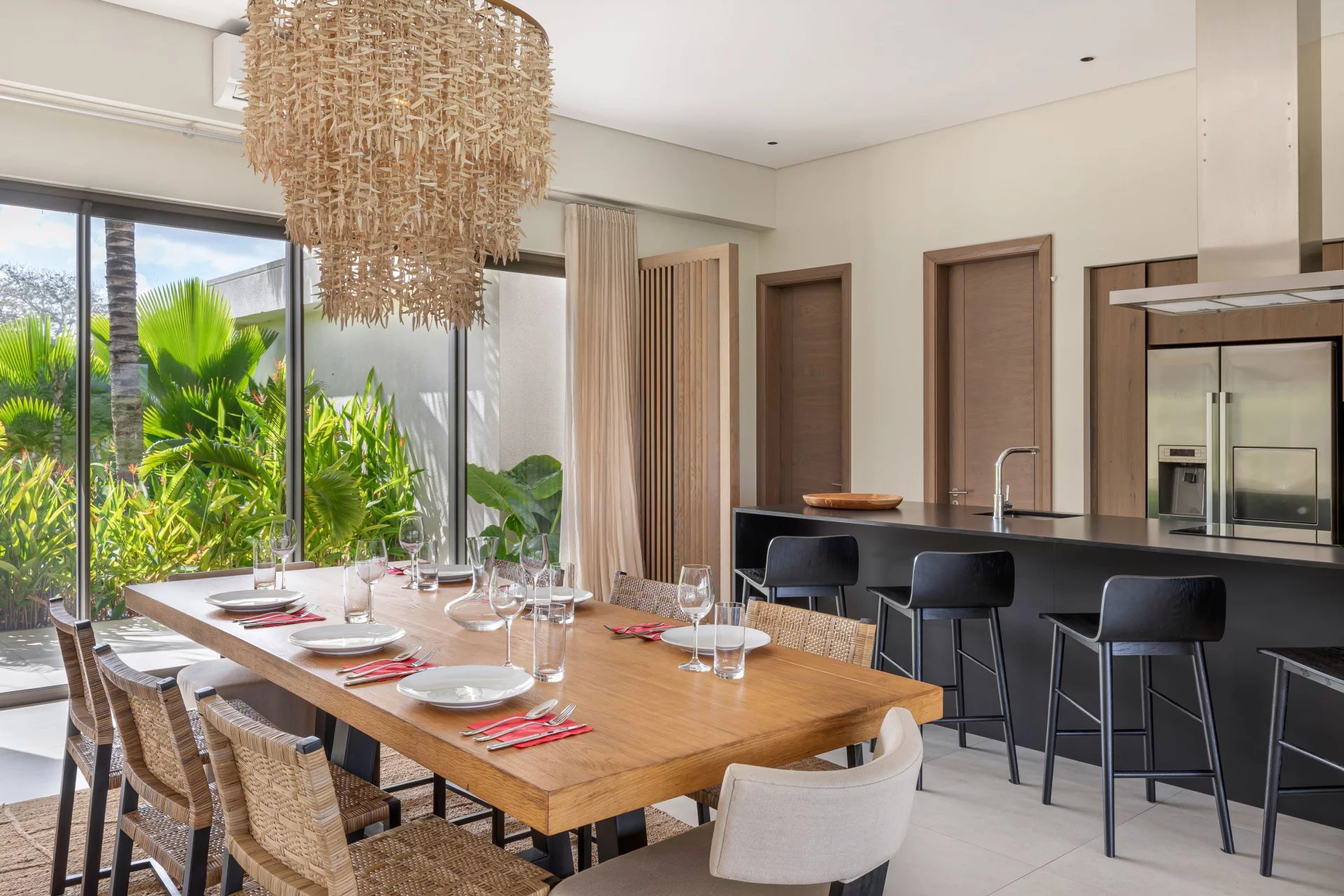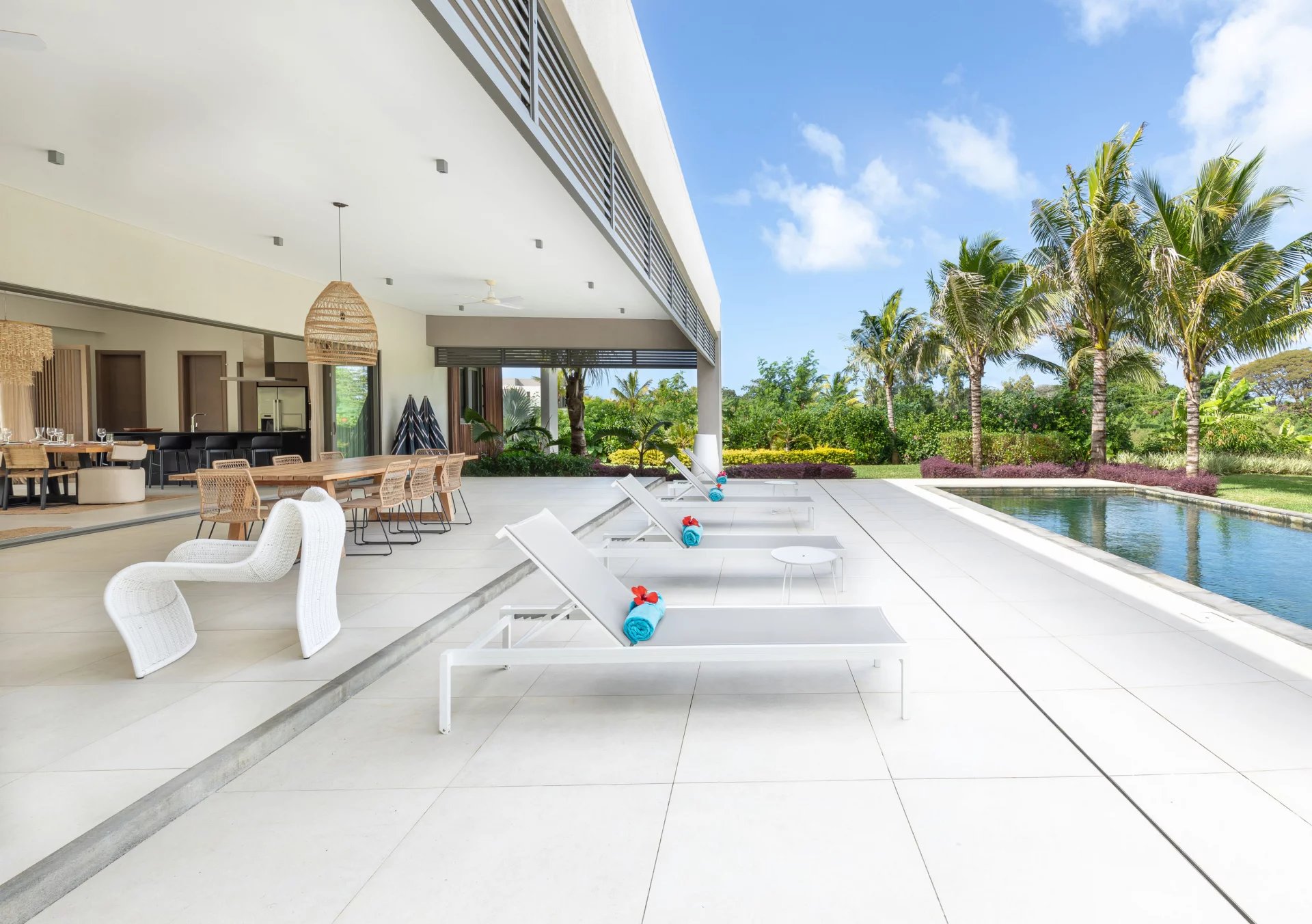 Mit vier Schlafzimmern mit angeschlossenen Badezimmern, Ankleidezimmer und Außendusche im Hauptschlafzimmer verfügt diese Immobilie auch über eine moderne und voll ausgestattete Küche sowie ein geräumiges gemütliches Wohnzimmer. Große Fenster sorgen für eine nahtlose und harmonische Verbindung zwischen Innen- und Außenbereich.