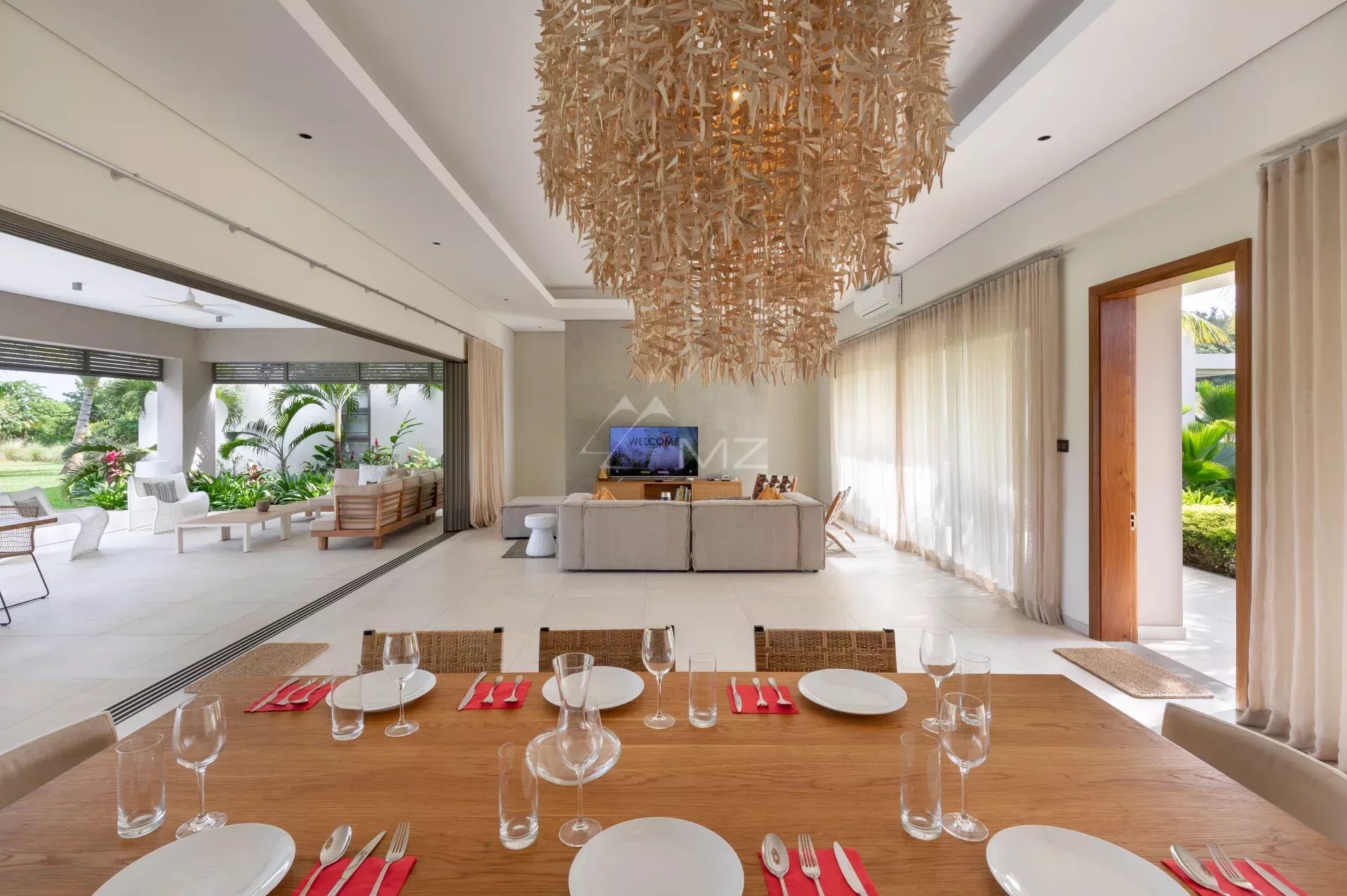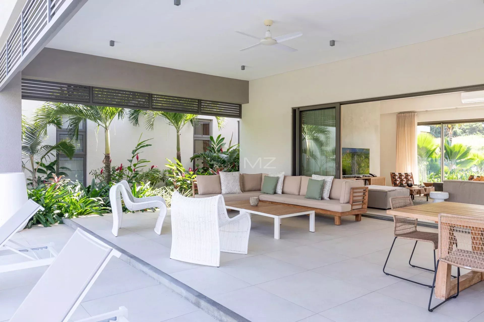 Diese zeitgenössische Villa verfügt außerdem über eine riesige Veranda mit Wohn- und Essbereich im Freien, die auf einen 48 m² großen Pool aus Natursteinen führt. Dies alles in einer eleganten Dekoration mit sanften und natürlichen Farbtönen, die von einer Innenarchitektin gestaltet wurden.