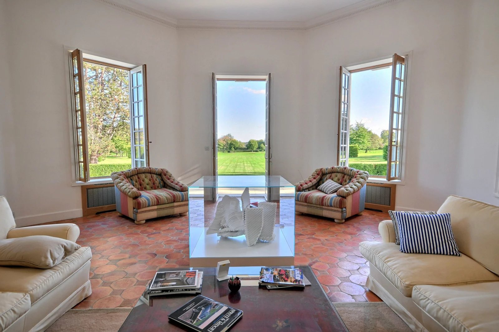 Das Haupthaus mit einer Fläche von 580 m² verfügt über große Wohnräume mit viel Platz und außergewöhnlich viel Licht aufgrund der bemerkenswerten Deckenhöhe und der vielen hohen Fenster.