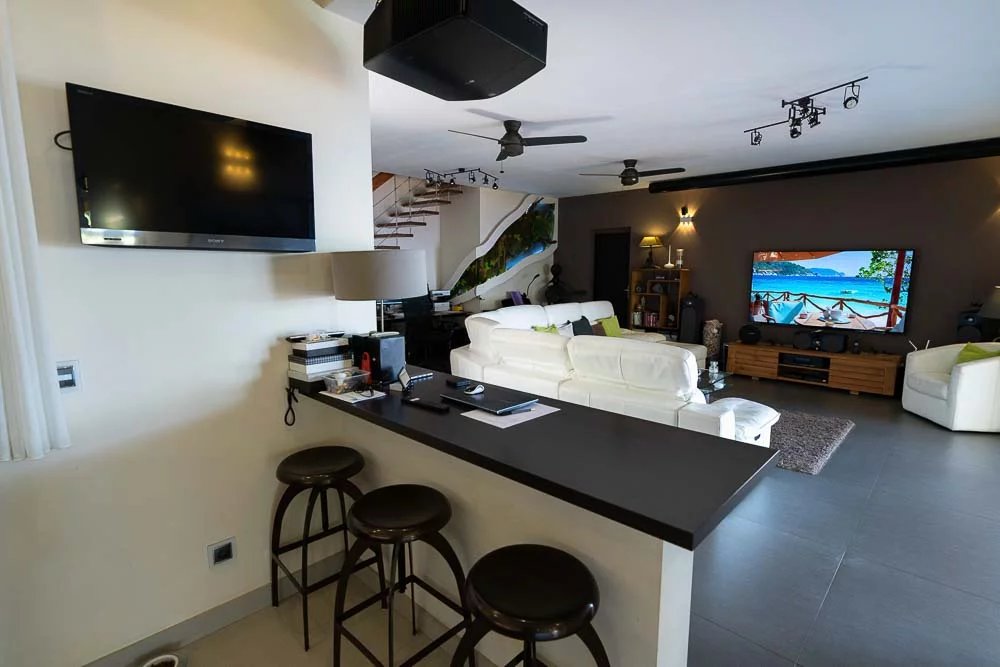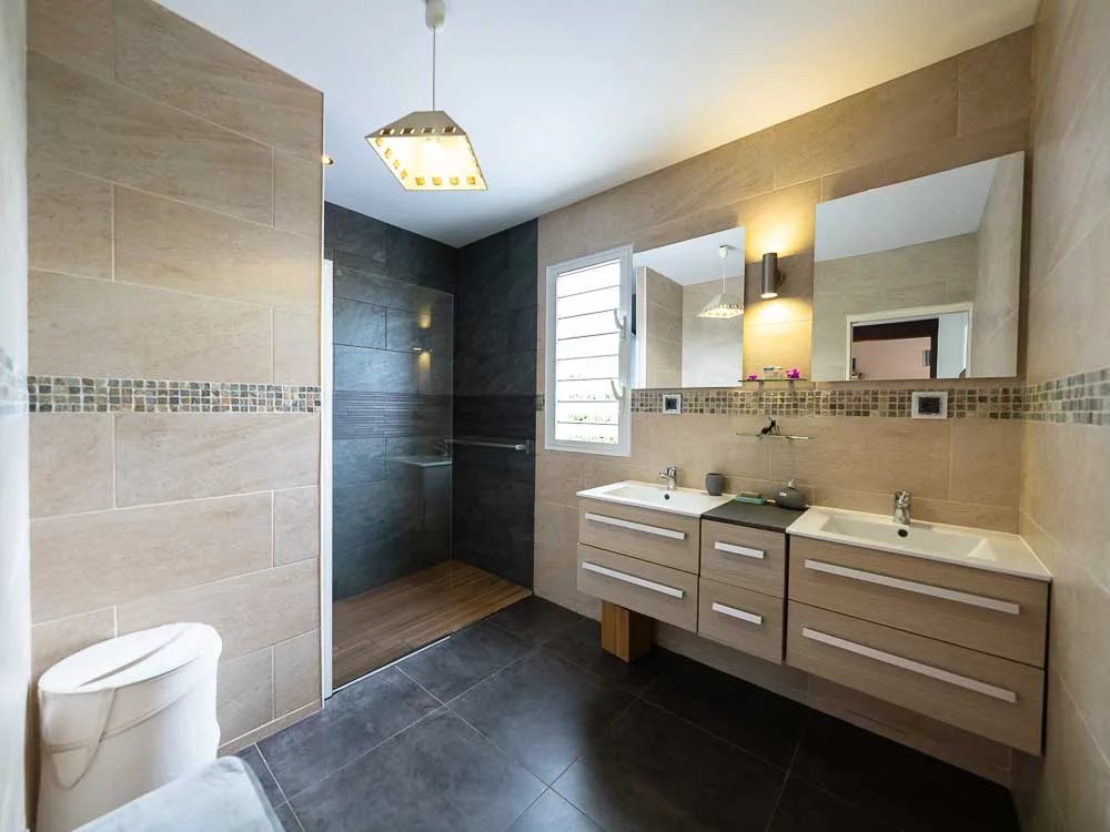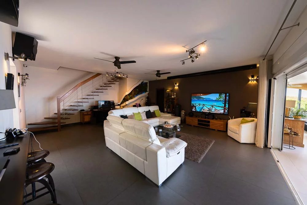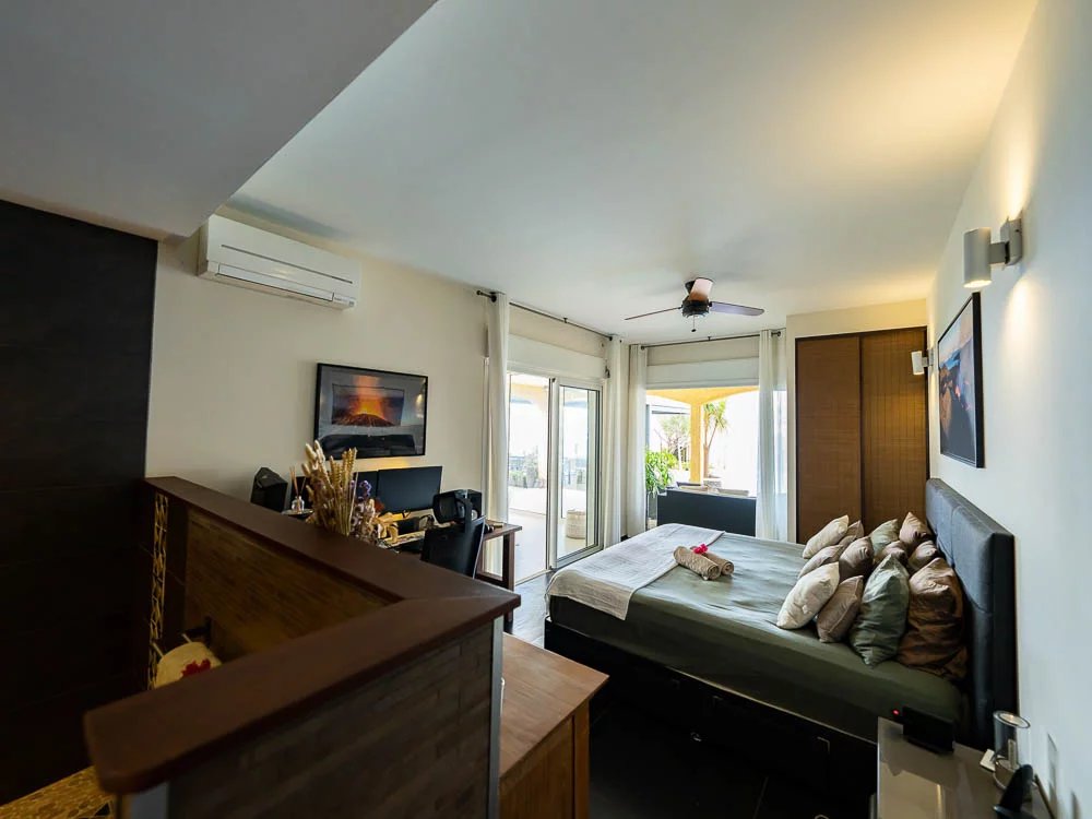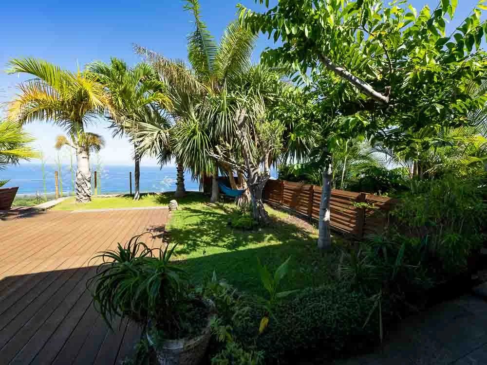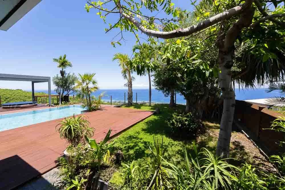 Sie befinden sich bei 120 m über dem Meeresspiegel, am Ende der Sackgasse und am Rande der Schlucht und entdecken eine völlig üppige Wohnumgebung. Mit ihrer dominanten Situation in der Bucht von Saint-Leu bietet sie Ihnen mit Sicherheit eine der schönsten Aussichten, die Sie warten können.