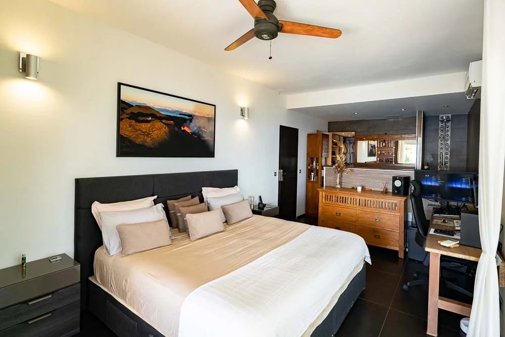 Das Lieblingsstück! Eine riesige elterliche Suite bietet Ihnen eine völlig einzigartige Situation, die sich der Schlucht und dem Ozean zuwendet. Zimmer, riesiger Umkleidekabine mit Schieberschrank, einziehbarem Fernseher, italienischem Duschraum und vor allem eine zentrale Badewanne mit außergewöhnlicher offener Aussicht!