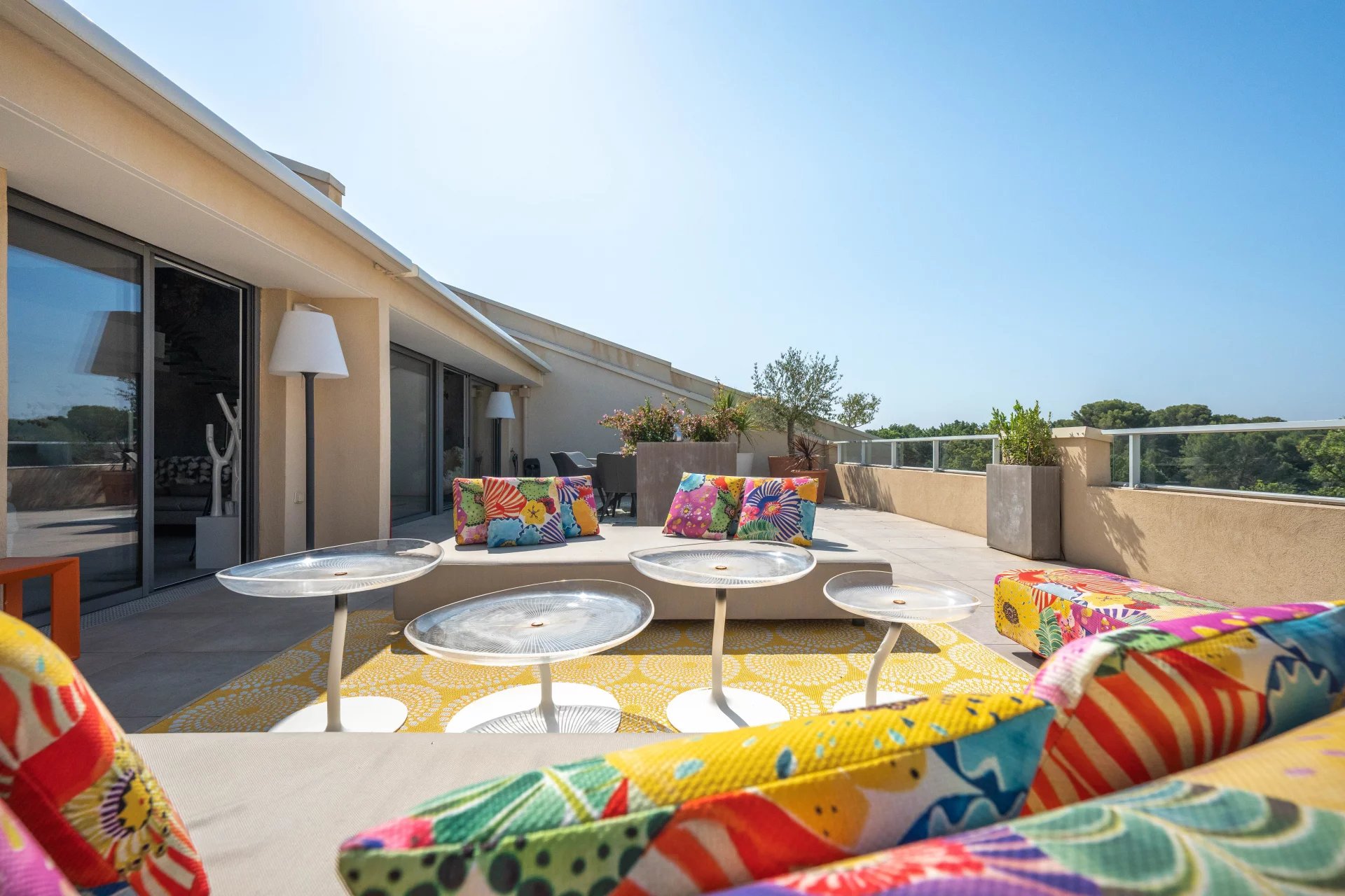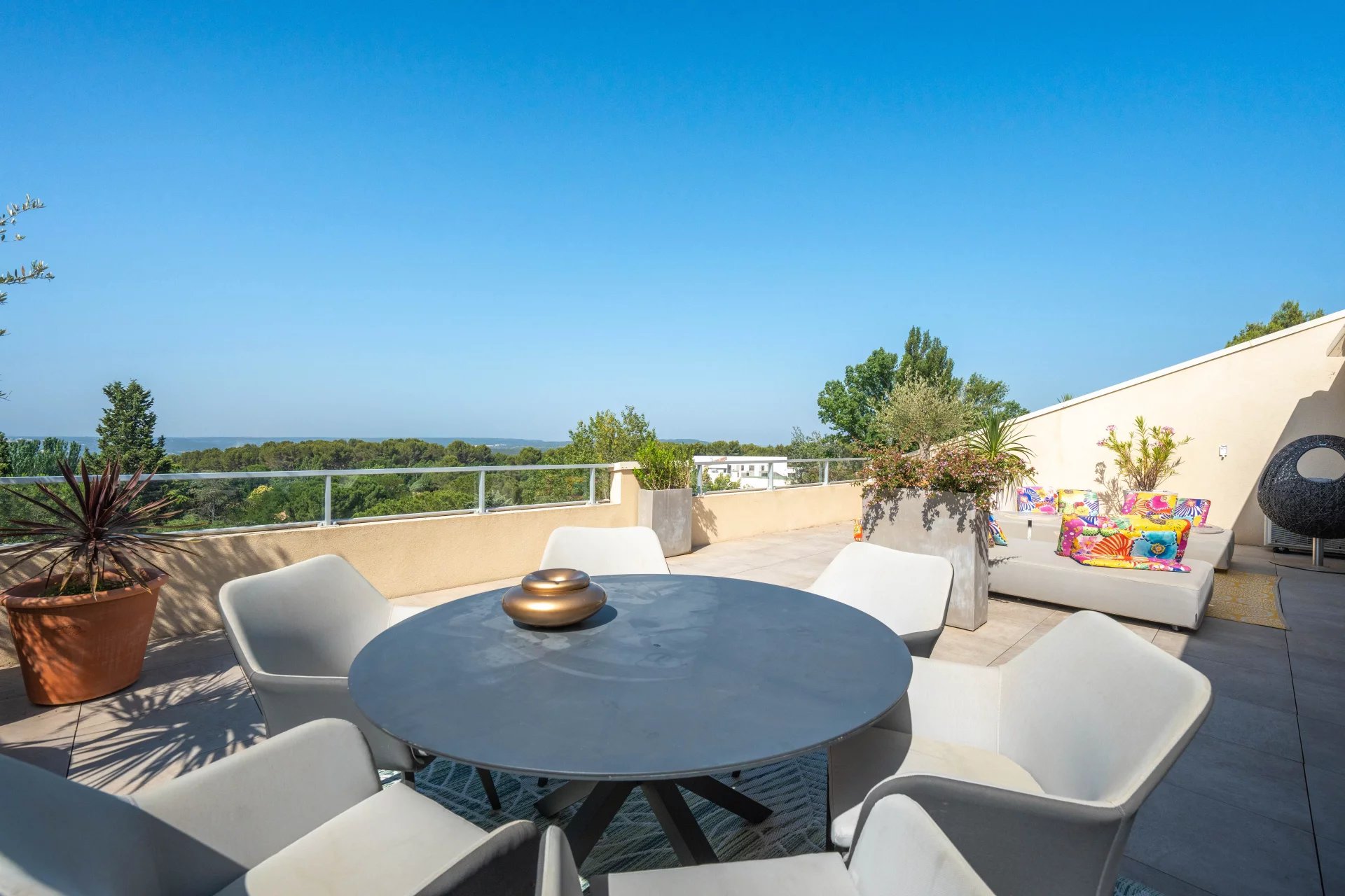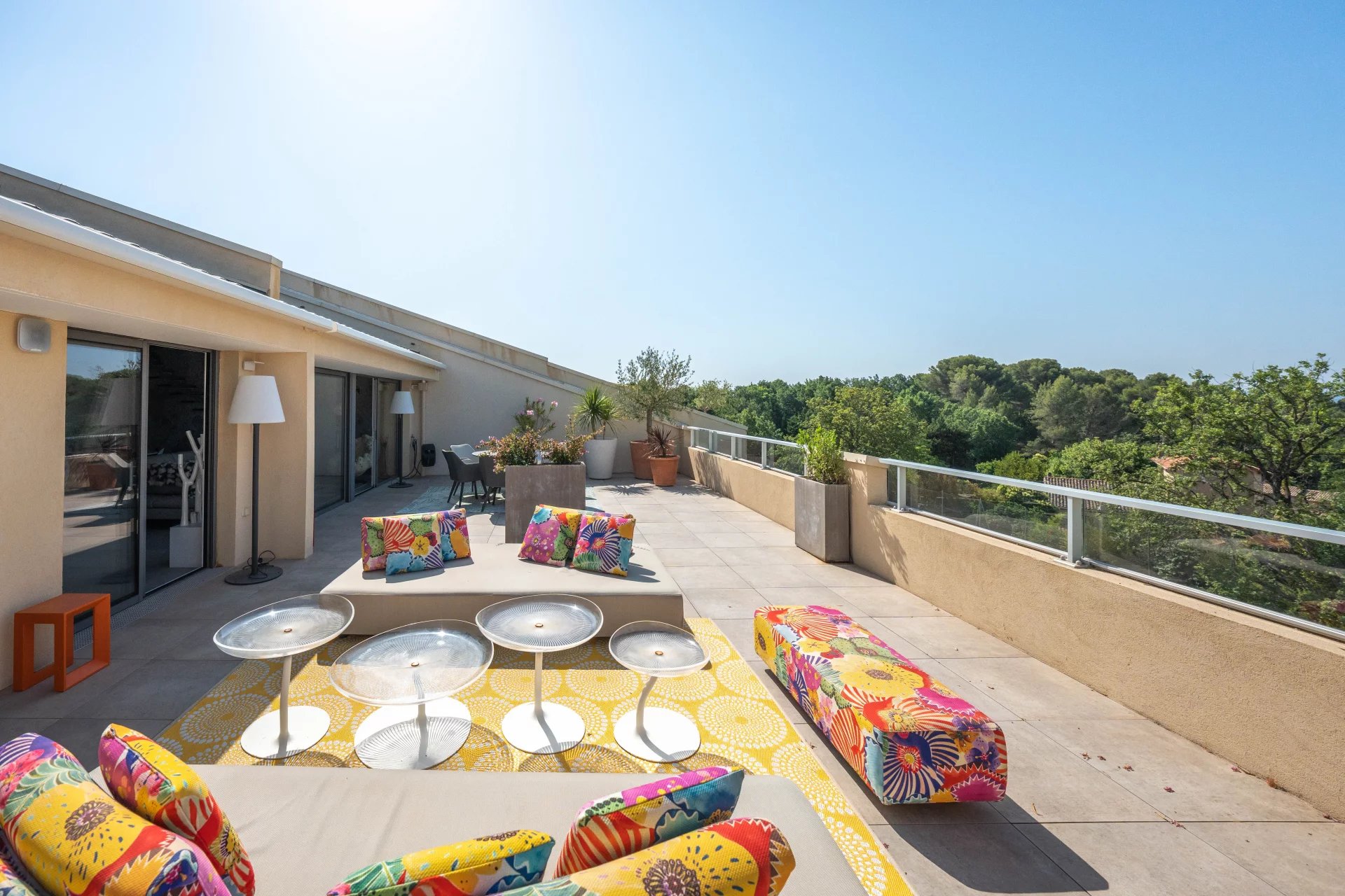 Entdecken Sie diese 200 m² (186,23 m² Carrez Law) große Maisonette-Wohnung mit 100 m² Terrassen im obersten Stockwerk eines Luxusgebäudes in bester Lage in Aix-en-Provence, nur wenige Schritte vom renommierten Set-Club entfernt.