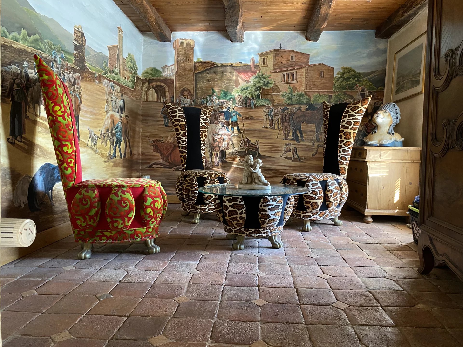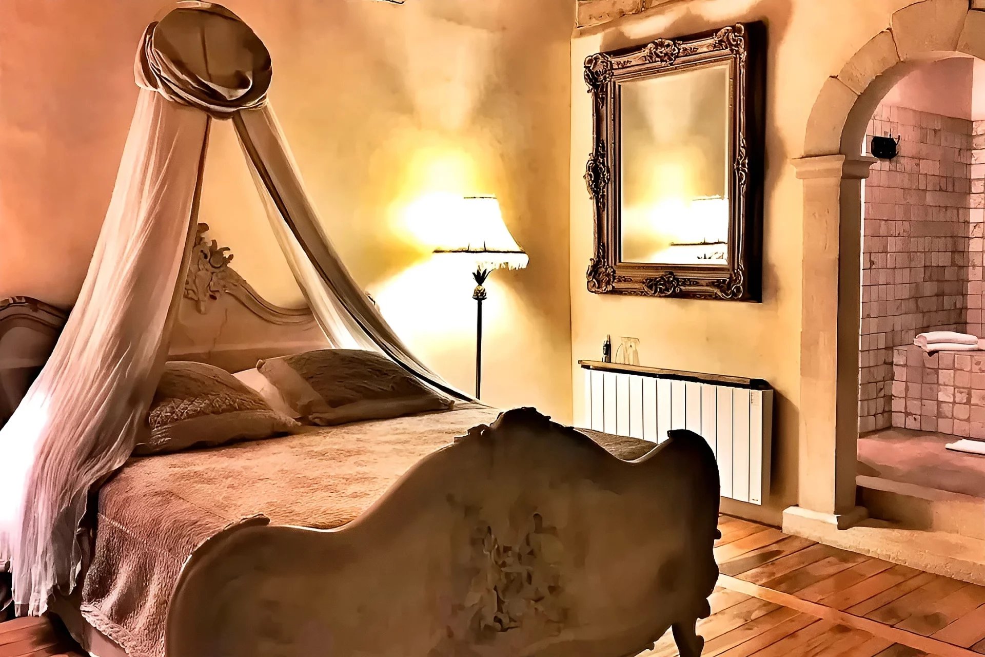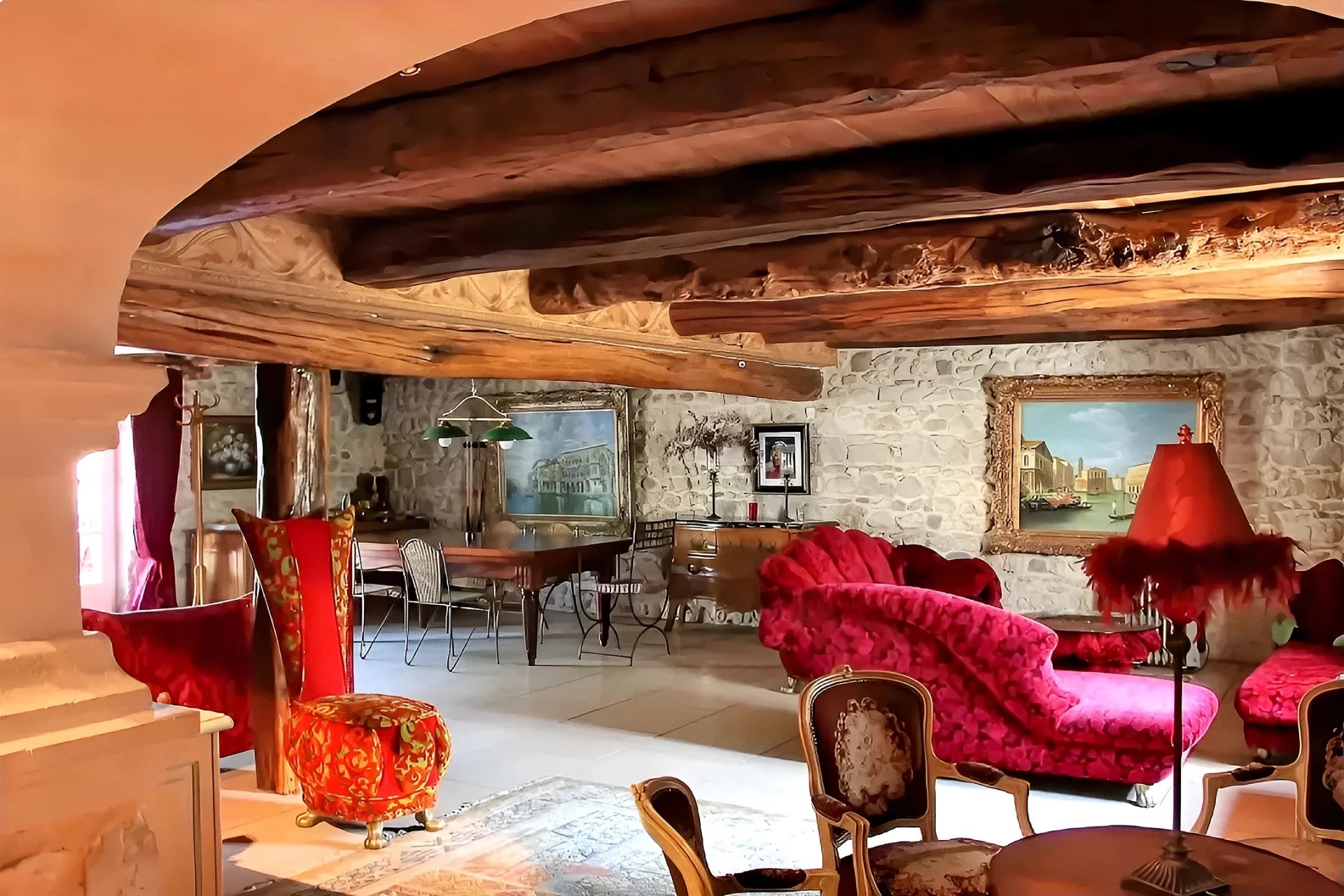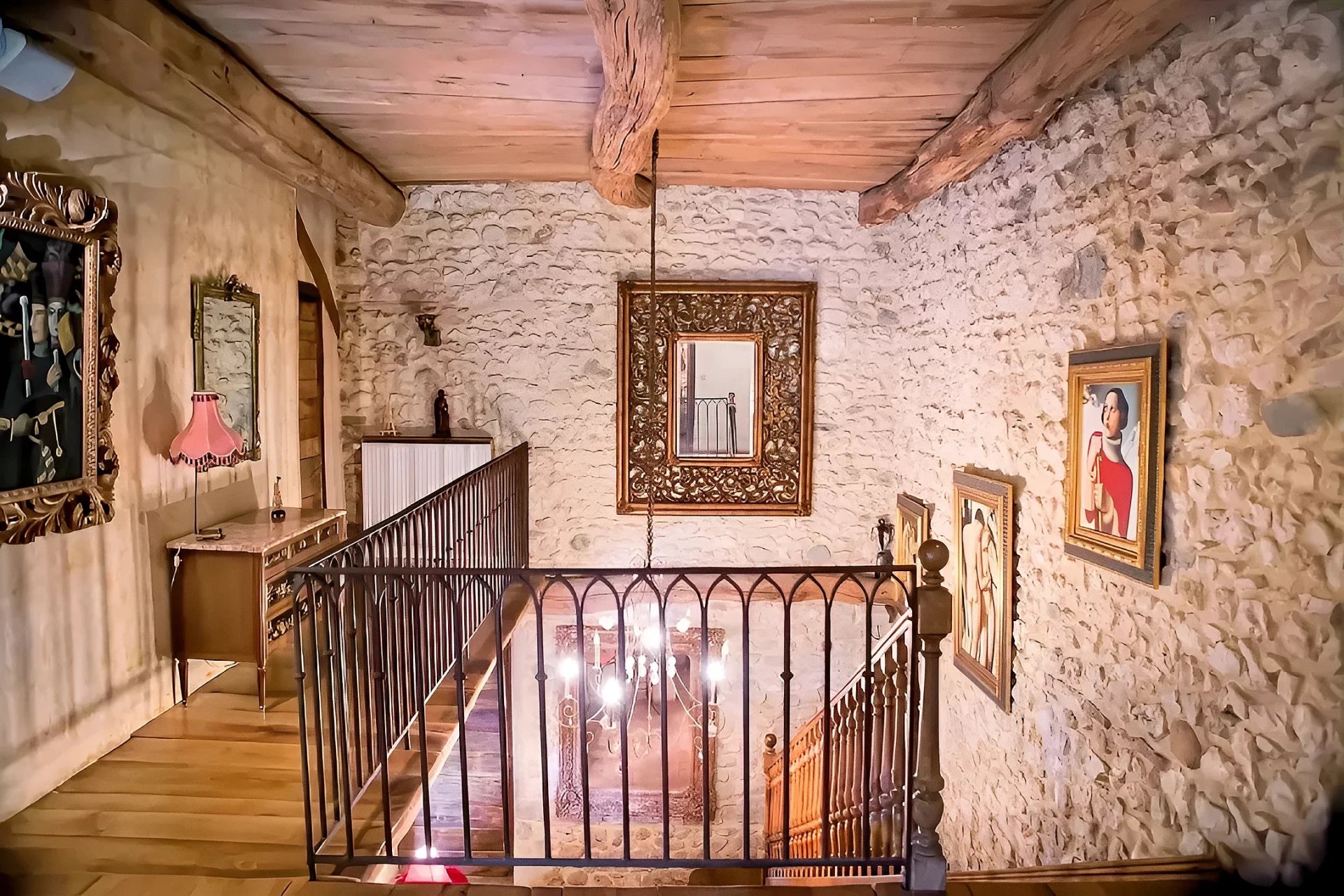 Das Haupthaus, elegant gebaut mit freiliegenden Steinwänden, verführt mit seinem authentischen Charme. Im Erdgeschoss finden sich ein Wohnzimmer mit Fresken, eine französische Decke, ein offener Kamin und eine Küche, die offen zum Esszimmer führt. Im Obergeschoss befinden sich vier schöne Schlafzimmer, zwei Badezimmer – ideal für eine Familie oder als elegantes Gästehaus.