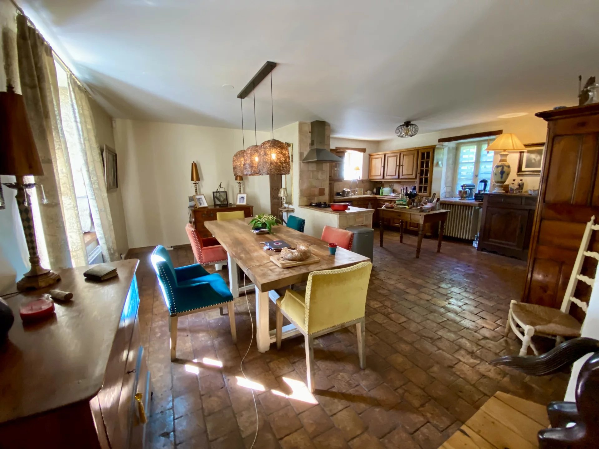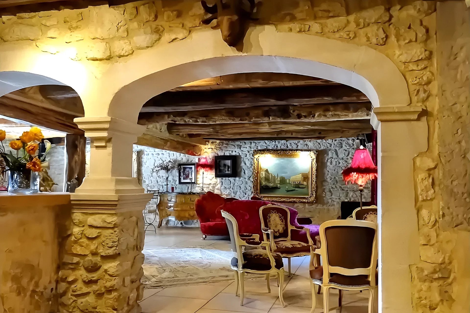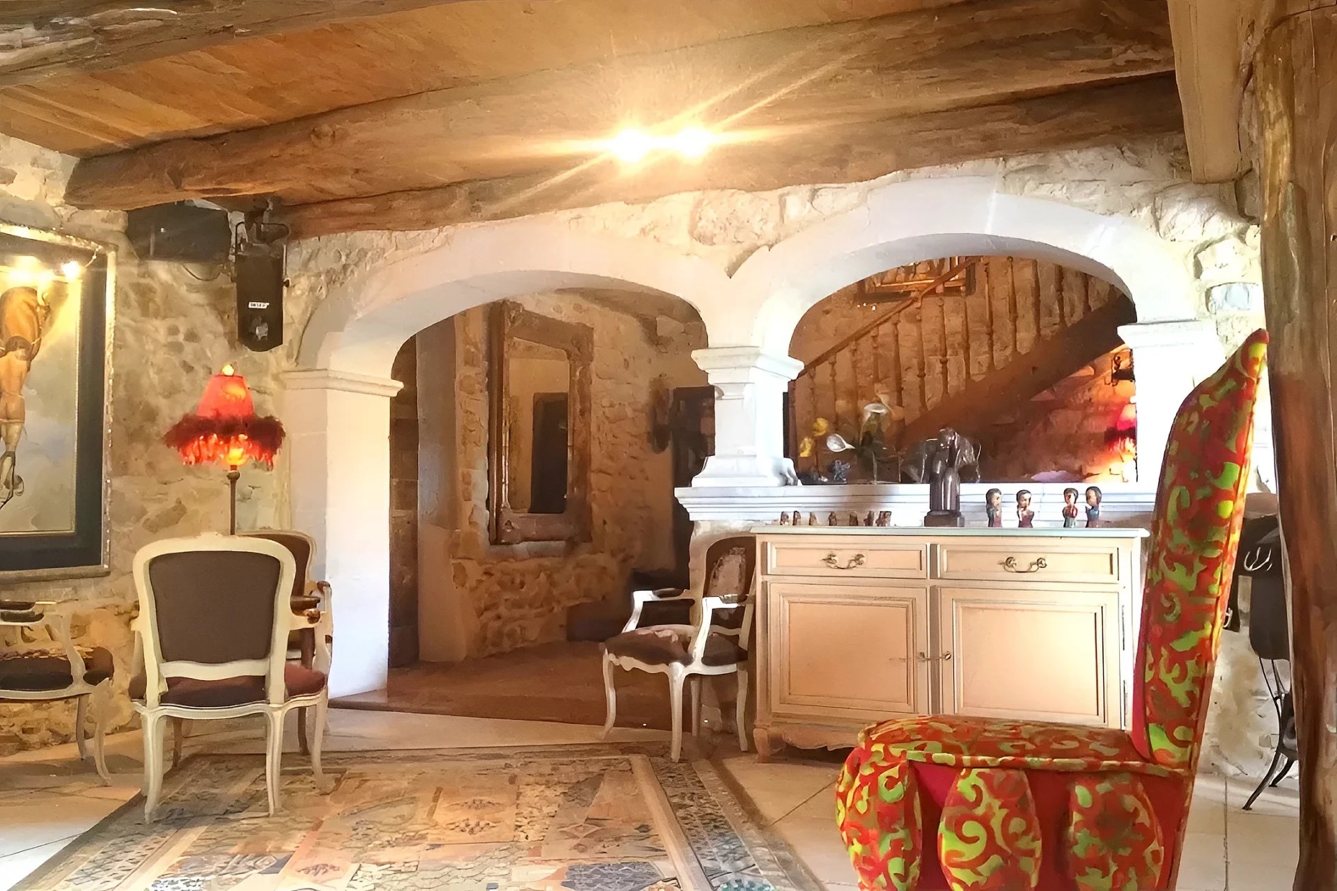 Das Hauptmerkmal des Anwesens ist sicherlich die ehemalige Stallung, die in eine riesige Empfangshalle umgebaut wurde, geschmückt mit prächtigen Steinmauern, einem majestätischen Holzgebälk, einer intimen Galerie und einer großen Bar. Dieser außergewöhnliche Raum bietet Platz für bis zu 120 Personen und ist der ideale Ort für private oder geschäftliche Veranstaltungen. Eine große Terrasse und ein großzügiger Parkplatz vervollständigen diesen außergewöhnlichen Ort.