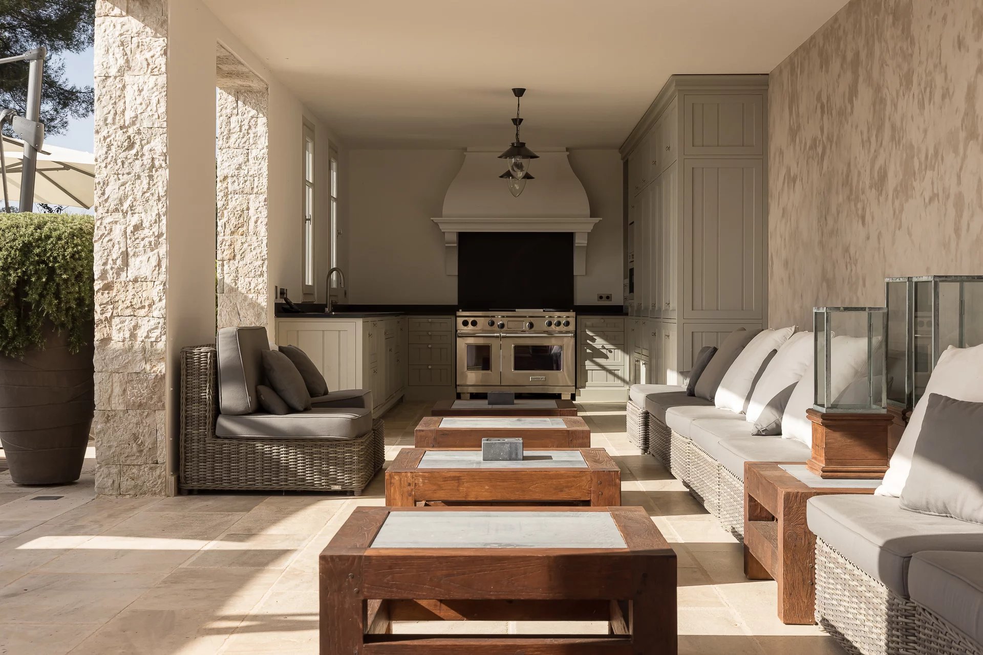 Der schöne beheizte Infinity-Pool mit Jacuzzi sowie die überdachte Terrasse mit einer Outdoor-Lounge mit Sommerküche und Bar laden zum Entspannen und Genießen des Mittelmeers, der Sonnenuntergänge und des Feuerwerks ein.