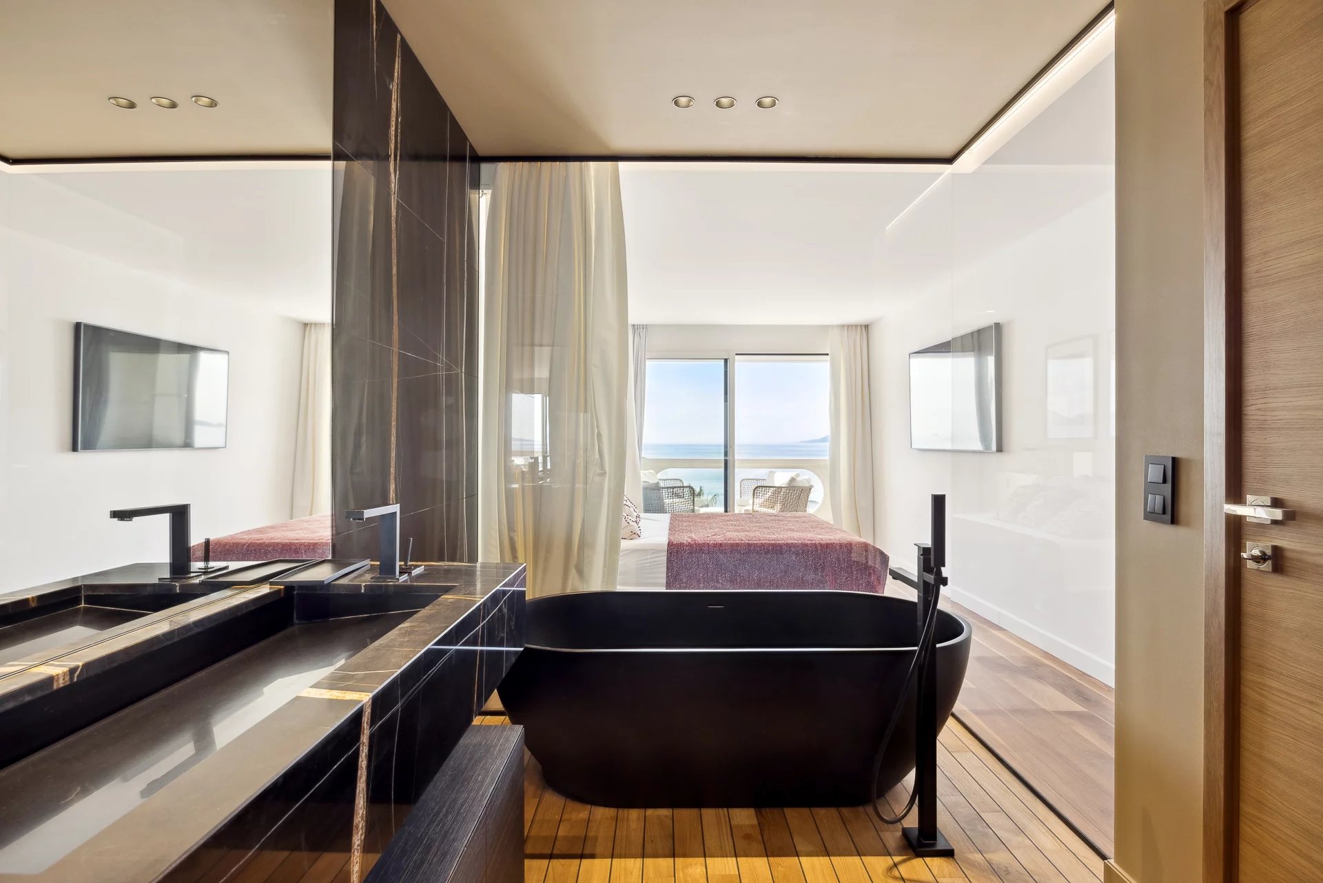 In einer der begehrtesten Residenzen von La Croisette befindet sich eine wunderschöne, helle 3-Zimmer-Wohnung von ca. 100 m², die komplett renoviert wurde und eine hochwertige Ausstattung und eine große Terrasse bietet.