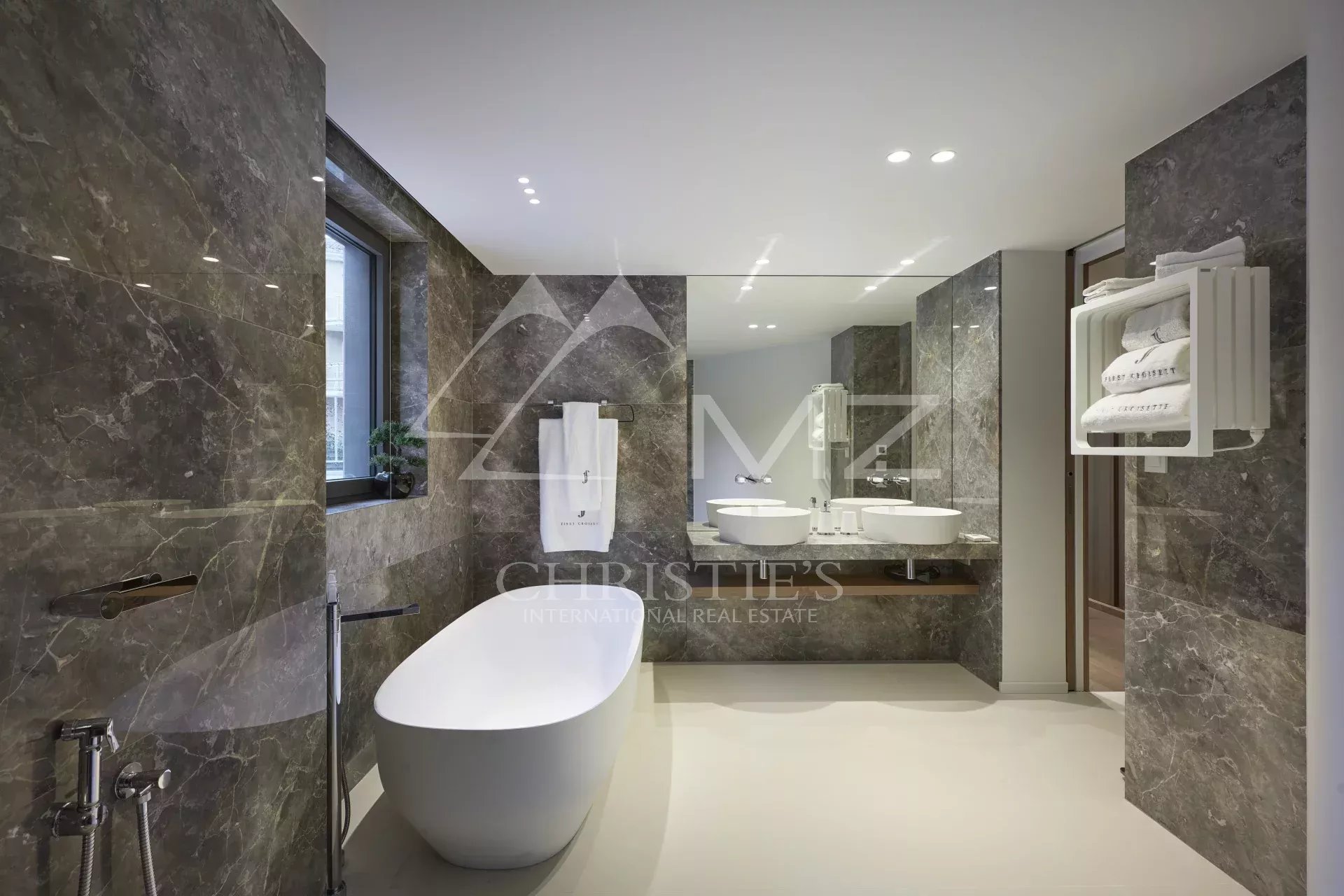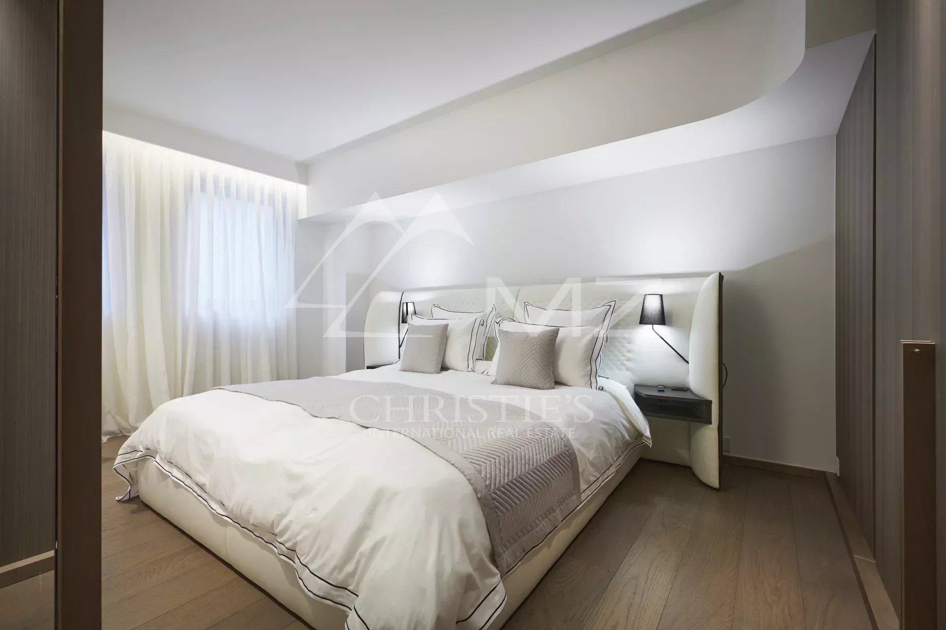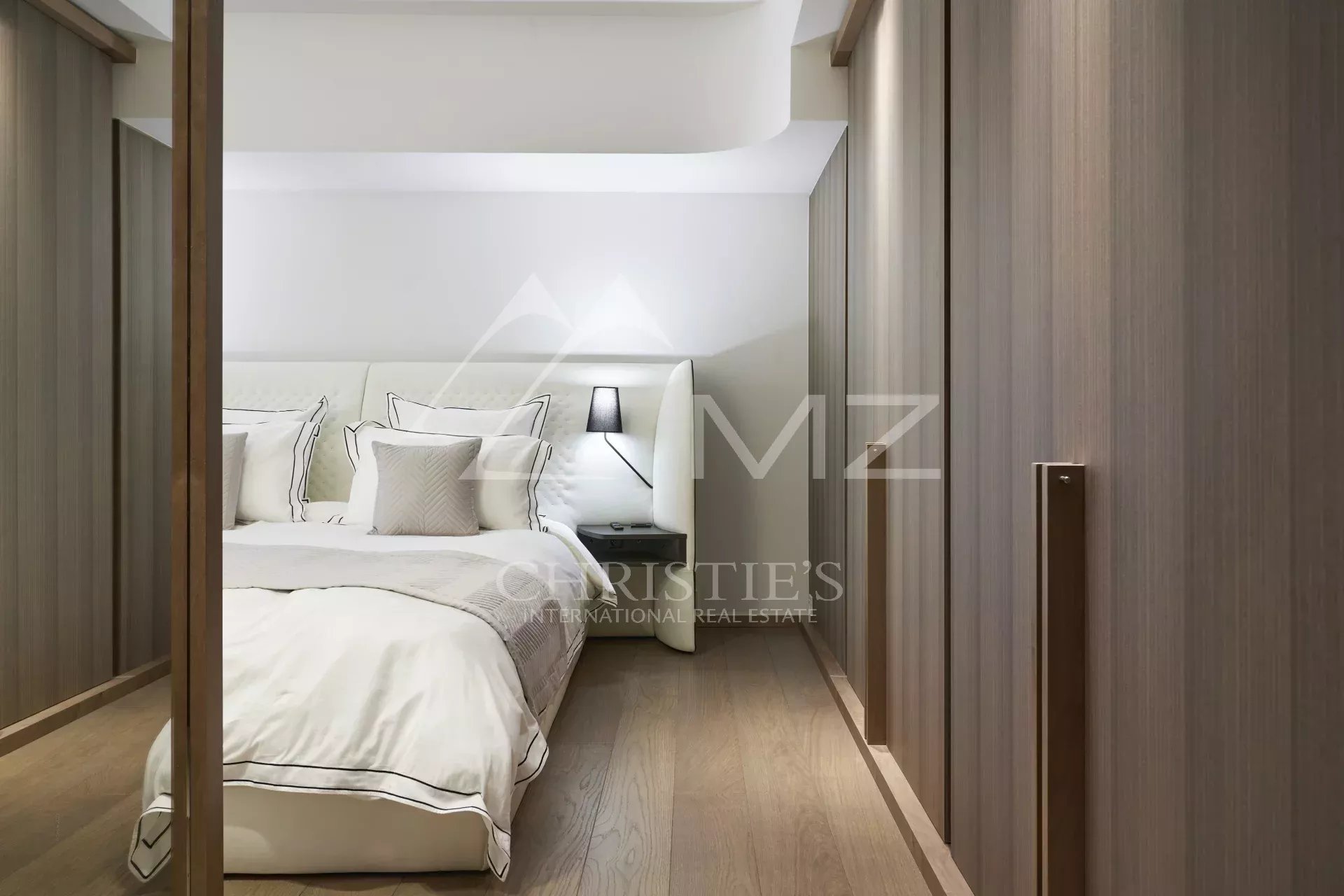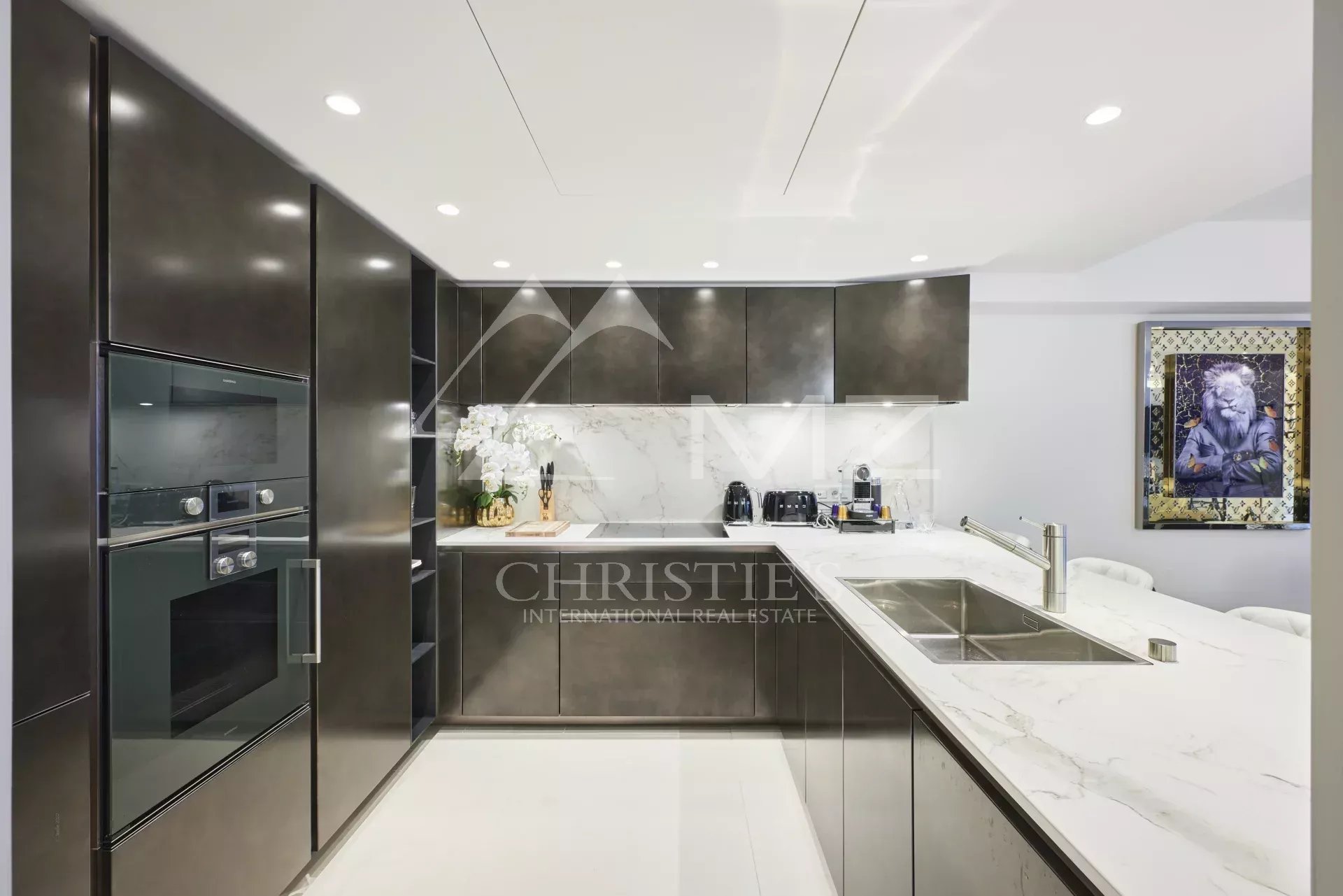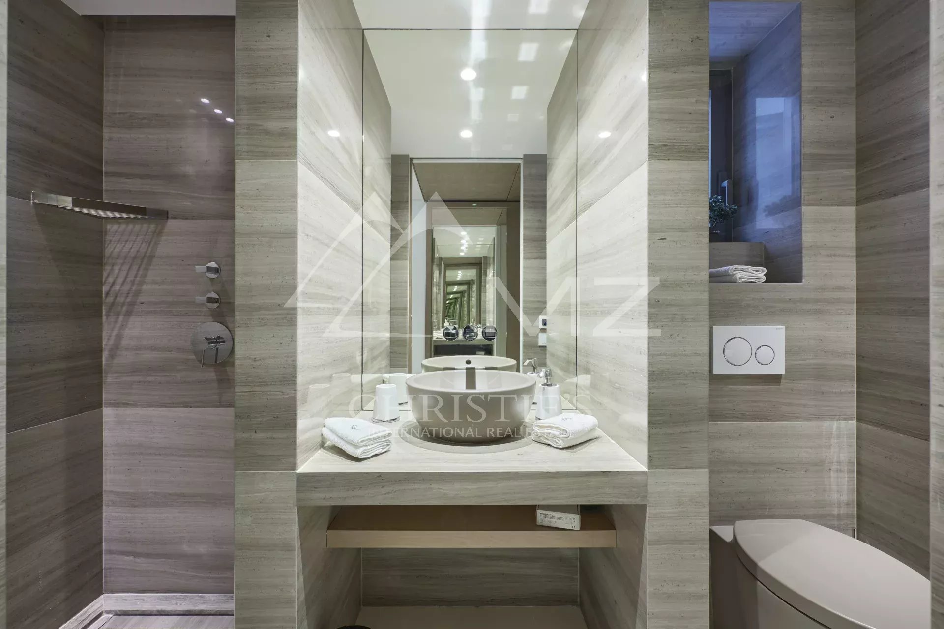 203 - Situé dans un immeuble neuf de la Croisette, en face du Palais des festivals, appartement de 114m² environ, comprenant : un séjour, une salle à manger, une cuisine équipée, une chambre en suite avec salle de douche et une chambre de maitre avec salle de bains/douche. Service conciergerie sur place. Idéal congrès et vacances.