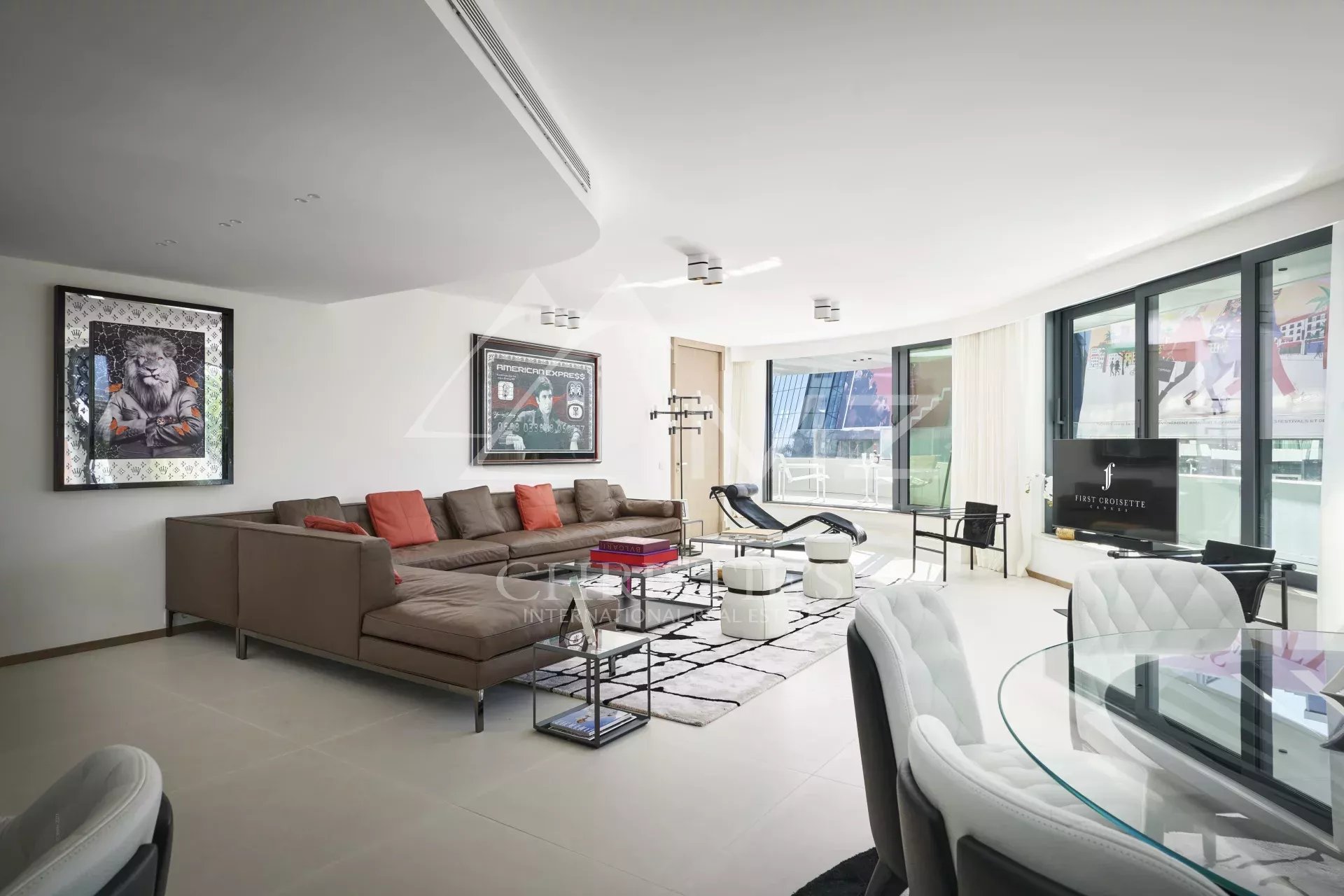 201 - In einem neuen Gebäude auf der Croisette, gegenüber dem Palais des Festivals, befindet sich eine Wohnung von ca. 175m², bestehend aus: einem Wohnzimmer, einem Esszimmer, einer Einbauküche, zwei Schlafzimmern en suite mit Duschbad und einem Hauptschlafzimmer mit Bad/Dusche. Concierge-Service vor Ort. Ideal für Kongresse und Ferien.