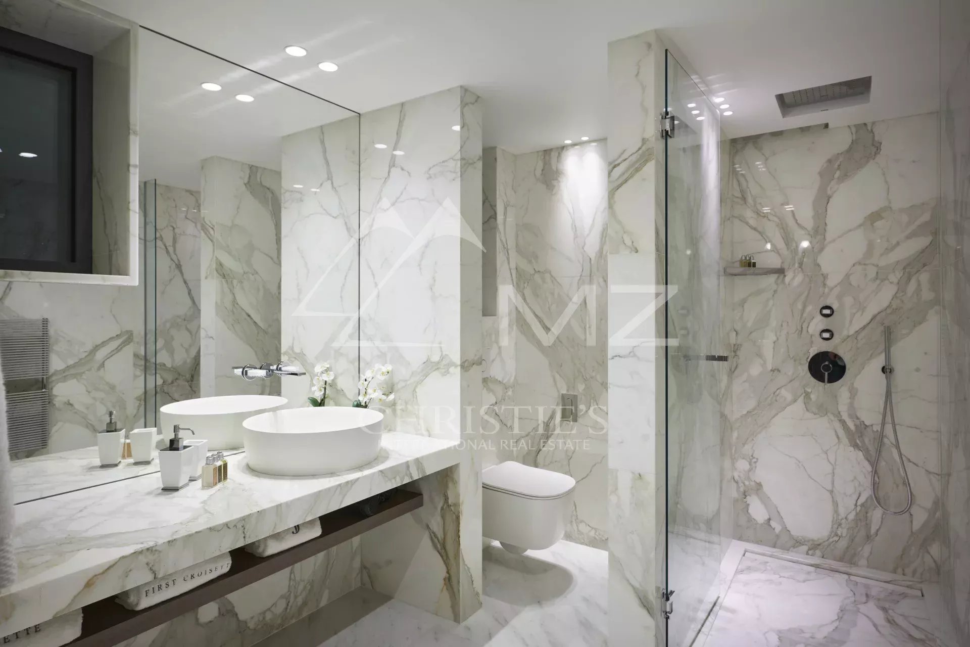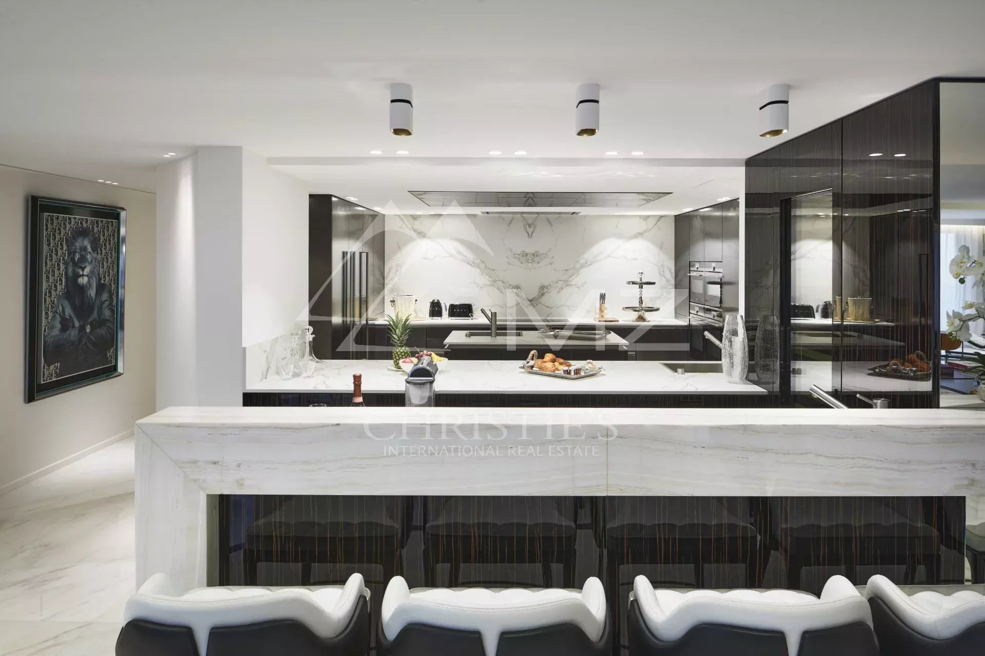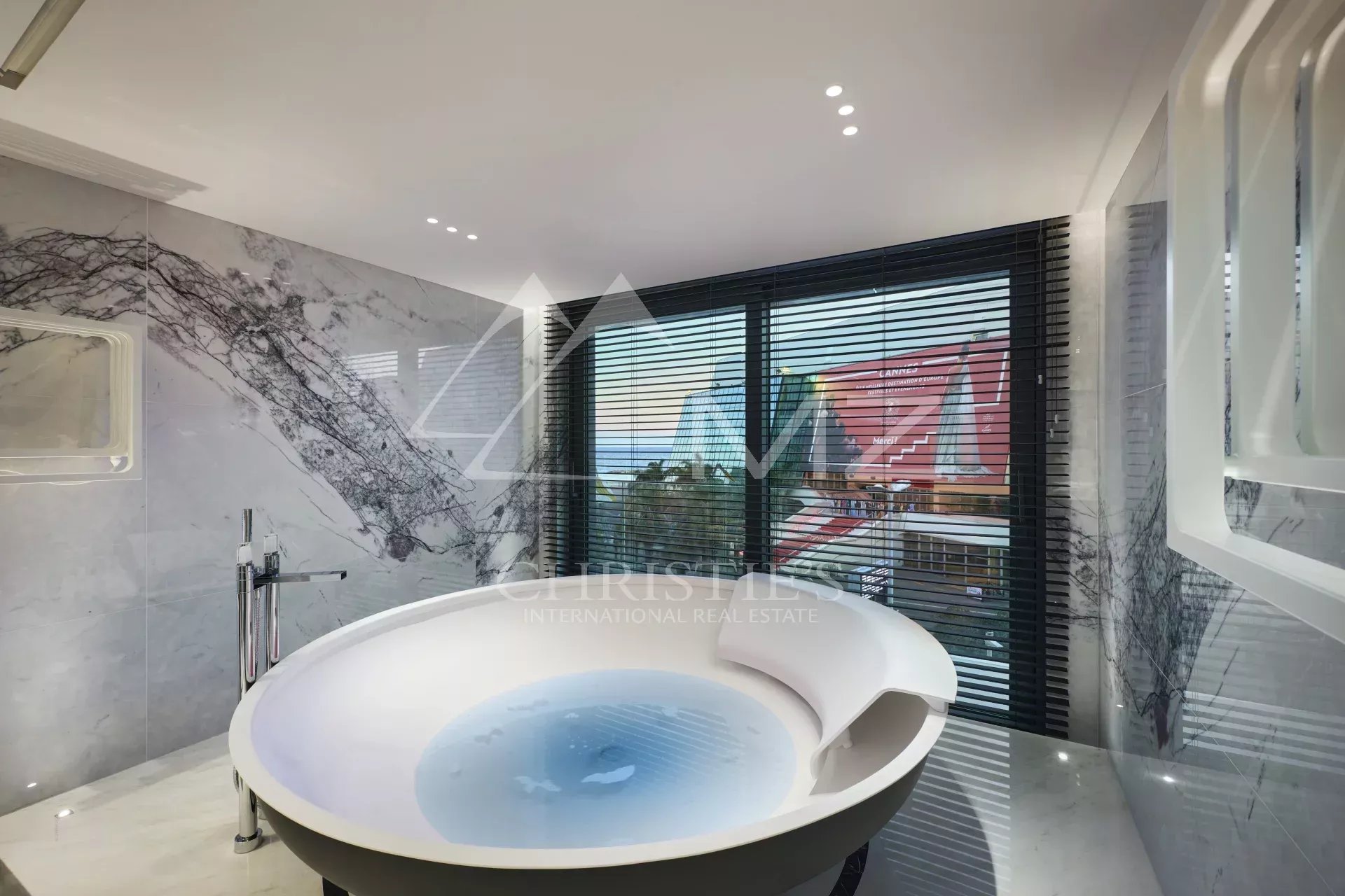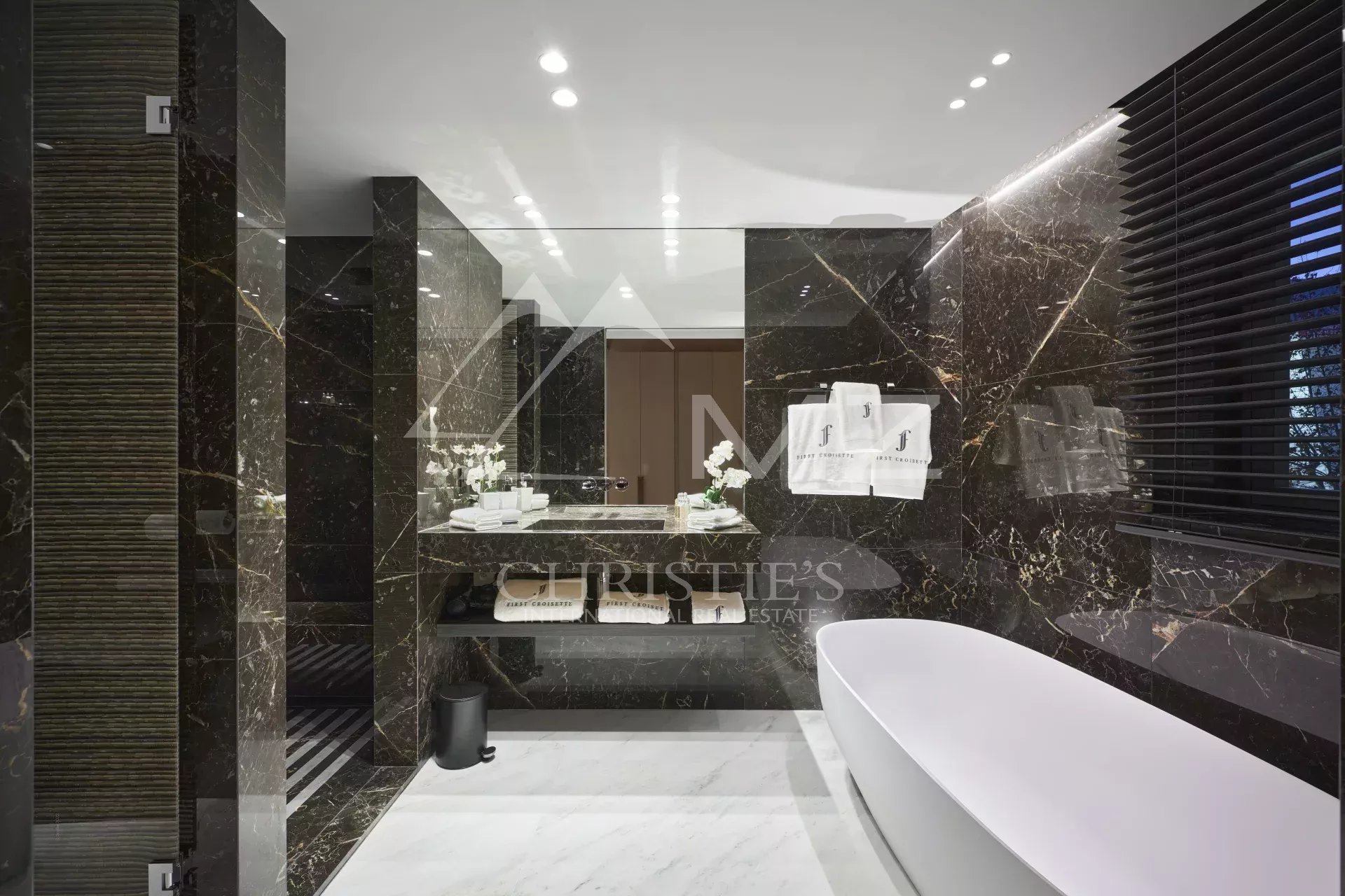 300 - In einem neuen Gebäude auf der Croisette, gegenüber dem Palais des Festivals, befindet sich ein luxuriöses Appartement von ca. 395m², bestehend aus: einem Wohnzimmer, einem Esszimmer, einer Einbauküche, drei Schlafzimmern en suite mit Bad/Dusche, zwei Schlafzimmern en suite mit Duschbad und einem Hauptschlafzimmer mit Ankleide und Bad/Dusche. Concierge-Service vor Ort. Ideal für Kongresse und Ferien. Terrasse von 38 m².