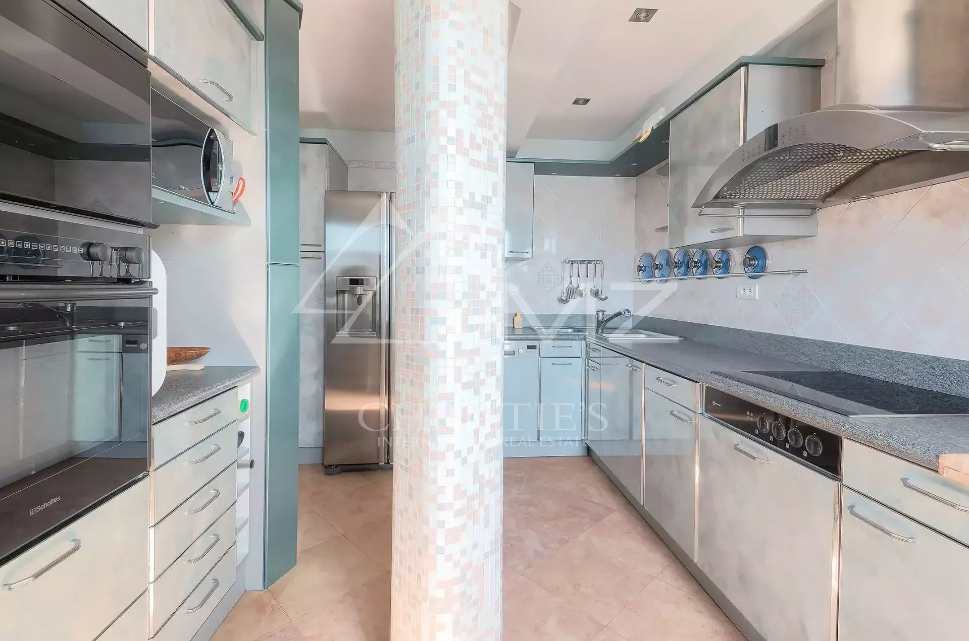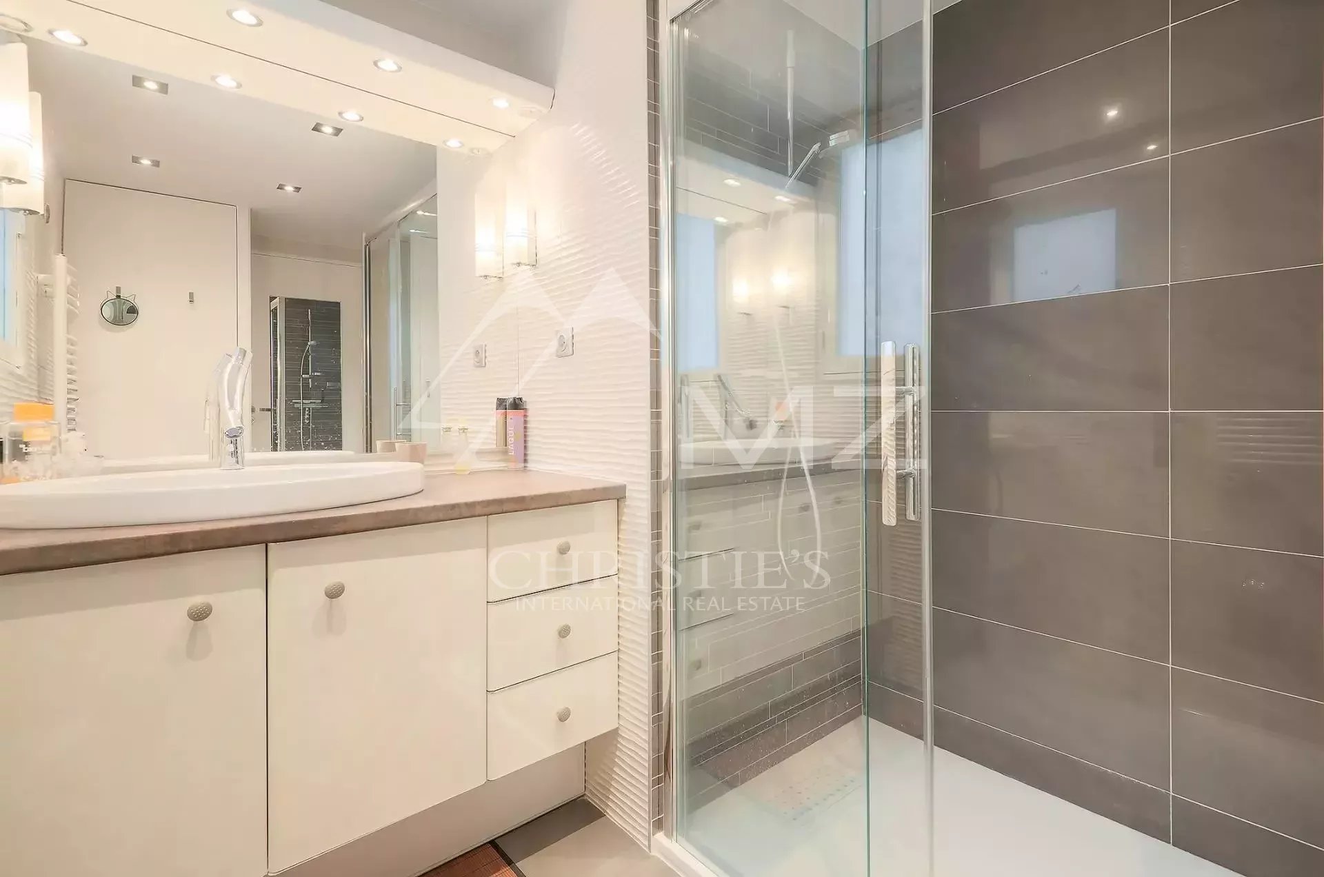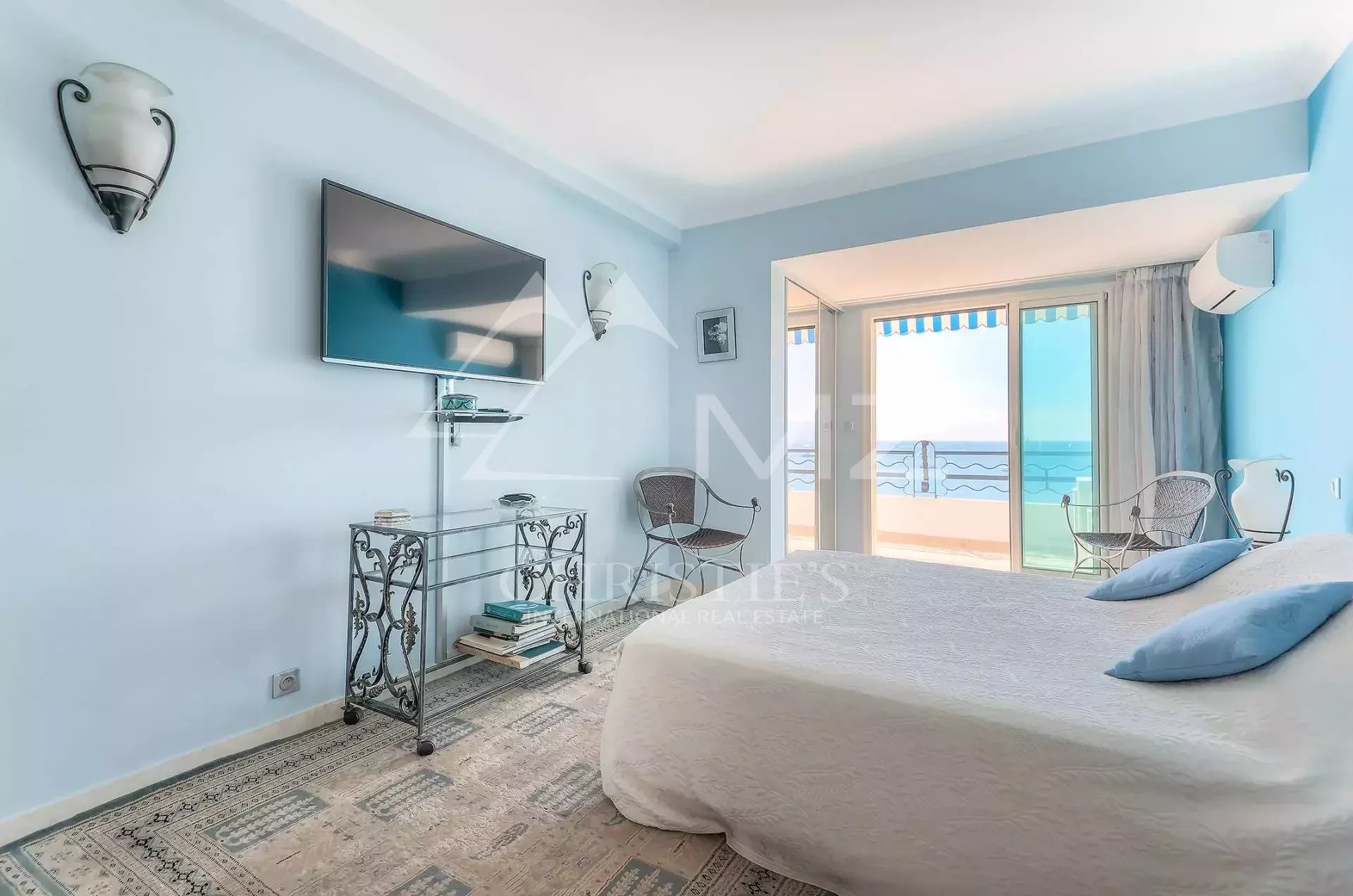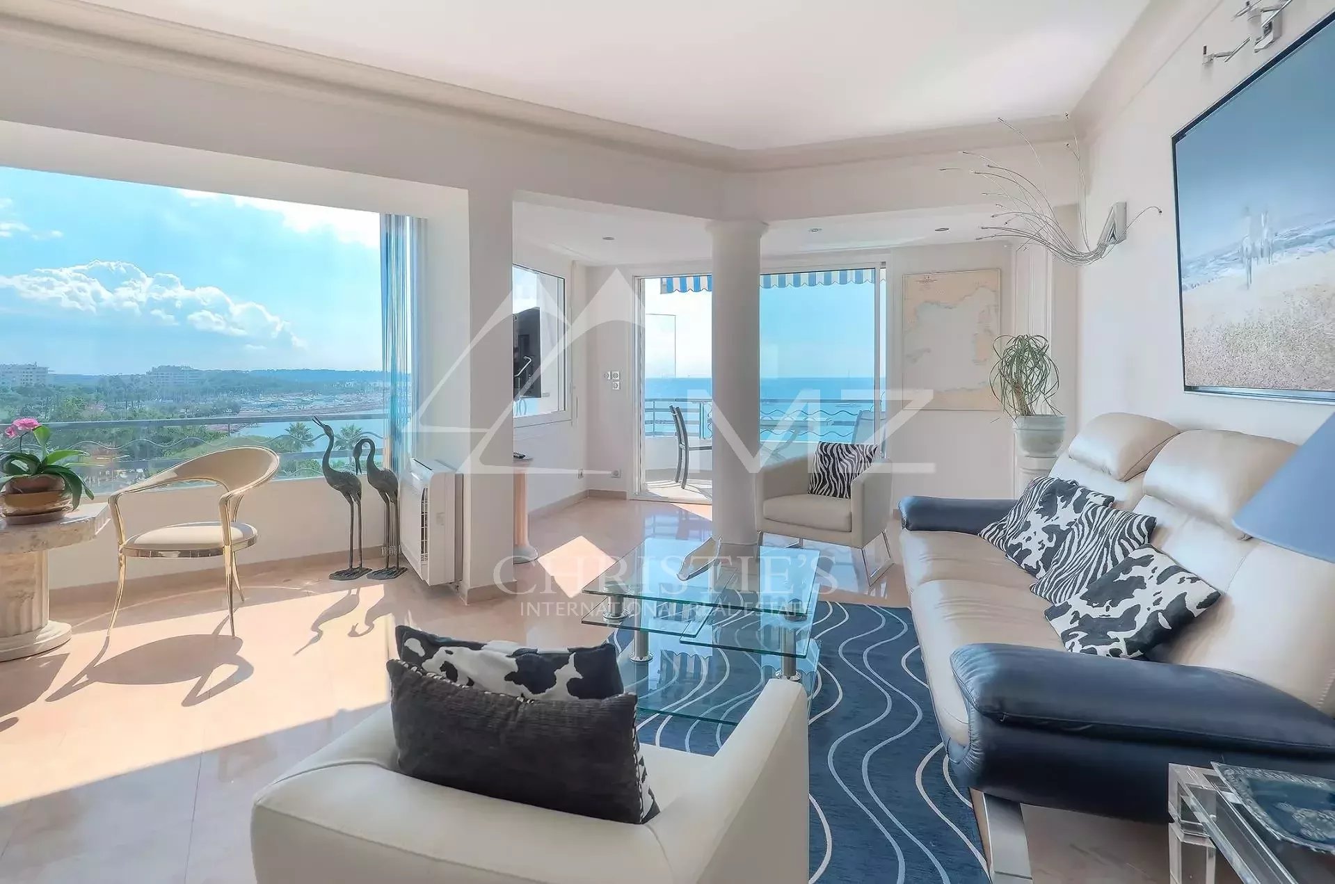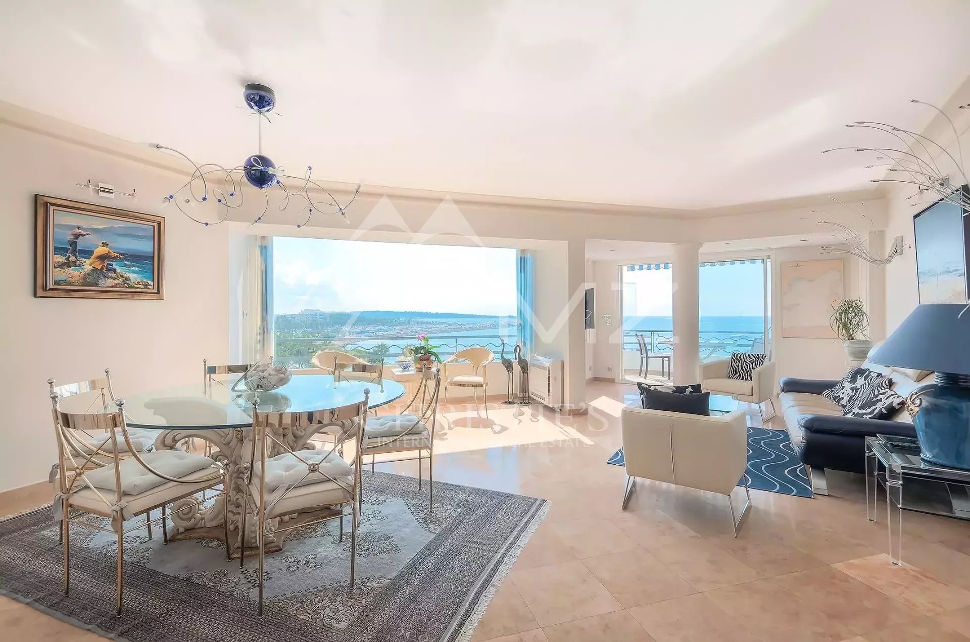 Ideale Lage, schöne Wohnung an der Croisette von 130 m², bestehend aus: Wohnzimmer mit Zugang zur Terrasse und Meerblick, Einbauküche, zwei Schlafzimmer en suite mit Duschbad und ein Schlafzimmer mit Zugang zur Terrasse.