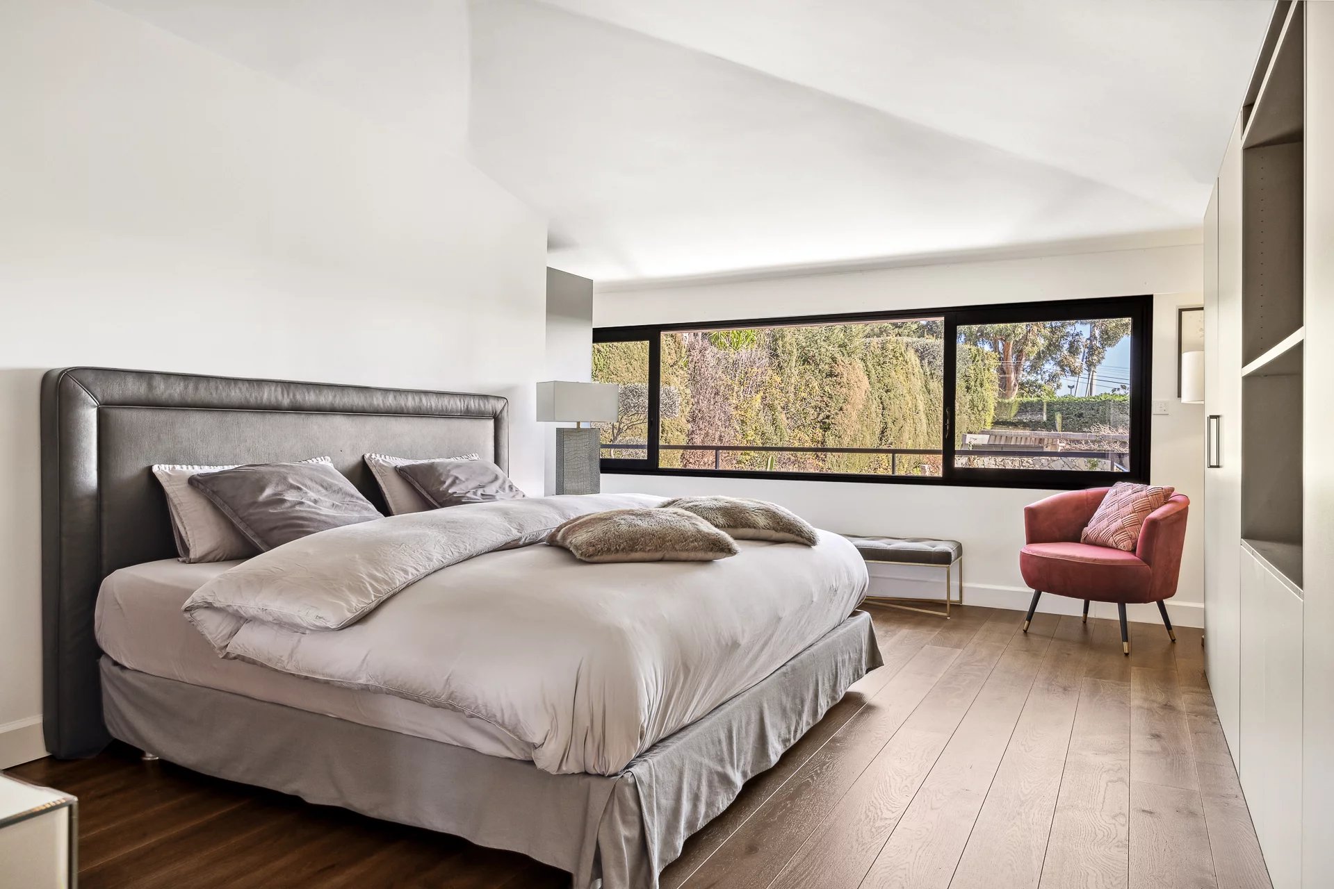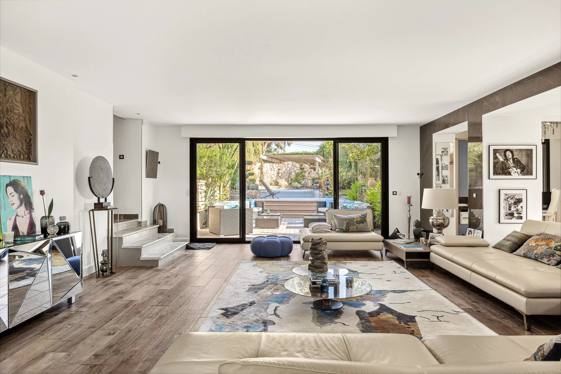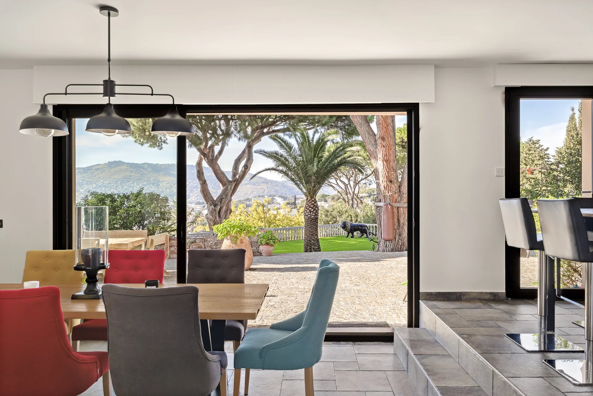 Mit fast 290 m2 Wohnfläche verfügt sie über schöne und helle Empfangsräume mit offener Einbauküche, die sich auf der einen Seite zum beheizten Salzwasserpool und auf der anderen Seite zu einer herrlichen Terrasse mit Blick auf das Meer erstrecken, wo man sich mit der Familie oder mit Freunden im Schatten einer hundertjährigen Pinie treffen kann. Das Anwesen wurde auf einem 2672 m2 großen Grundstück errichtet und verfügt über ein 46 m2 großes, separates Gästehaus, ein Baumhaus, eine Boulebahn, einen Carport für zwei Autos und mehrere Parkplätze.