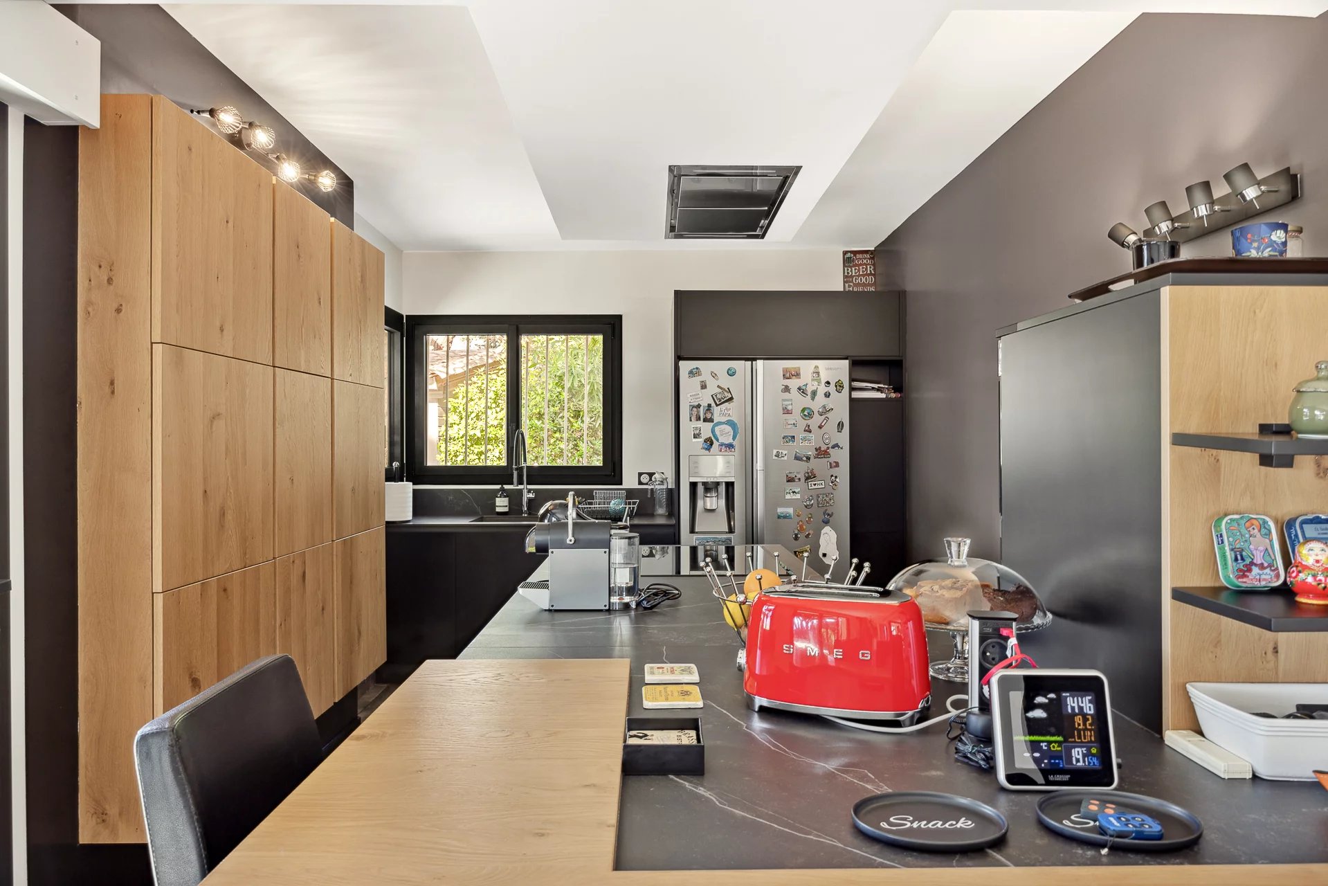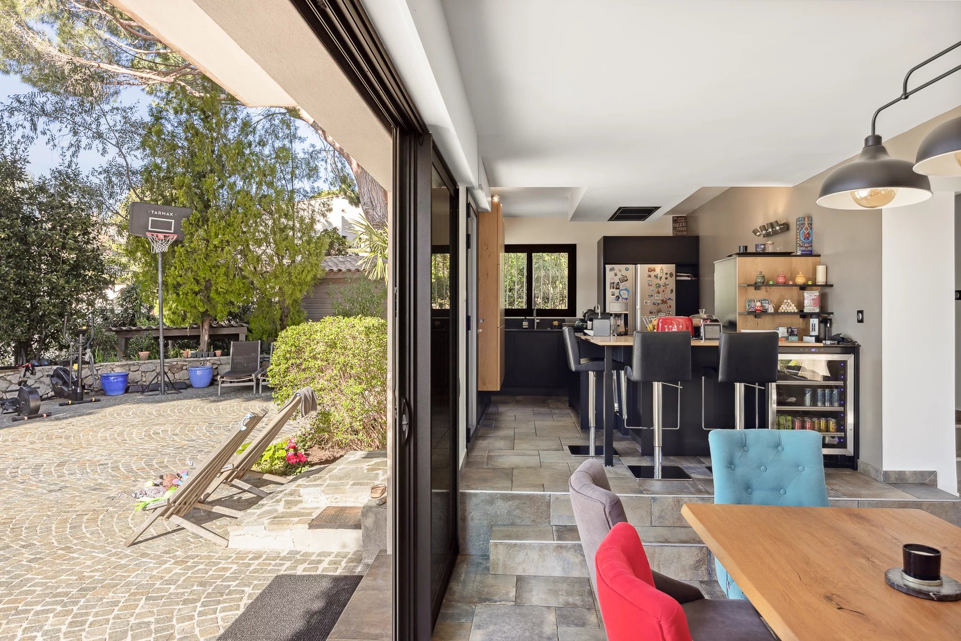 Diese Villa im modernen provenzalischen Stil, die vor kurzem vollständig renoviert und zeitgenössisch gestaltet wurde, ist ideal gelegen und absolut ruhig am Ende einer Sackgasse.