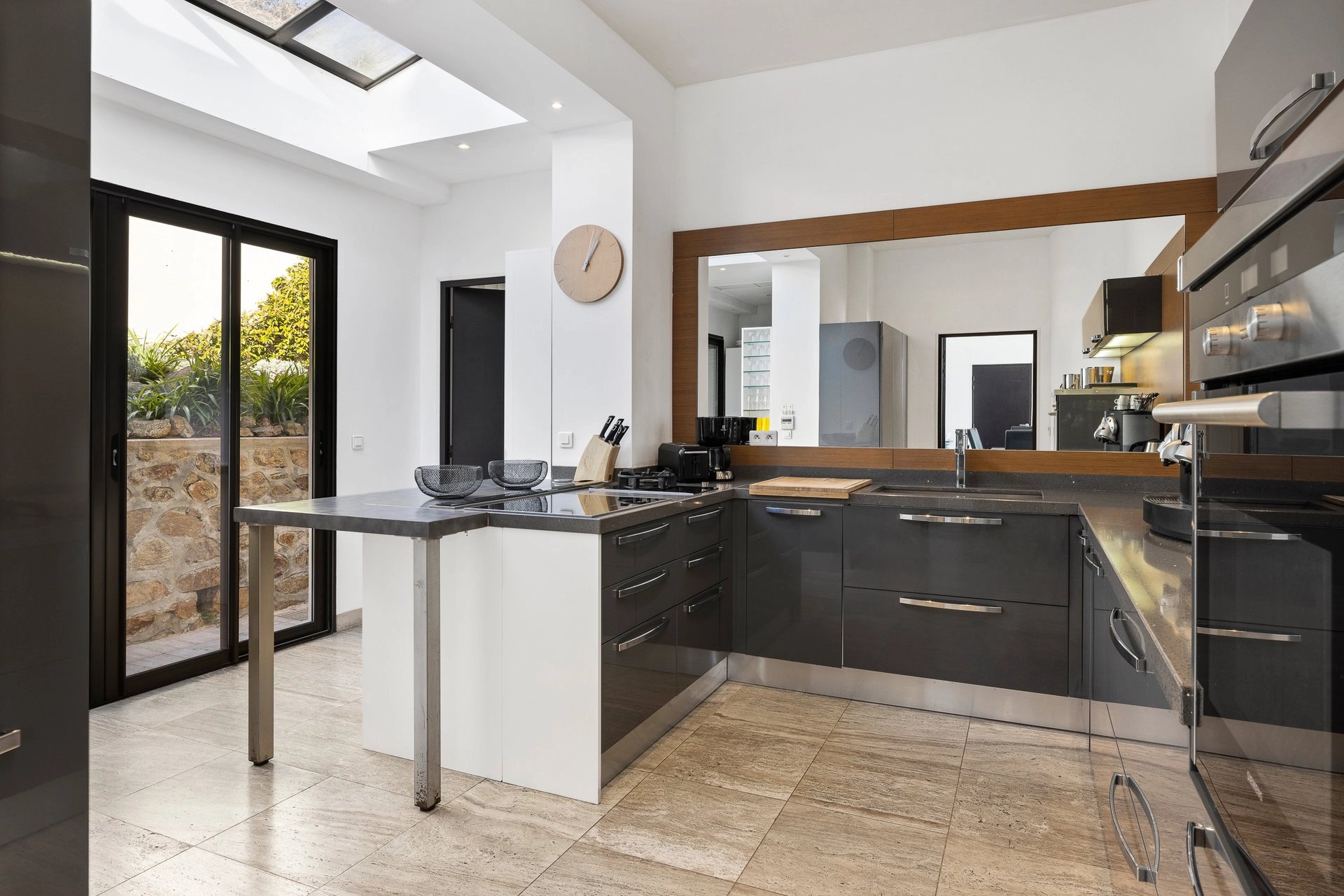 Dieses in Cannes seltene und einzigartige zeitgenössische einstöckige Haus, das wirklich mit den Füßen im Wasser steht, erstreckt sich über ca. 300 m² und wurde vollständig mit hochwertigen Materialien renoviert.