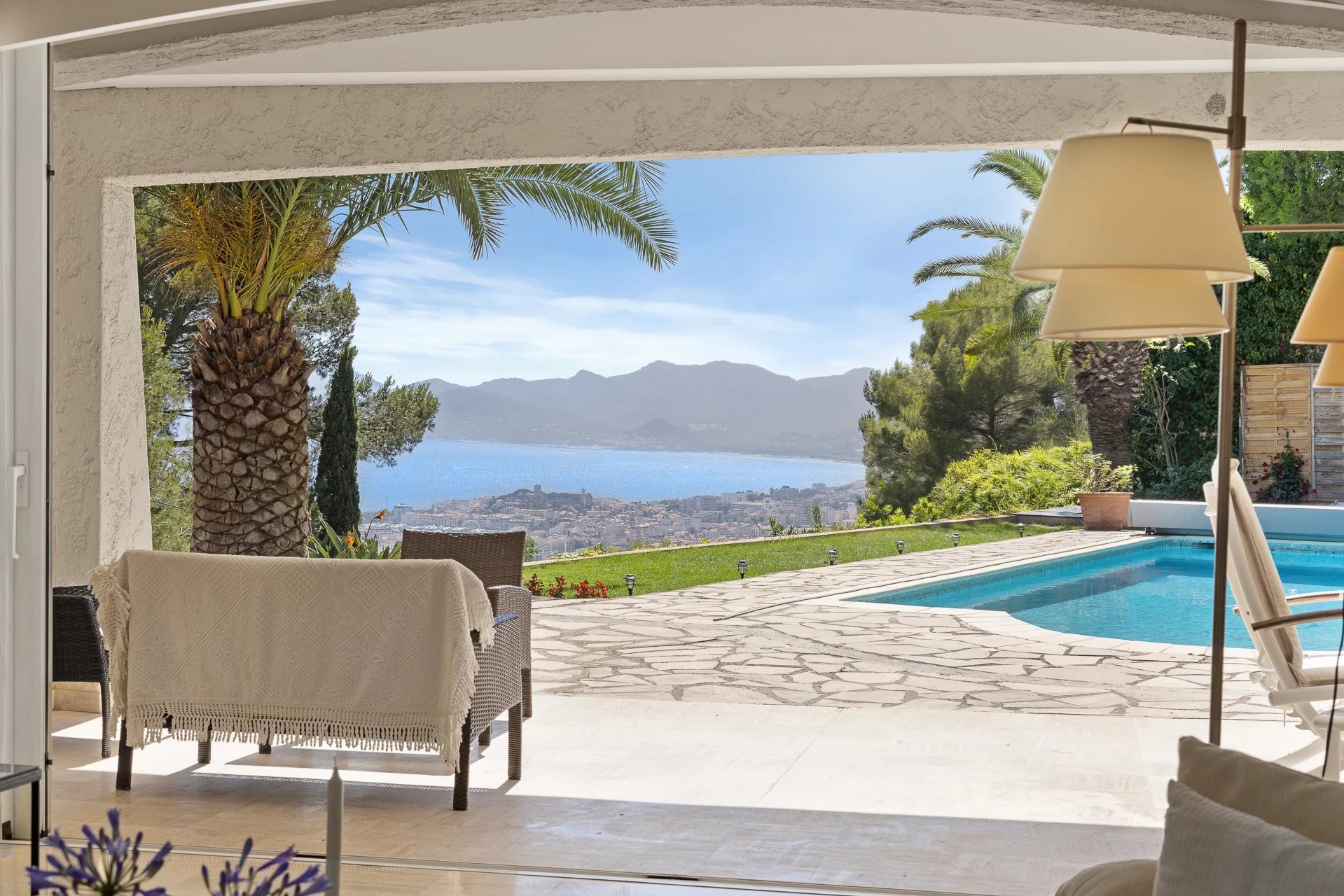 Die Villa genießt eine hervorragende Lage mit einem 90 m² großen Wohn- und Esszimmer, von dem aus Sie einen spektakulären Blick auf die Bucht von Cannes haben. Im ersten Stock finden Sie ein 65 m² großes Elternschlafzimmer mit einer großen Terrasse und einem ultimativen Blick auf die Stadt und das Esterel-Gebirge. Im lichtdurchfluteten Untergeschoss befindet sich ein Spa mit Sauna, Dampfbad, Dusche, Toilette sowie ein Weinkeller und die Wärmepumpe.