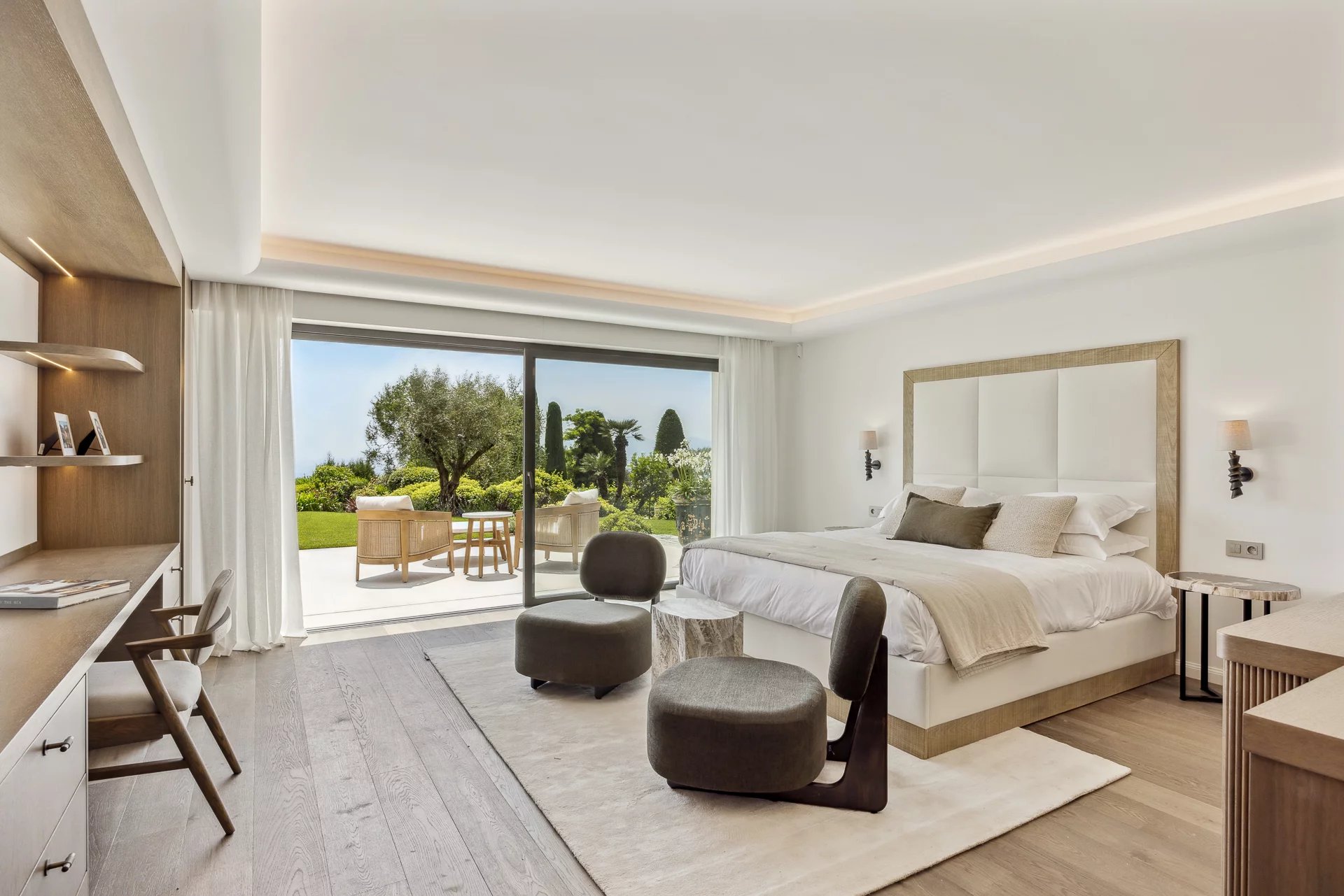 Mit süd/südwestlicher Ausrichtung genießt die Immobilie den ganzen Tag über optimale Sonneneinstrahlung sowie einen spektakulären Blick auf die Îles de Lérins und das Estérel-Massiv.