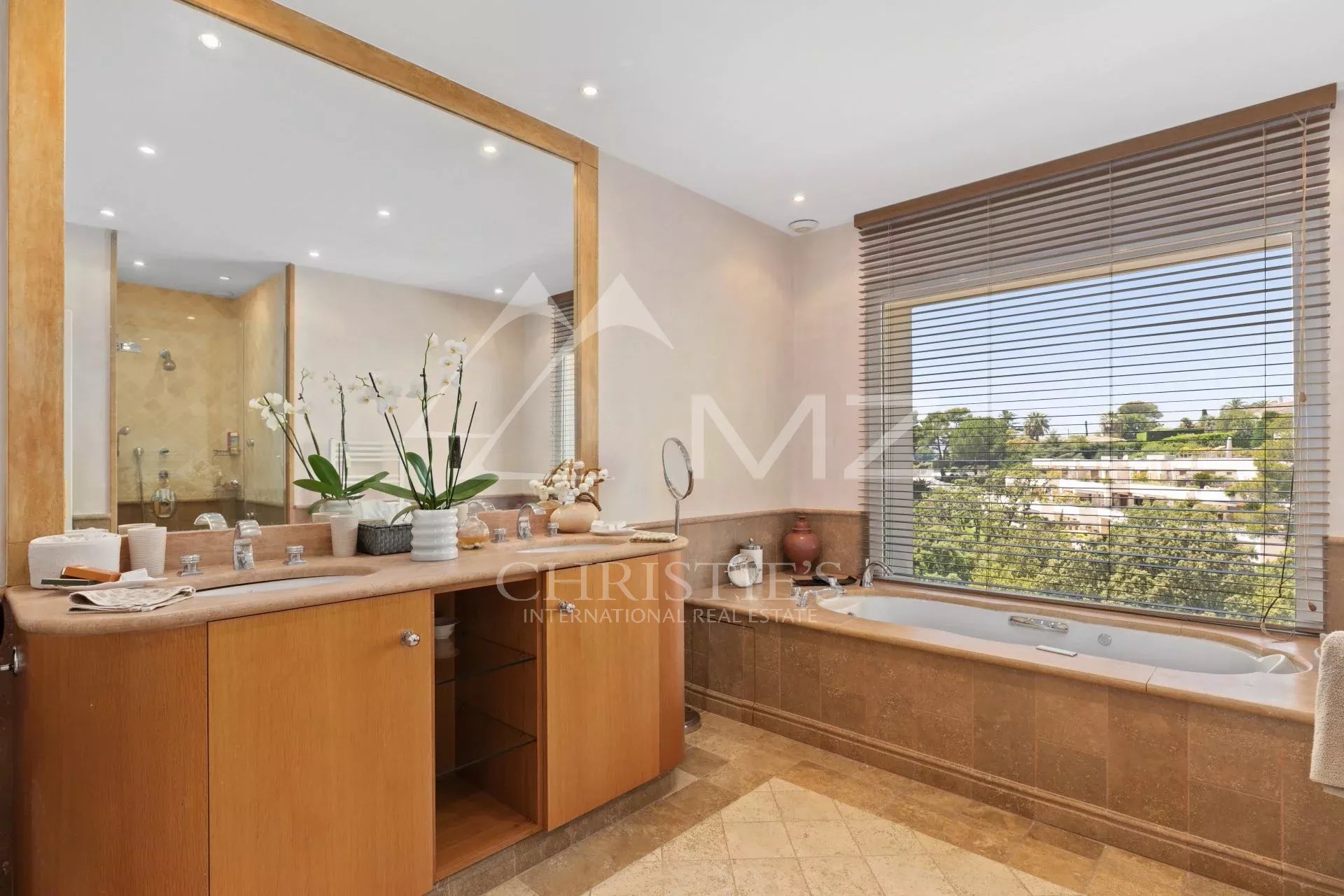 In dominanter Lage, im Herzen von Kalifornien, umfasst diese Villa von ca. 350 m² mit außergewöhnlichem Meerblick: ein großes Wohnzimmer mit Zugang zum Pool und Meerblick, eine Einbauküche mit Zugang zum Staff Course und ein Hauptschlafzimmer mit Ankleidezimmer und Neo-Bal-Badezimmer. Im Gartengeschoss: drei Schlafzimmer en suite mit Duschbad, ein Schlafzimmer mit einem Badezimmer, eine Waschküche, ein Fitnessraum mit Dampfbad/Sauna und Duschbad. Garage. Beheizter Pool mit Überlauf. Grundstück von ca. 2000 m². Zwei Dienstzimmer mit Duschbad.