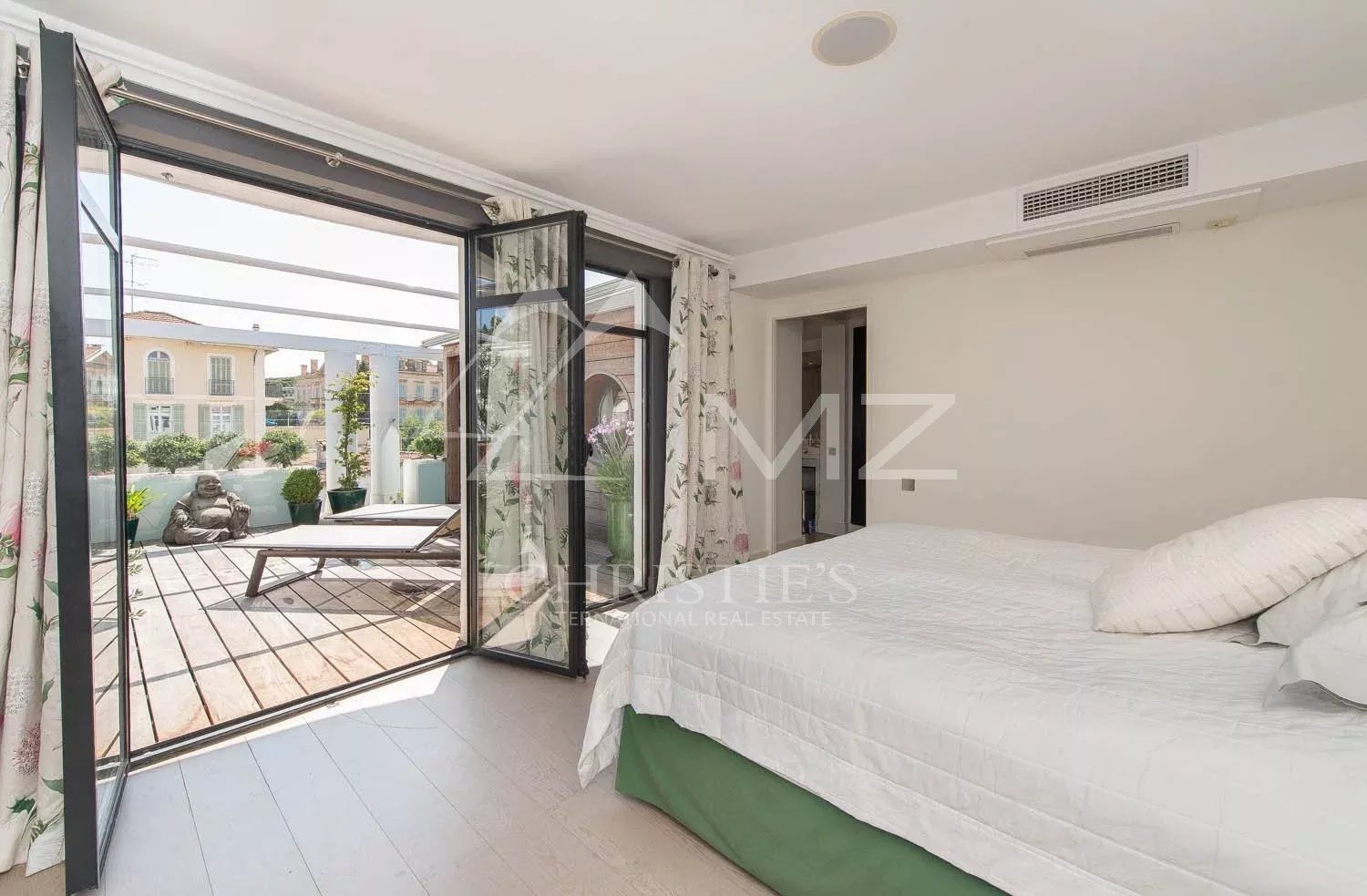 In Cannes, sehr seltenes Stadthaus, ca. 200 m². Das Erdgeschoss besteht aus einem Wohnzimmer, einer Küche, einem Esszimmer mit einem Innengarten. Im ersten Stock: drei Schlafzimmer mit zwei Badezimmern. Im 2. Stock: ein Hauptschlafzimmer mit einer doppelten Terrasse, die eine Küche umfasst.