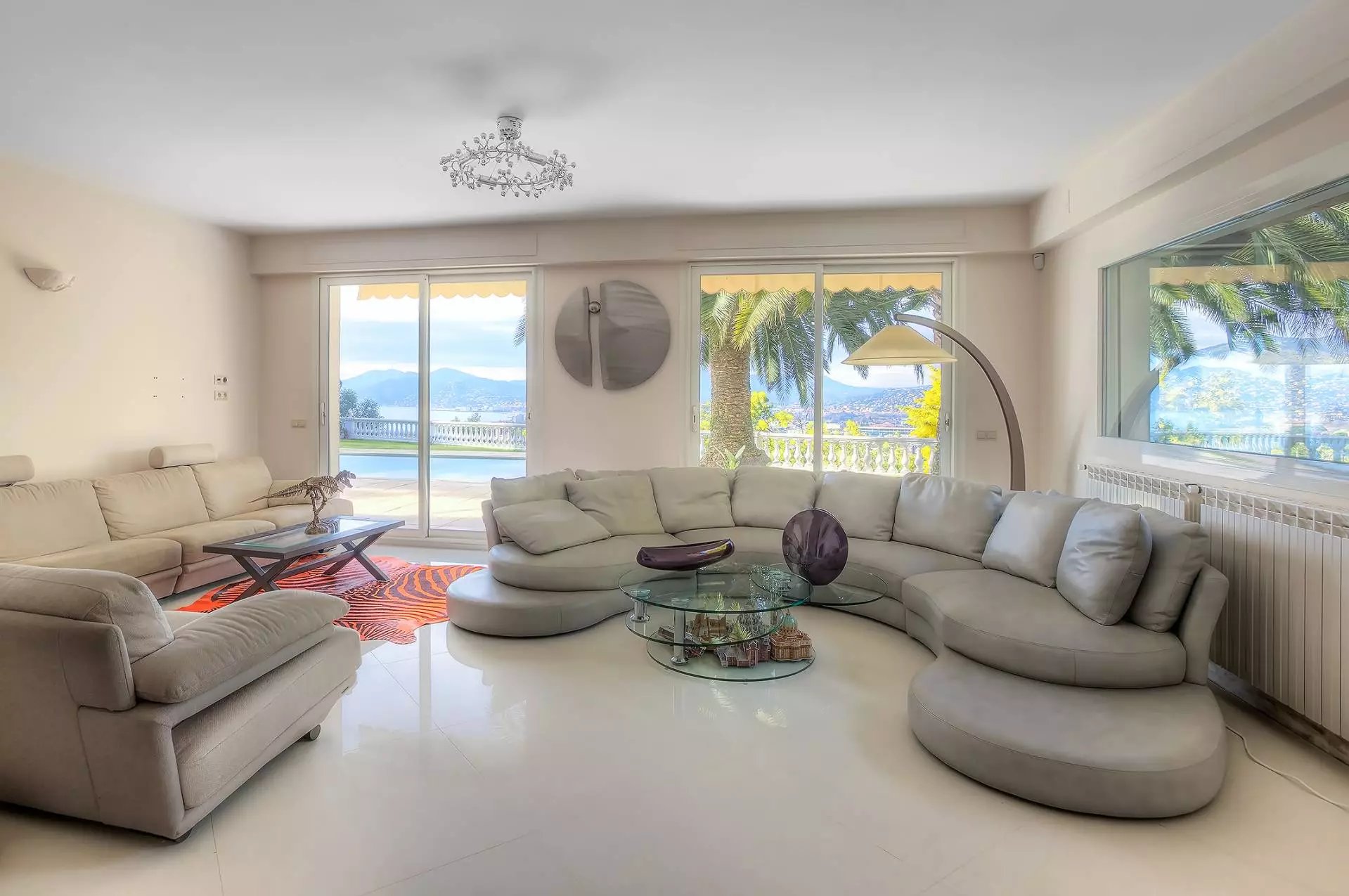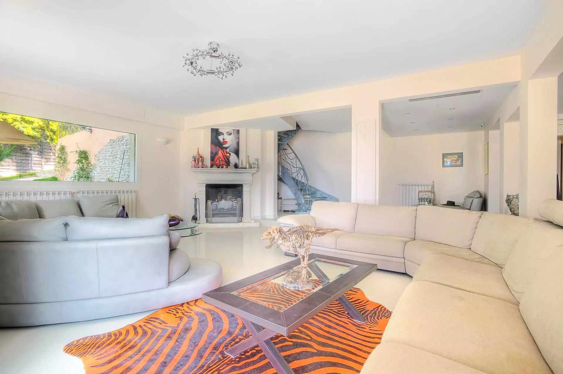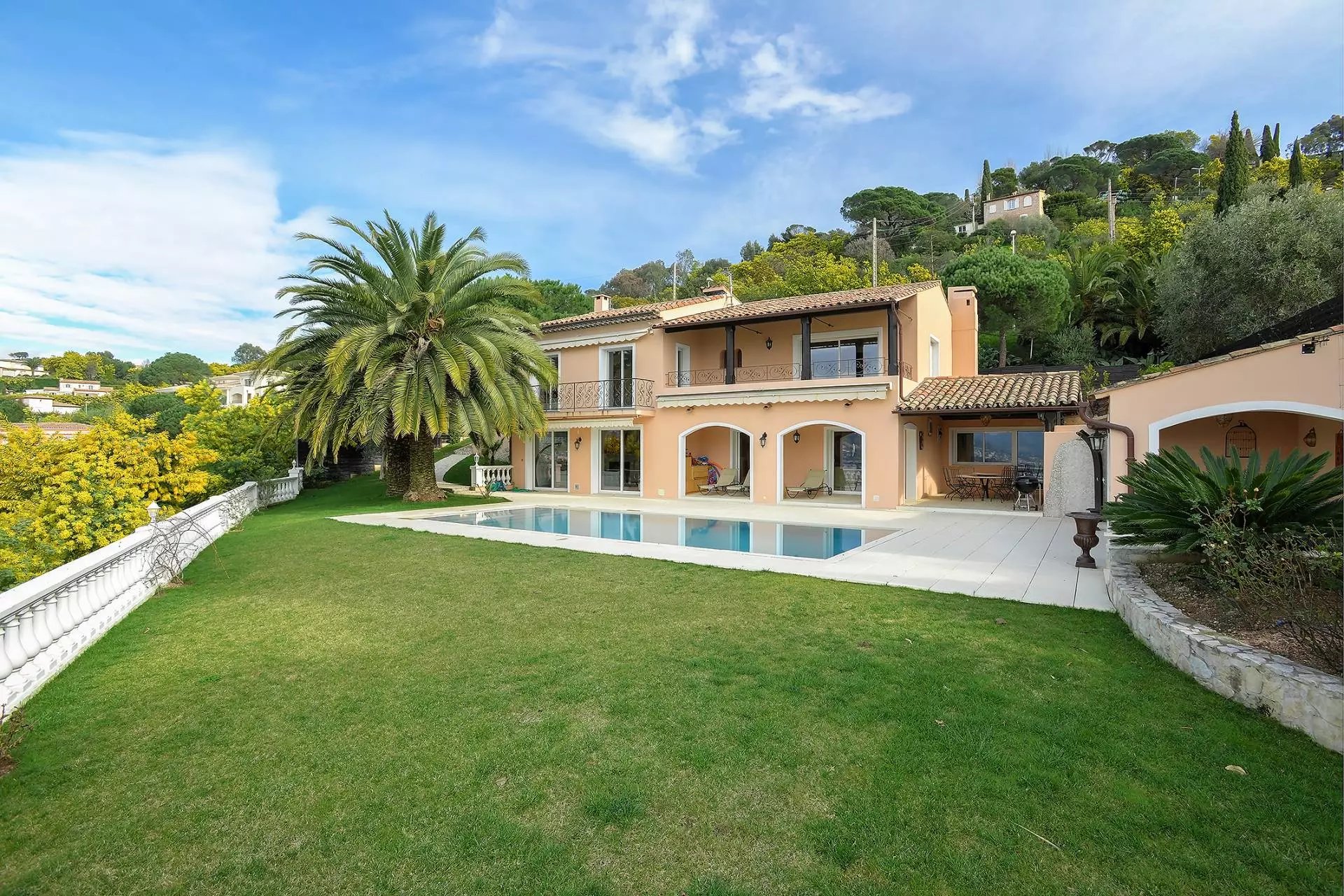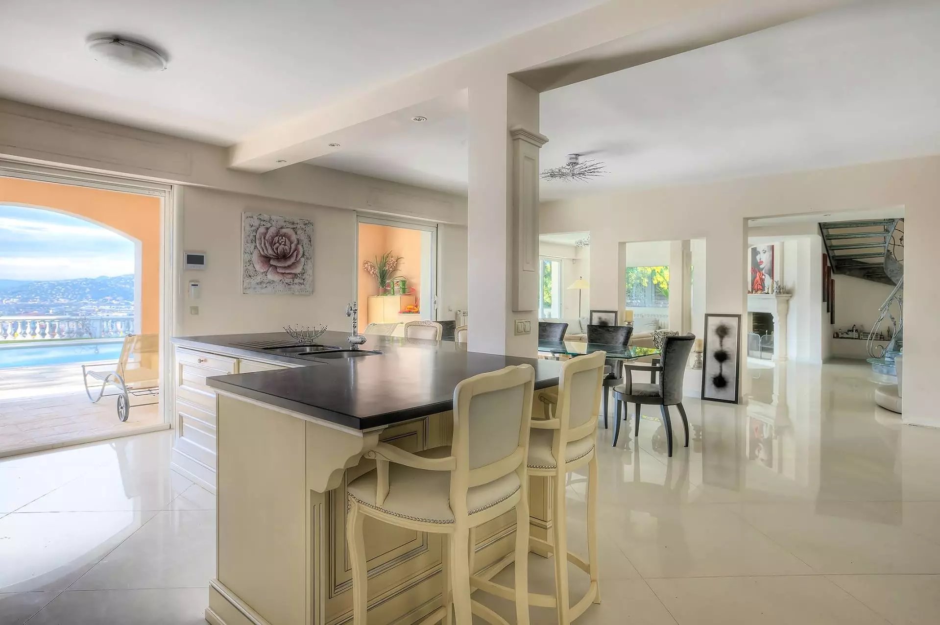 Wunderschöne Villa von 350m² mit Meerblick in ruhiger Lage, in den Höhen von Cannes gelegen. Großes Wohnzimmer mit Einbauküche, vier Schlafzimmer, ein Badezimmer und zwei Duschbäder, Pool und hochwertige Ausstattung im ganzen Haus. Grundstück von 1200m².a