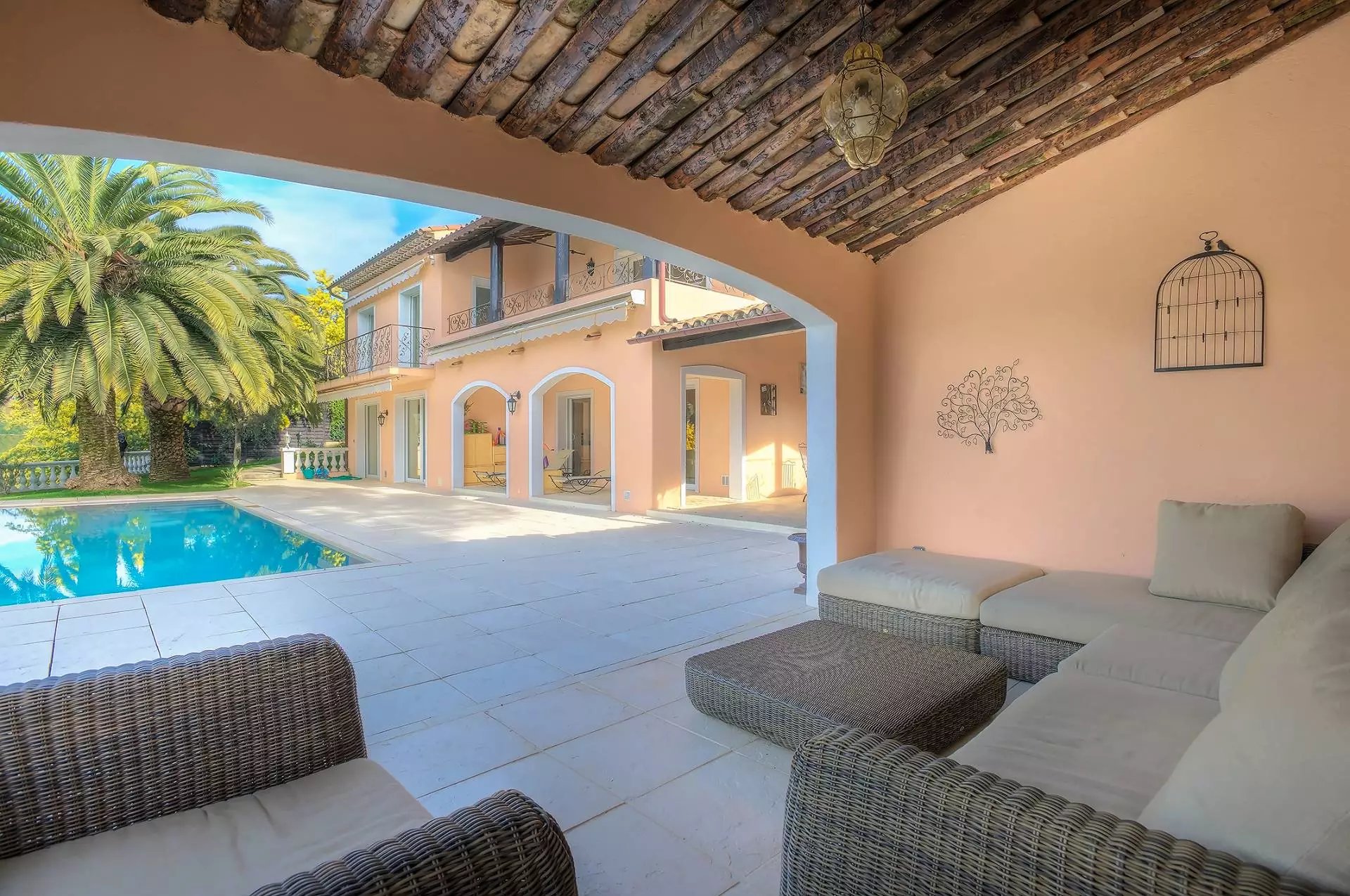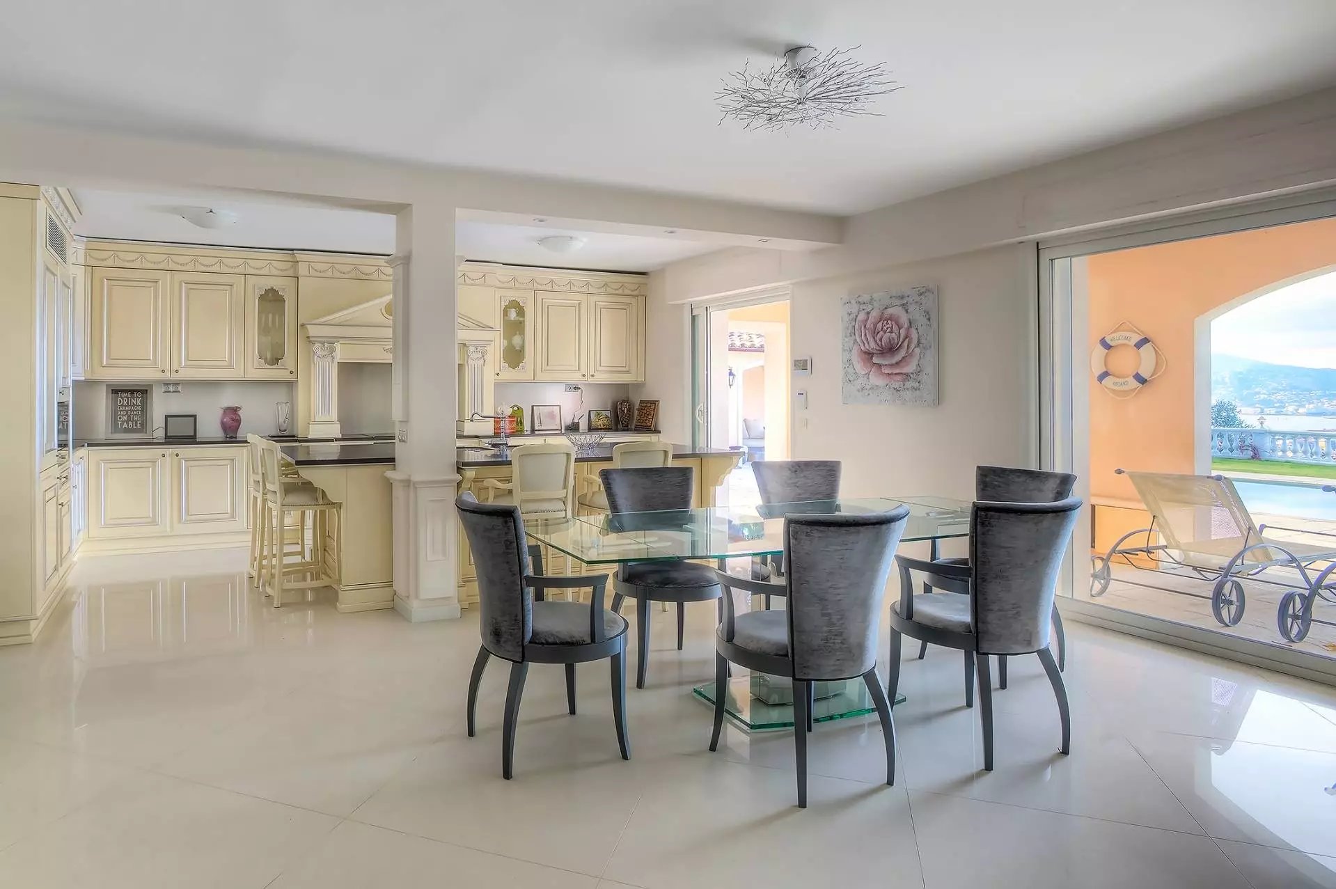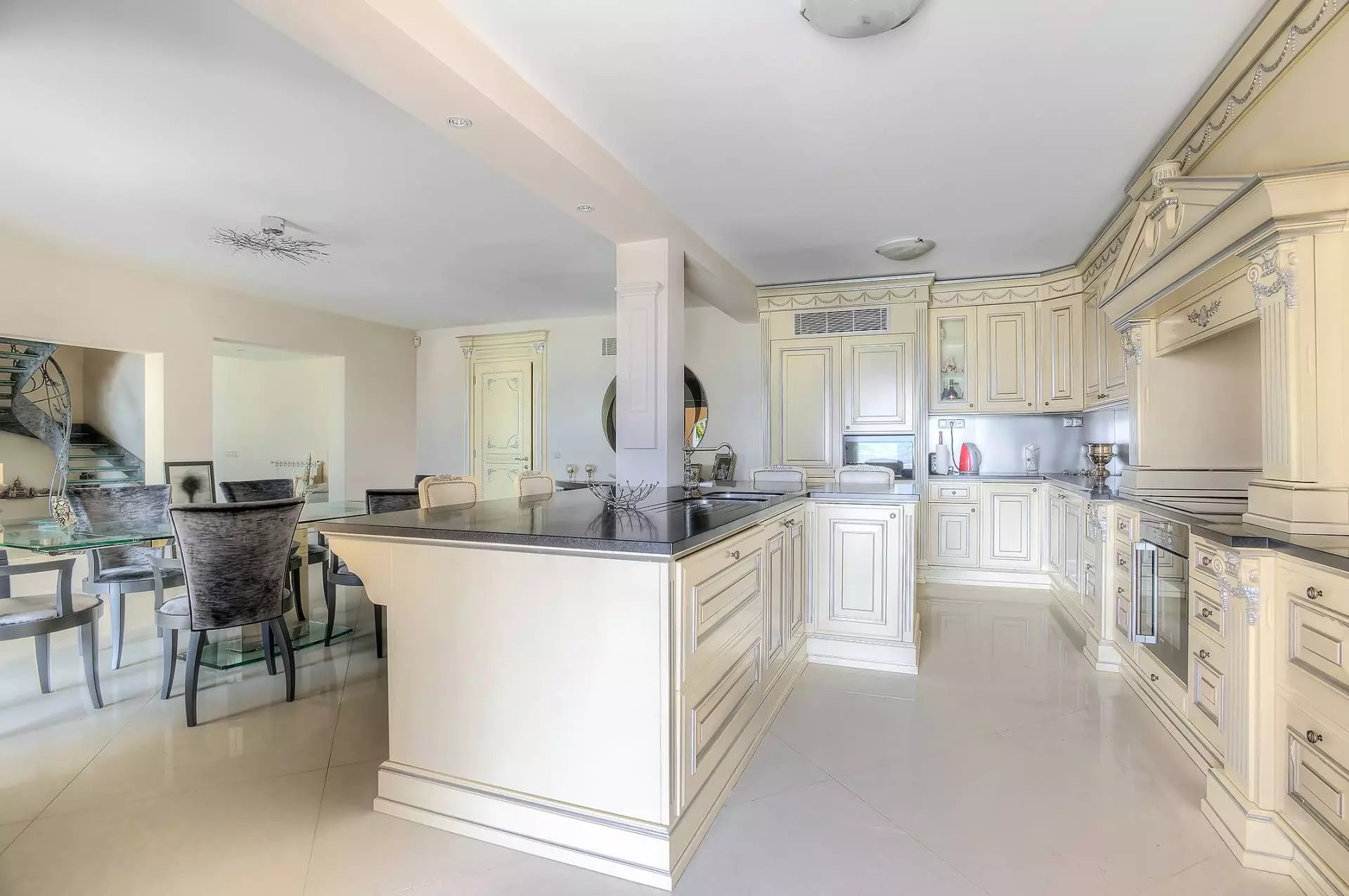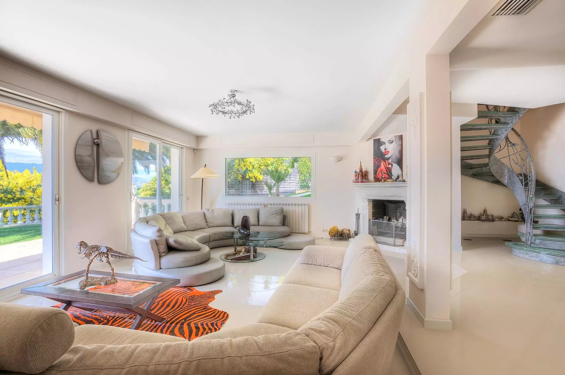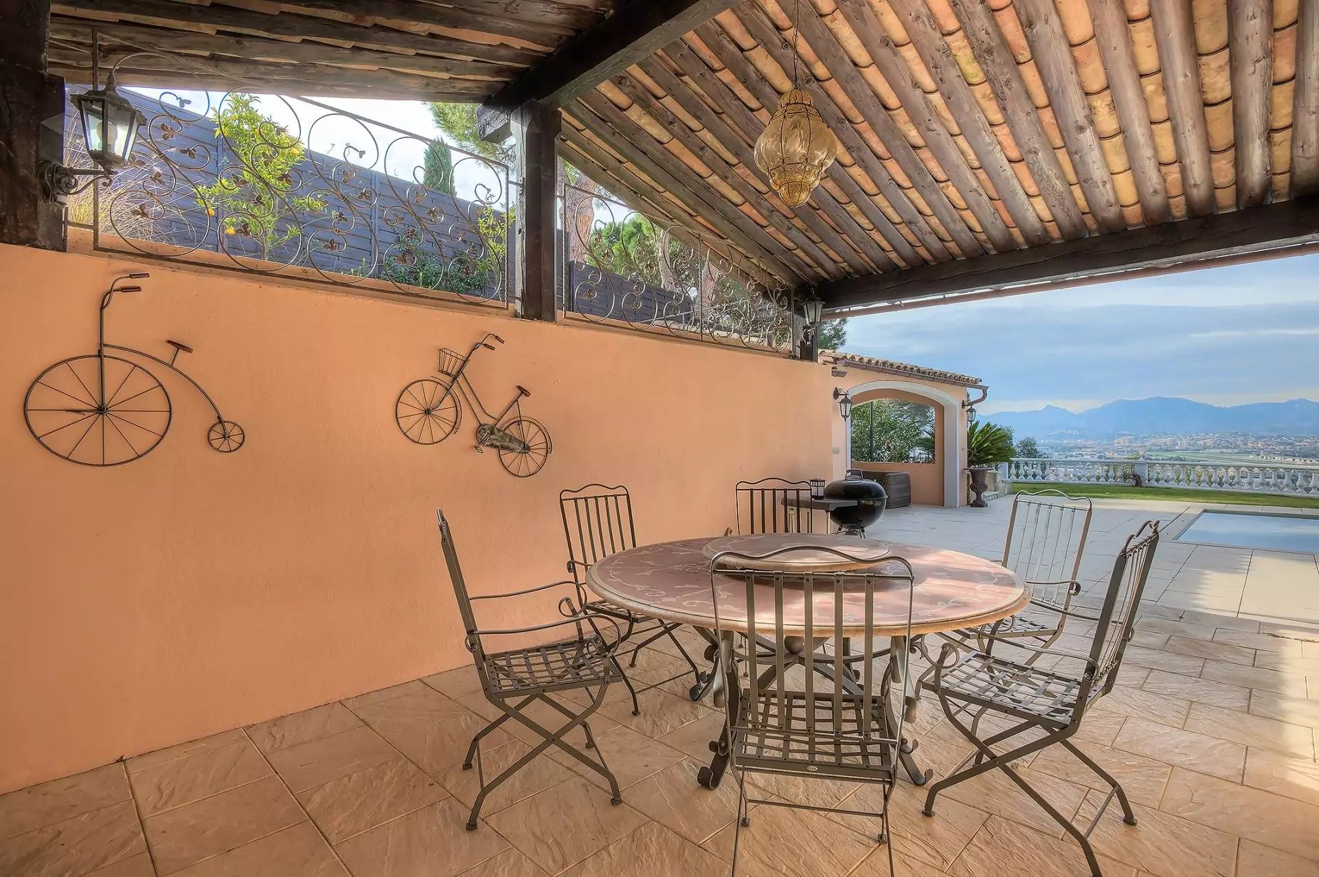 Wunderschöne Villa von 350m² mit Meerblick in ruhiger Lage, in den Höhen von Cannes gelegen. Großes Wohnzimmer mit Einbauküche, vier Schlafzimmer, ein Badezimmer und zwei Duschbäder, Pool und hochwertige Ausstattung im ganzen Haus. Grundstück von 1200m².a