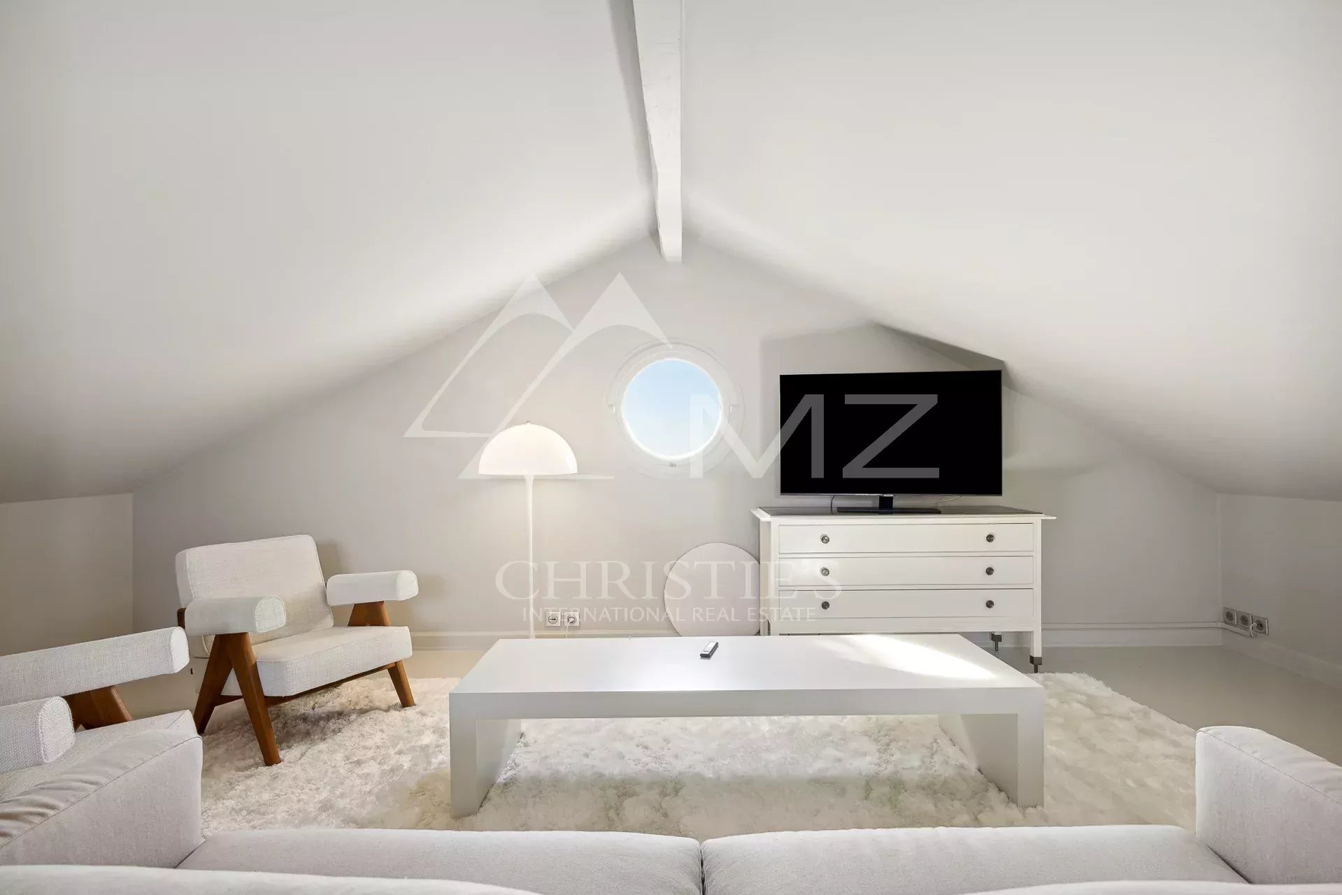 Diese Villa befindet sich in Cannes und hat eine Fläche von 390 m². Im Erdgeschoss befinden sich ein Eingangsbereich, eine Einbauküche und ein Wohnzimmer. Im ersten Stock befinden sich zwei Schlafzimmer en suite und ein Hauptschlafzimmer mit Bad/Dusche. Im zweiten Stock: ein Schlafzimmer mit Bad und ein Wohnzimmer, das in ein Schlafzimmer umgewandelt werden kann.