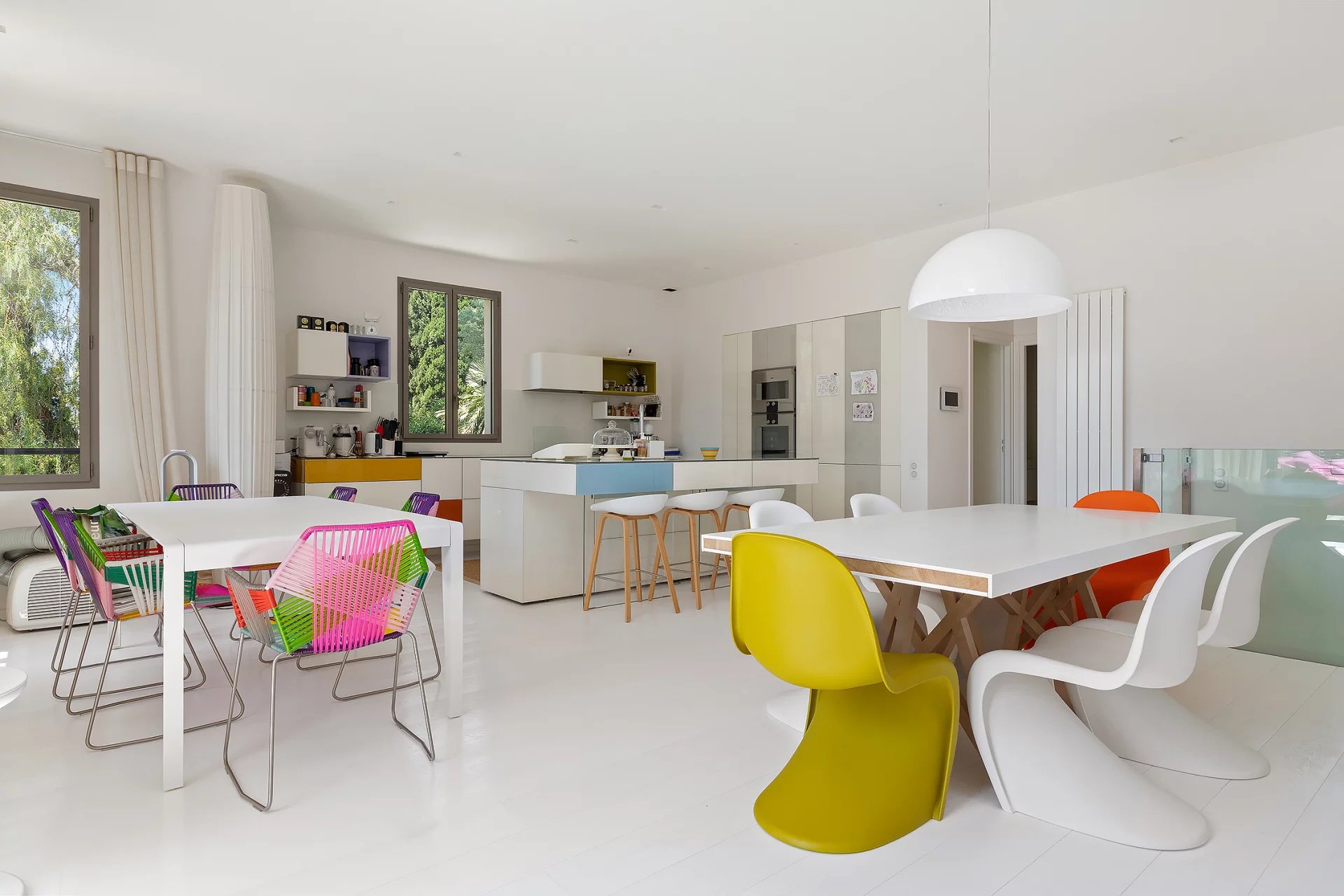 Eingebettet in einen wunderschönen Garten und in absoluter Ruhe liegt diese erhabene, zeitgenössische Villa mit einer Fläche von ca. 240m², bestehend aus: Küche, Esszimmer, Wohnzimmer, Büro und einem Schlafzimmer.