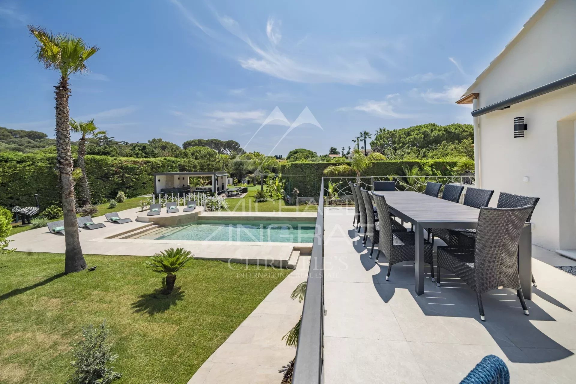 Wunderschöne Villa von 280m², nur wenige Minuten von den Stränden entfernt, mit hochwertigen Leistungen und Design. Sie bietet schöne und helle Räume, verfügt über 4 Schlafzimmer en suite, einen großen Pool mit Poolhaus. Zahlreiche Stauräume. Parkplätze im Freien. Wunderschöner Garten von ca. 2000m²