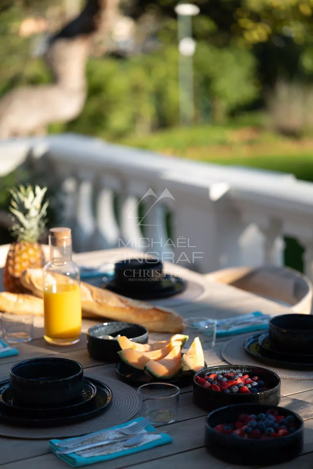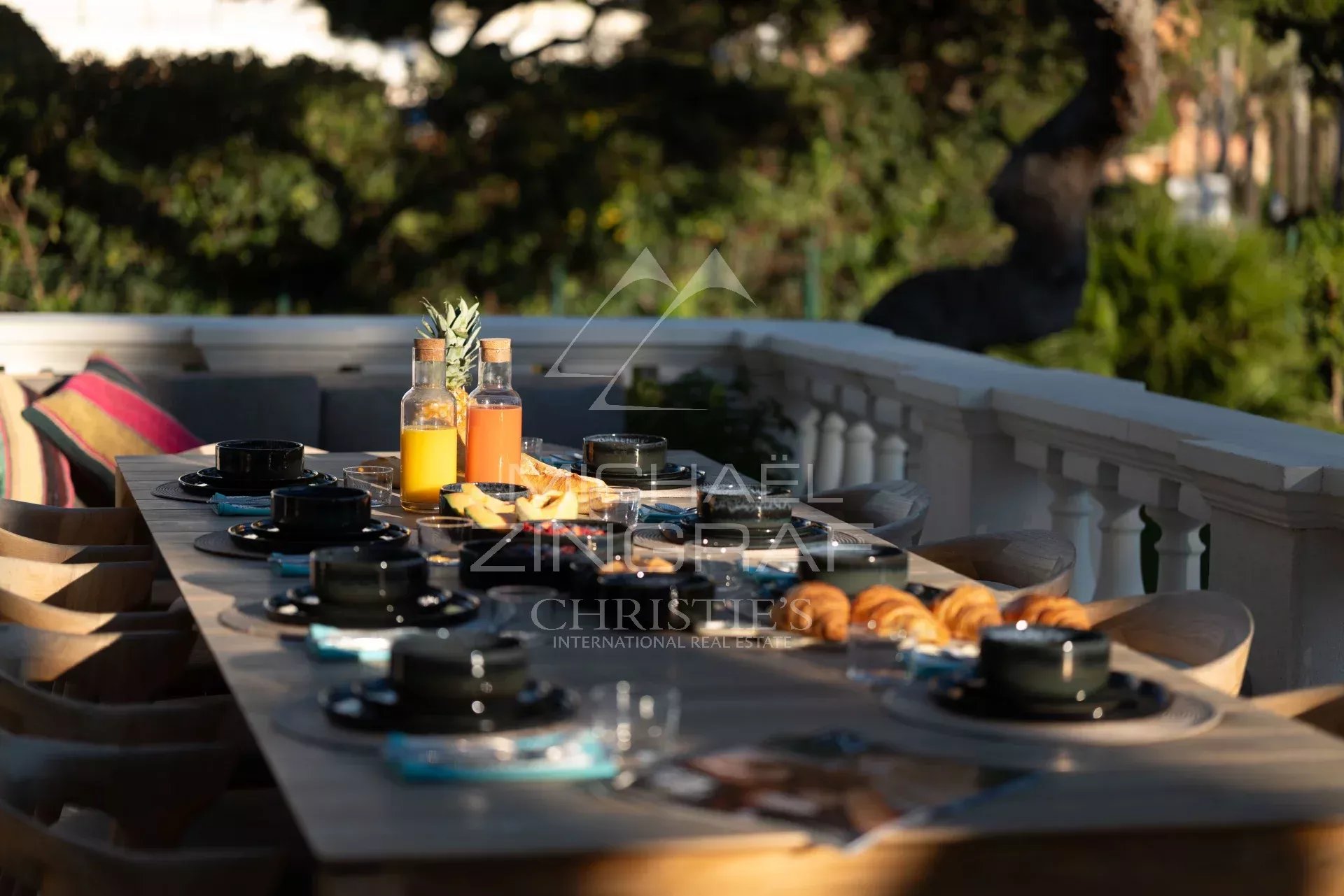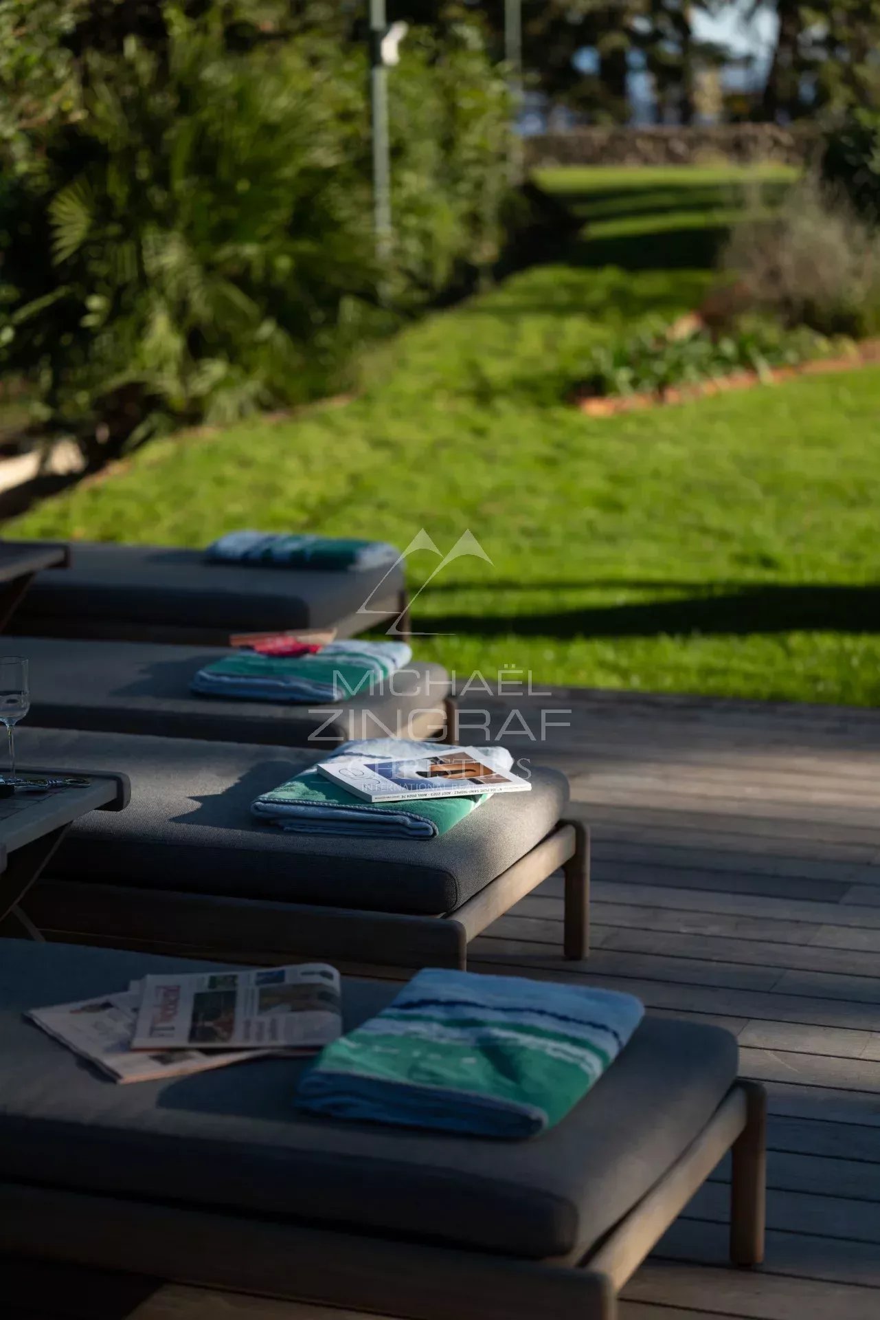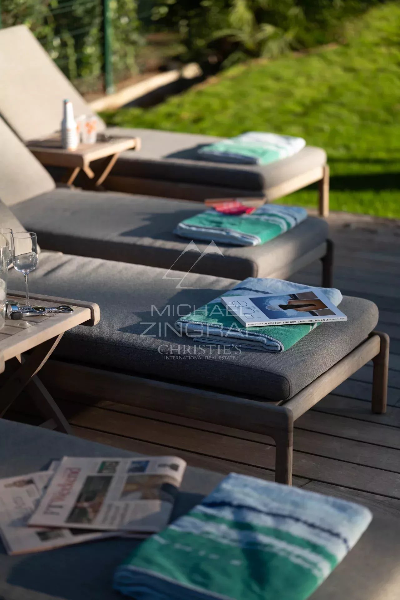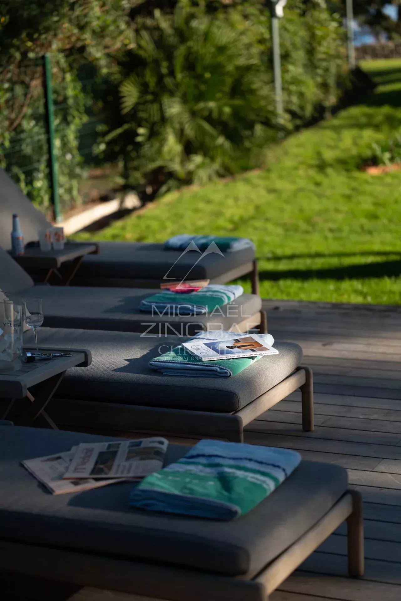 Wunderschöne Villa von 320m² am Fuße der Strände mit hochwertigen Leistungen und Design. Sie bietet schöne und helle Räume, verfügt über 8 Schlafzimmer en suite, einen Pool mit großem flachen Garten. Zahlreiche Abstellräume. Außenparkplätze.