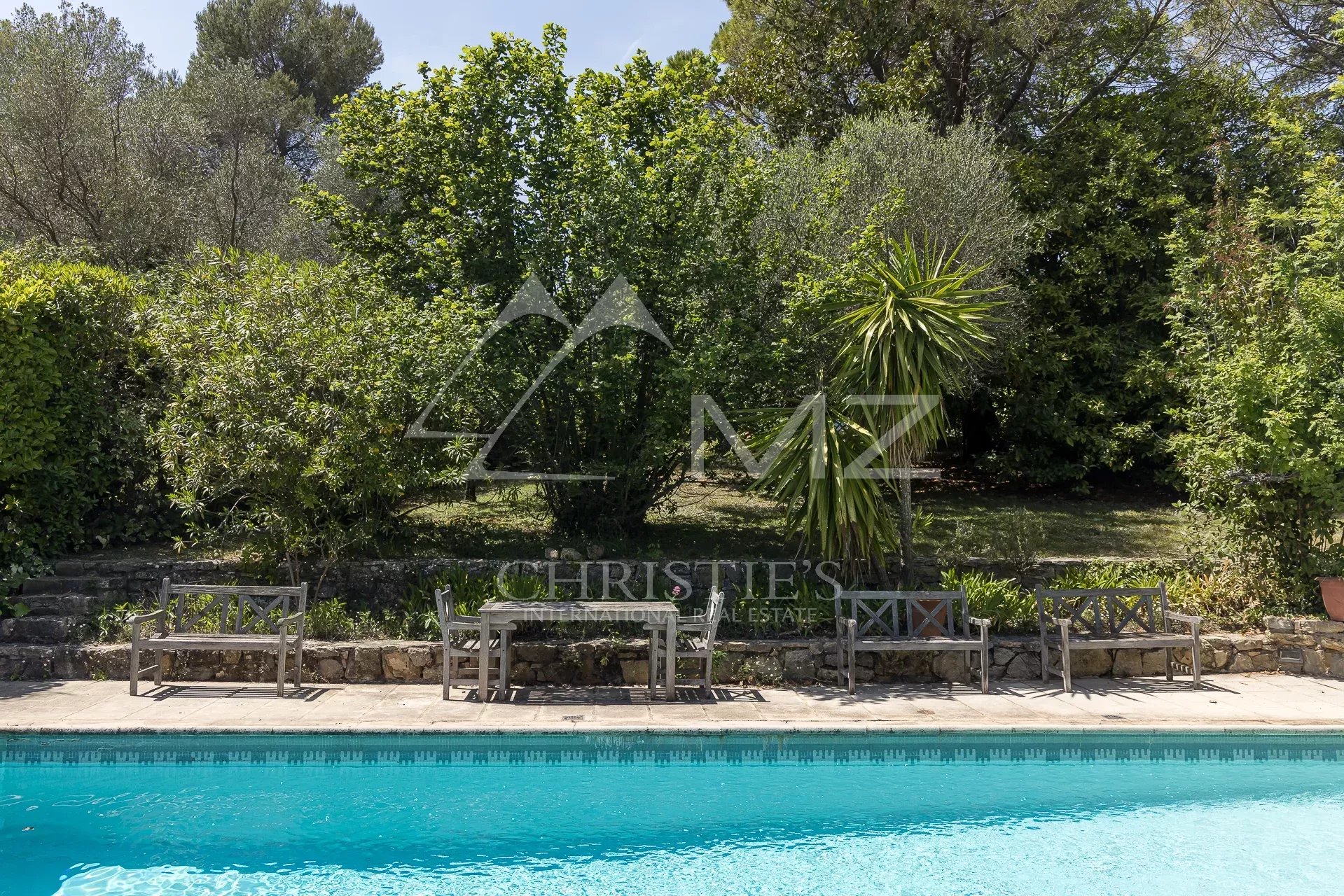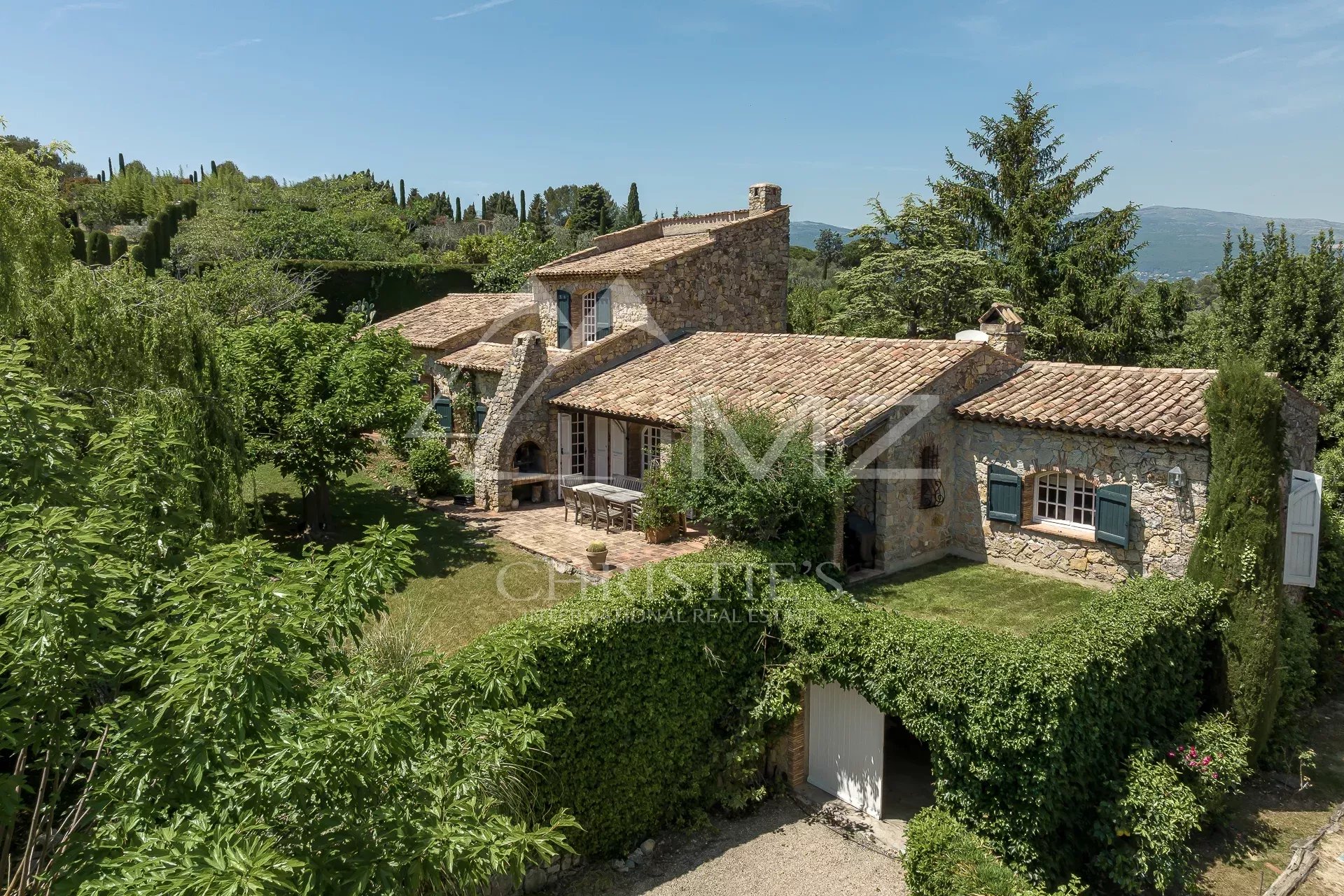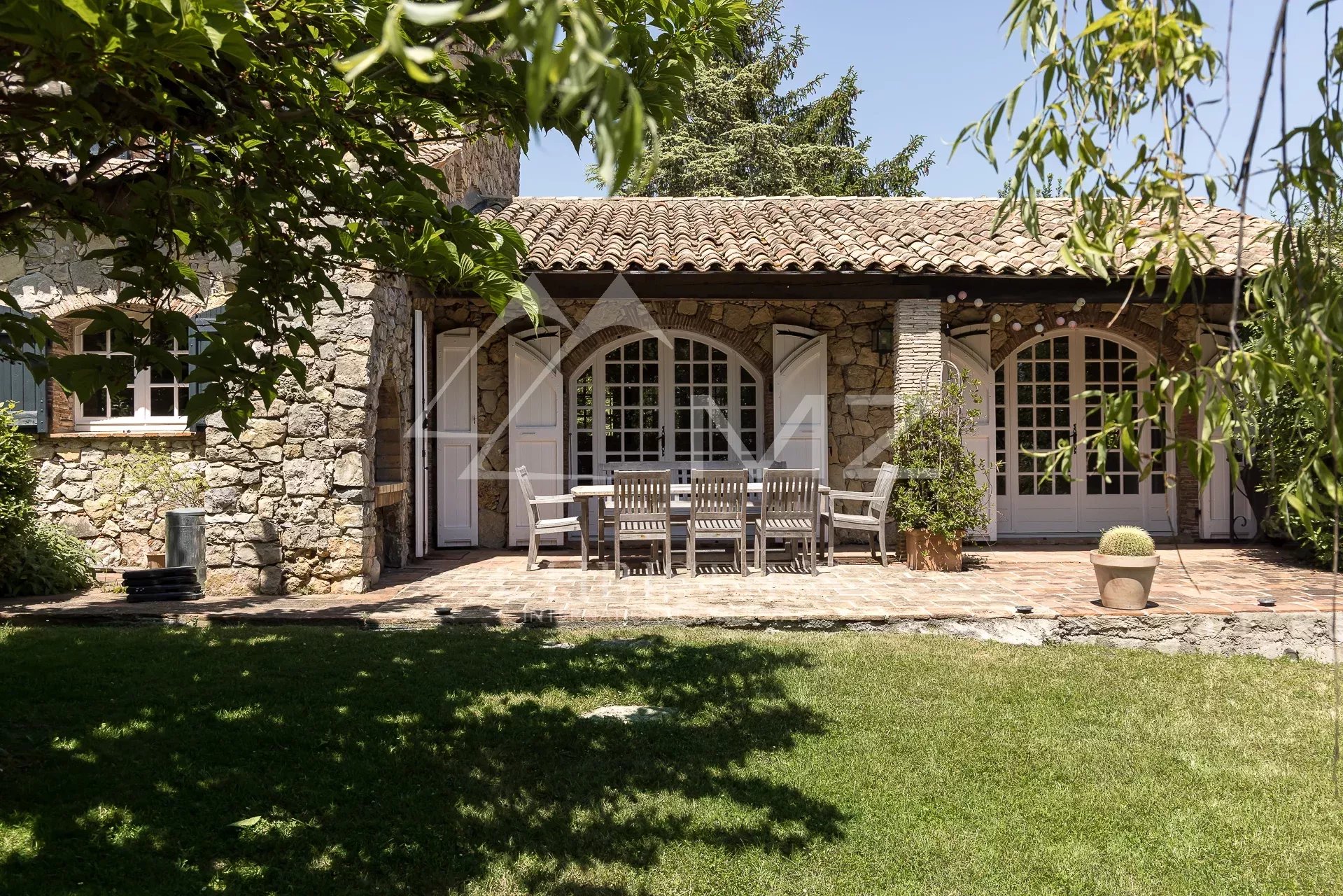 Auf halbem Weg zwischen den Dörfern Valbonne, Mougins und Plascassier liegt dieses reizende provenzalische Landhaus, das mit seinen sichtbaren Steinen, seinen Restanques und seinem Olivenhain einen unbestreitbaren Charme besitzt.