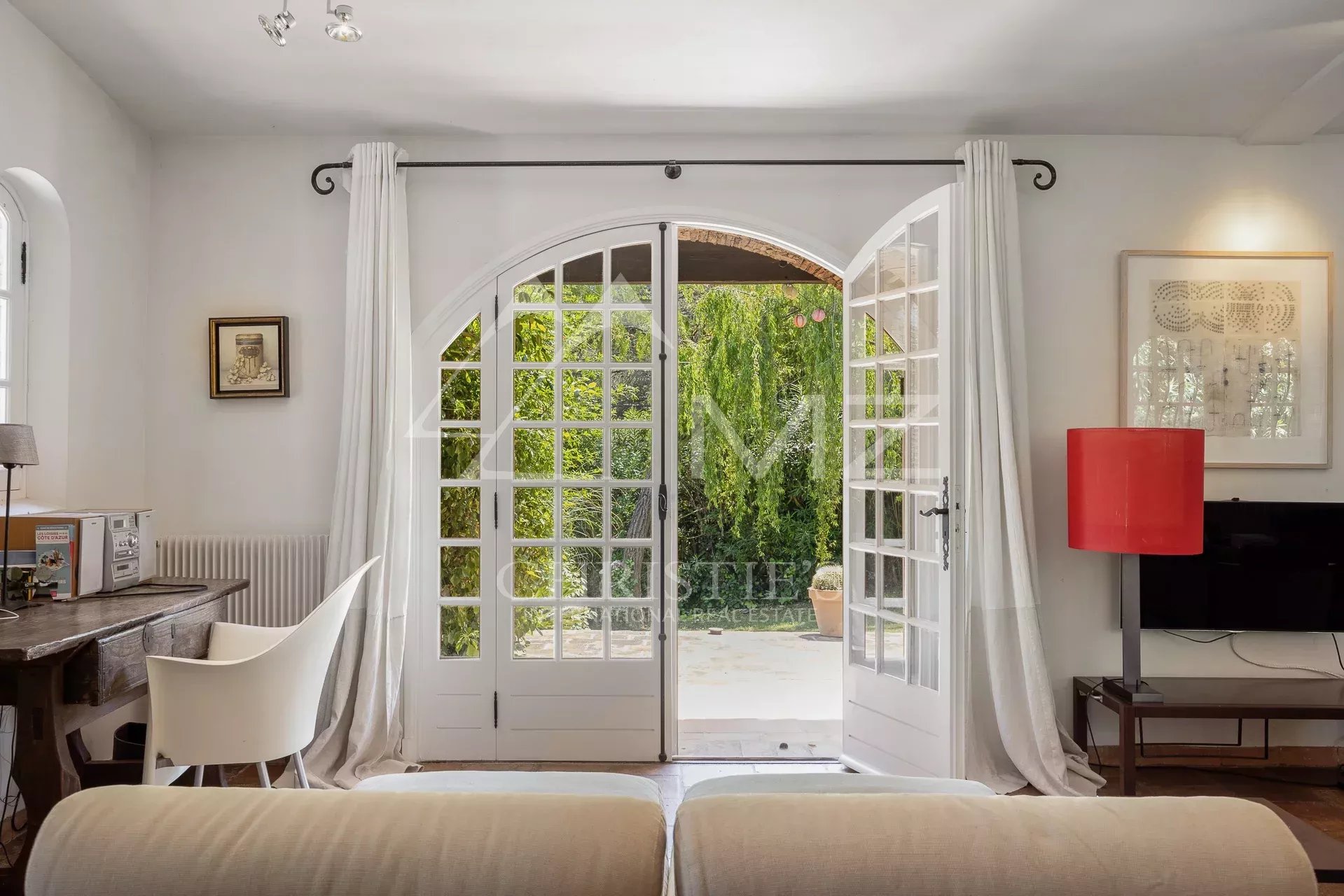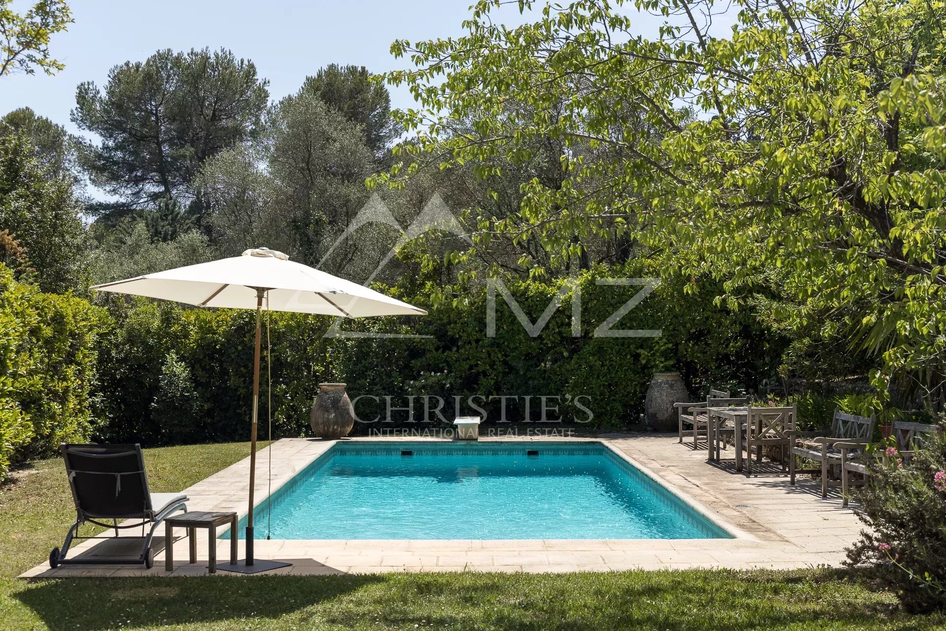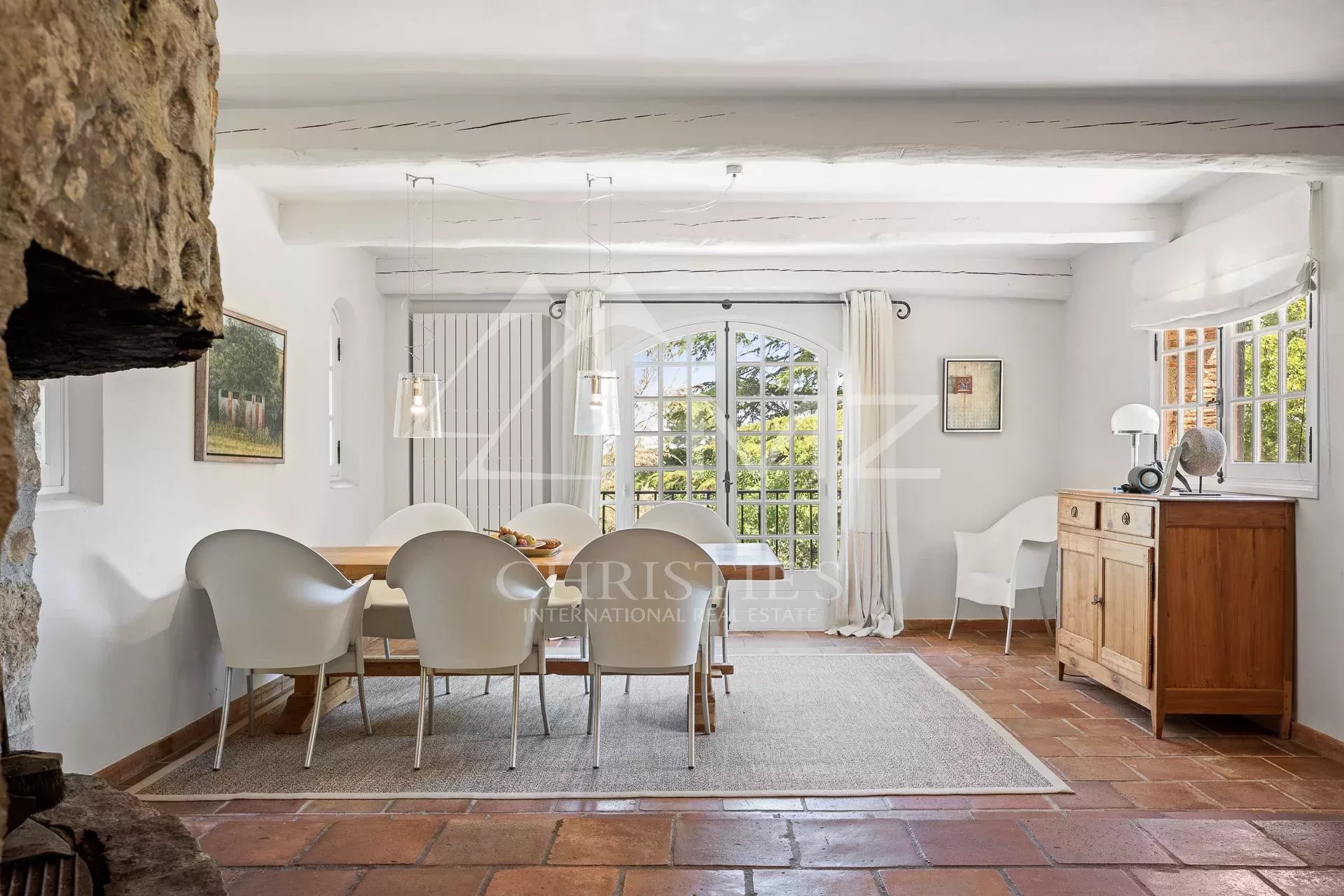 Auf halbem Weg zwischen den Dörfern Valbonne, Mougins und Plascassier liegt dieses reizende provenzalische Landhaus, das mit seinen sichtbaren Steinen, seinen Restanques und seinem Olivenhain einen unbestreitbaren Charme besitzt.