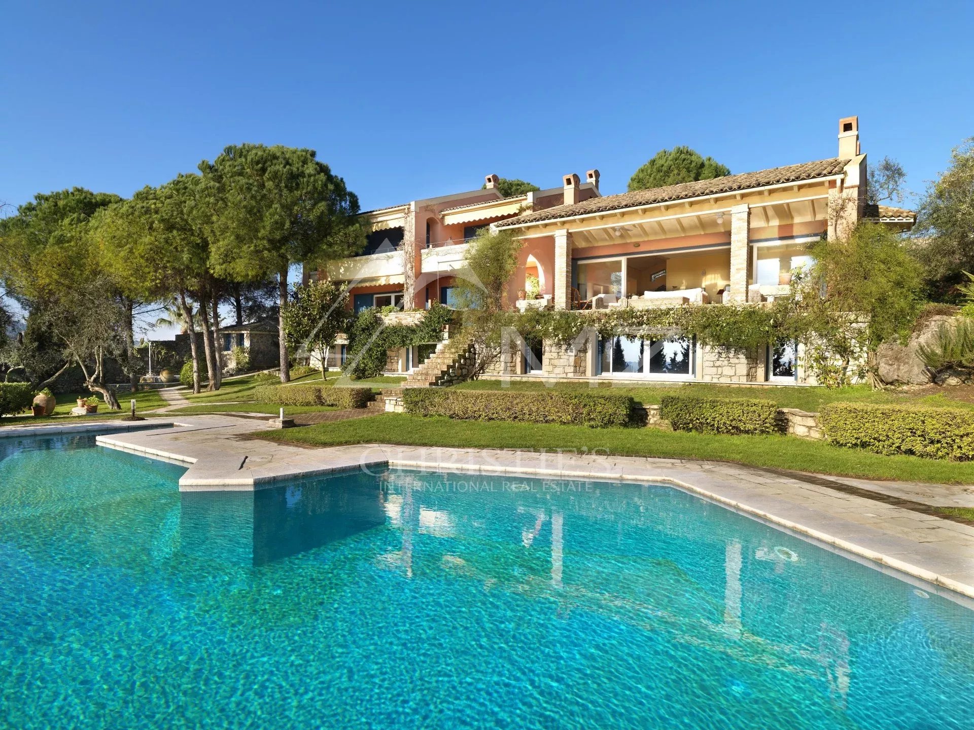 Diese luxuriöse Villa von 750 m² befindet sich in der prestigeträchtigen Enklave von Kommeno, nur 10 km von Korfu-Stadt und dem internationalen Flughafen entfernt. Sie bietet einen atemberaubenden Panoramablick auf das Meer und liegt ganz in der Nähe des Yachthafens von Gouvia. Das Haus erstreckt sich über 3 Ebenen und verfügt über großzügige Unterhaltungsbereiche, 8 Schlafzimmer, eine Bibliothek, drei Küchen und zahlreiche Terrassen. Das Grundstück von 3.500 m² ist wunderschön angelegt und verfügt über einen großen Infinity-Pool.