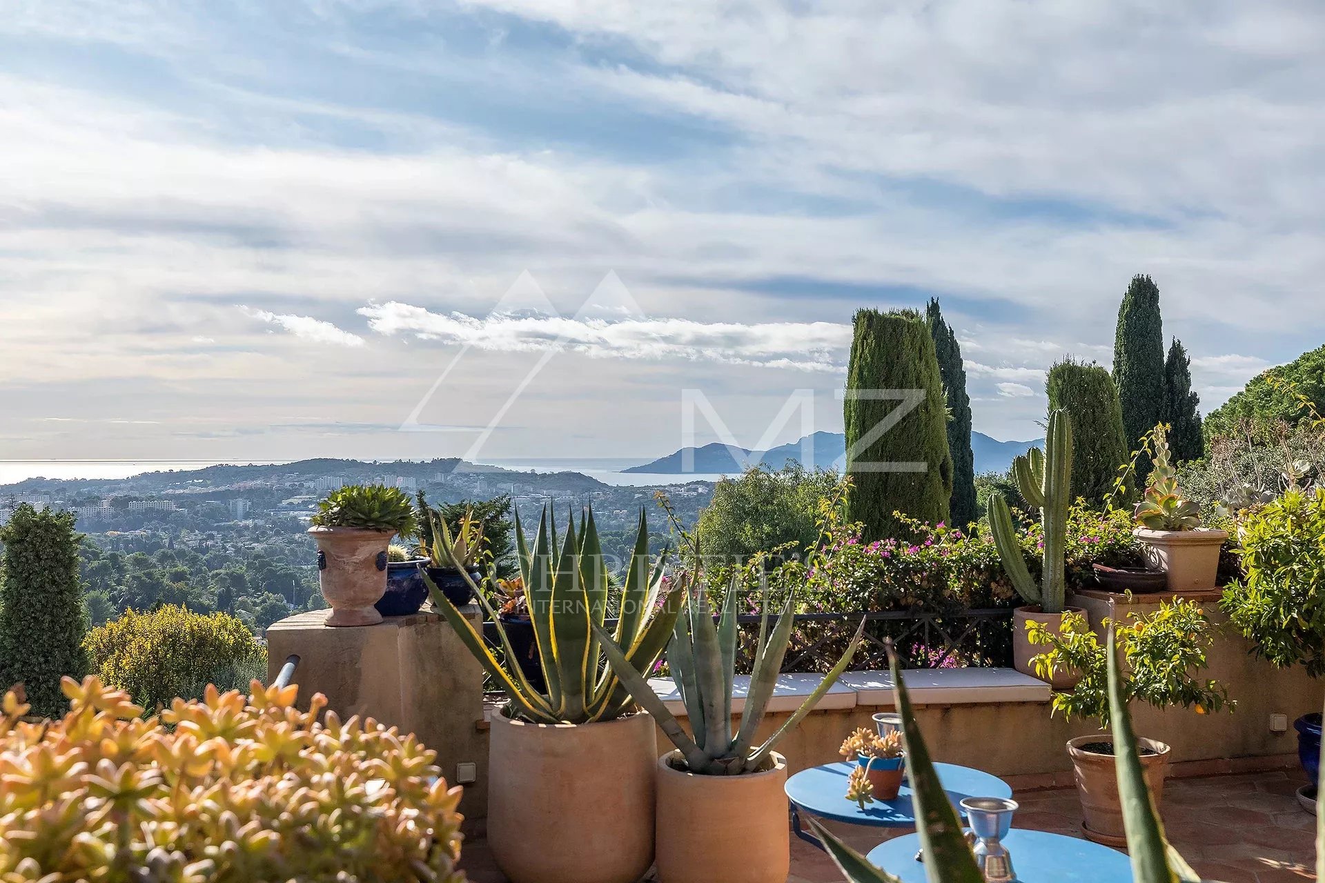 Nur wenige Schritte vom alten Dorf Mougins entfernt, mit optimaler Sonneneinstrahlung und einem Panoramablick auf die umliegenden Hügel und die Bucht von Cannes, liegt dieses imposante Herrenhaus mit einer Fläche von ca. 475 m². Das Anwesen besteht aus mehreren Rezeptionen und bietet insgesamt 8 Zimmer, die sich auf das Haupthaus, das Gästehaus und die Dienstwohnung verteilen. Der 3215 m² große Landschaftsgarten ist mit reifen Bäumen bepflanzt und verfügt über einen großen Pool mit Poolhaus und Sauna.