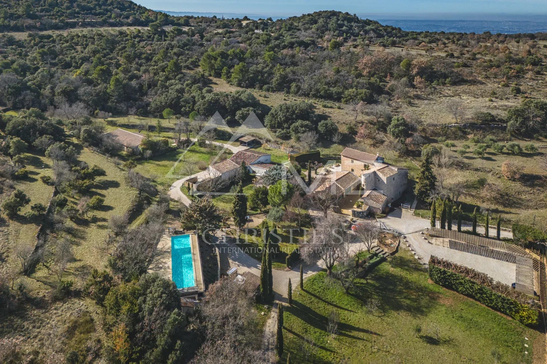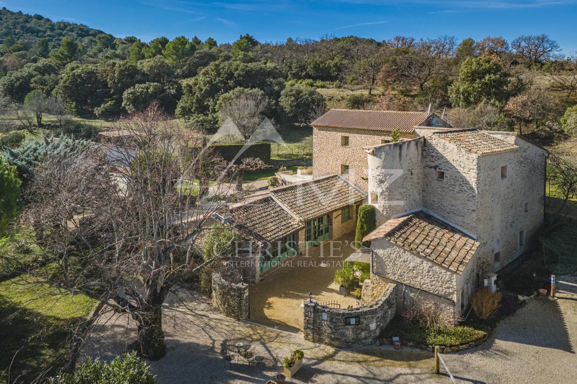 Dieser natürliche Raum bringt das imposante Gebäude der Templer mit einer Wohnfläche von über 400 m2, das vom 12. bis zum 19. Jahrhundert erbaut wurde, zur Geltung. Die Eigentümer haben das Gebäude 2012 mit Leidenschaft restauriert und heute beeindrucken die hohen Fassaden aus Trockenstein, die von einem Turm aus dem 17. Jahrhundert flankiert werden, durch ihre Schönheit, die durch die grünen Lauben, Rosensträucher und riesigen Zypressen noch verstärkt wird.