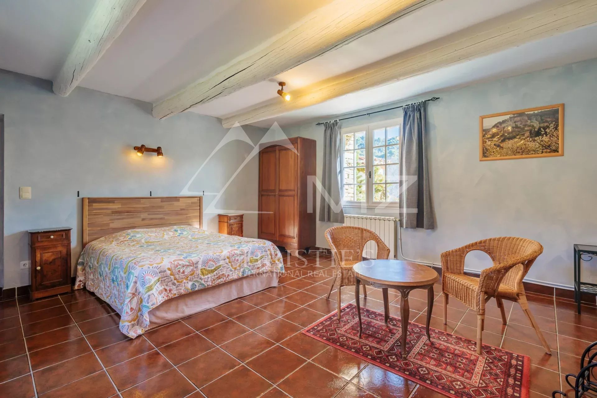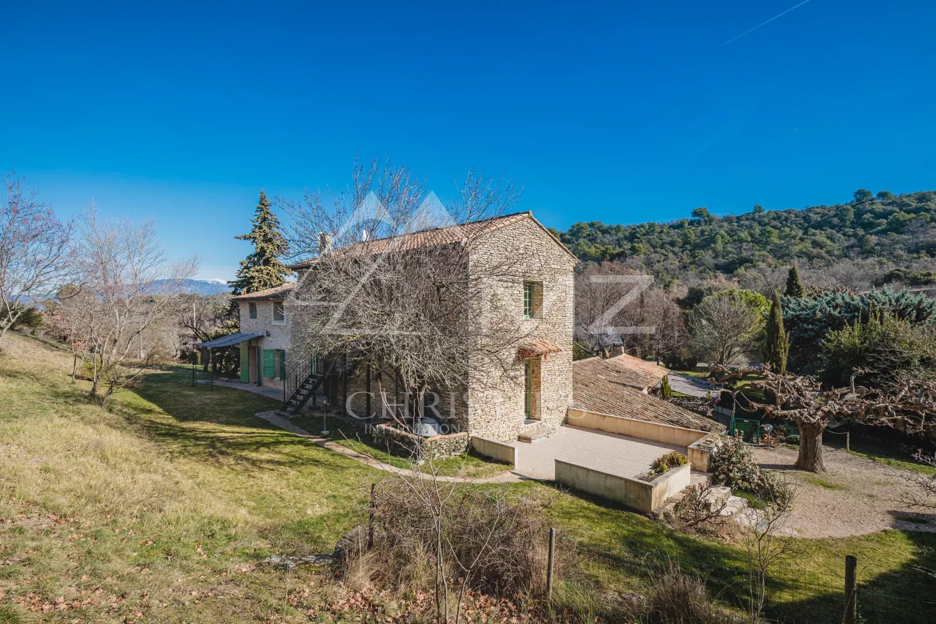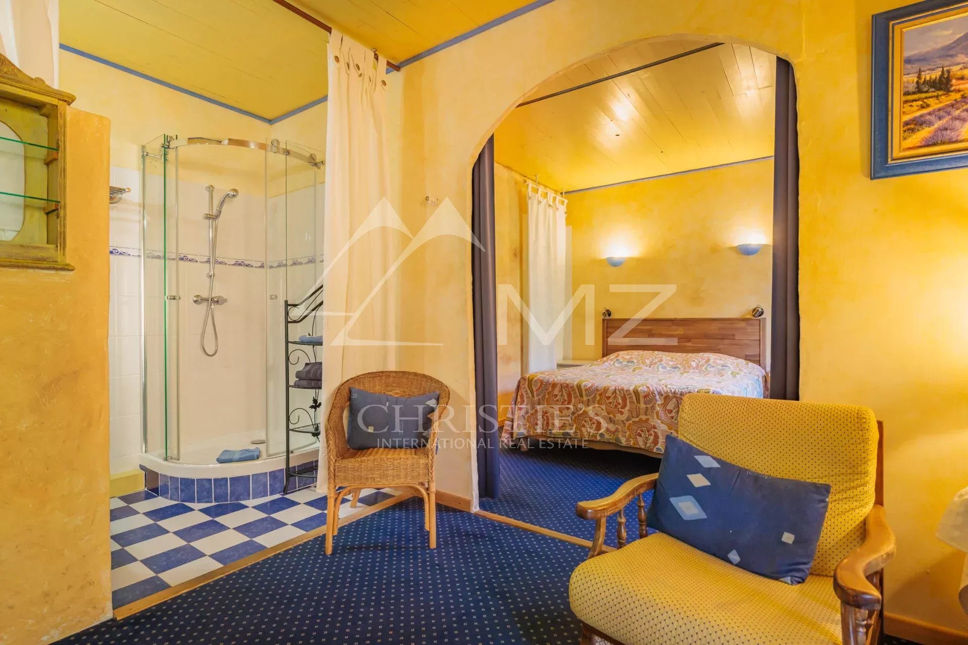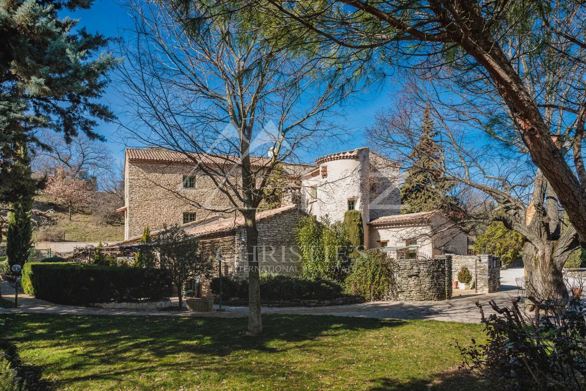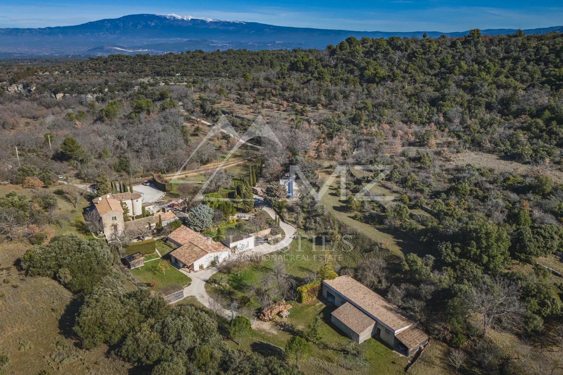 Die Aussicht ist außergewöhnlich: Mit Blick auf den Ventoux ist sie ein echtes Wahrzeichen der provenzalischen Landschaft. Auf einem 18732 m² großen Grundstück stehen majestätische Bäume, darunter eine bemerkenswerte 350 Jahre alte Linde, alte Eichen, Oliven-, Mandel-, Apfel-, Kirsch- und Aprikosenbäume, Trockenmauern, die auf einen kleinen Teich, eine Wiese, einen Hof, einen Poolbereich, ein Boulespiel, Terrassen und Innenhöfe für das Restaurant und die Zimmer führen...