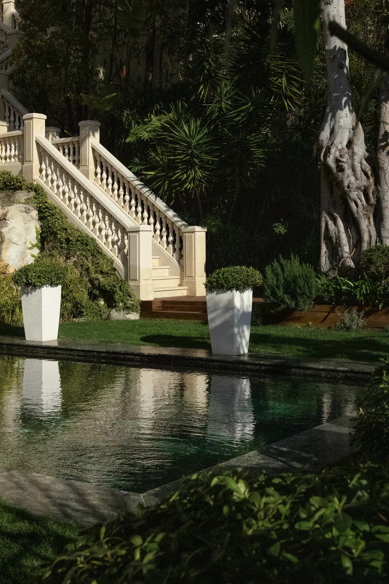 Im Außenbereich bieten die wunderschön gepflegten Landschaftsgärten eine friedliche Umgebung zum Entspannen und Genießen. Ein Swimmingpool und Sonnenterrassen sind perfekt, um das ganze Jahr über das mediterrane Klima zu genießen.
