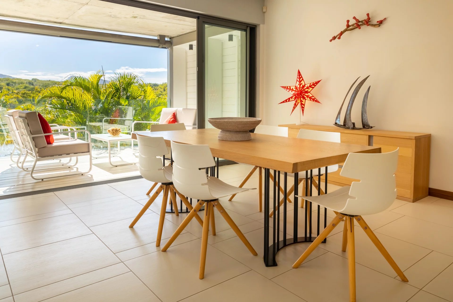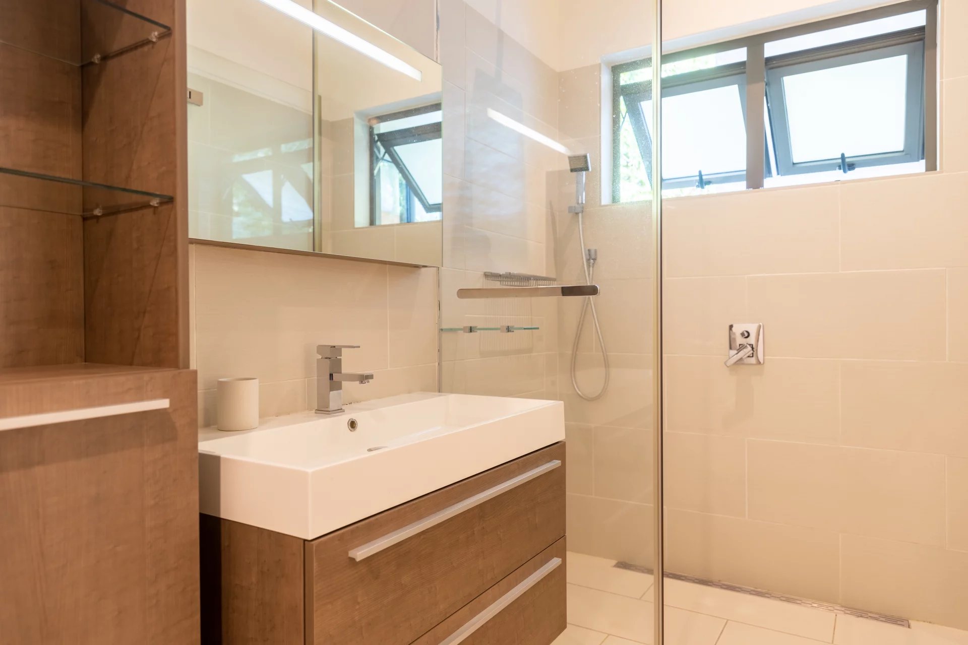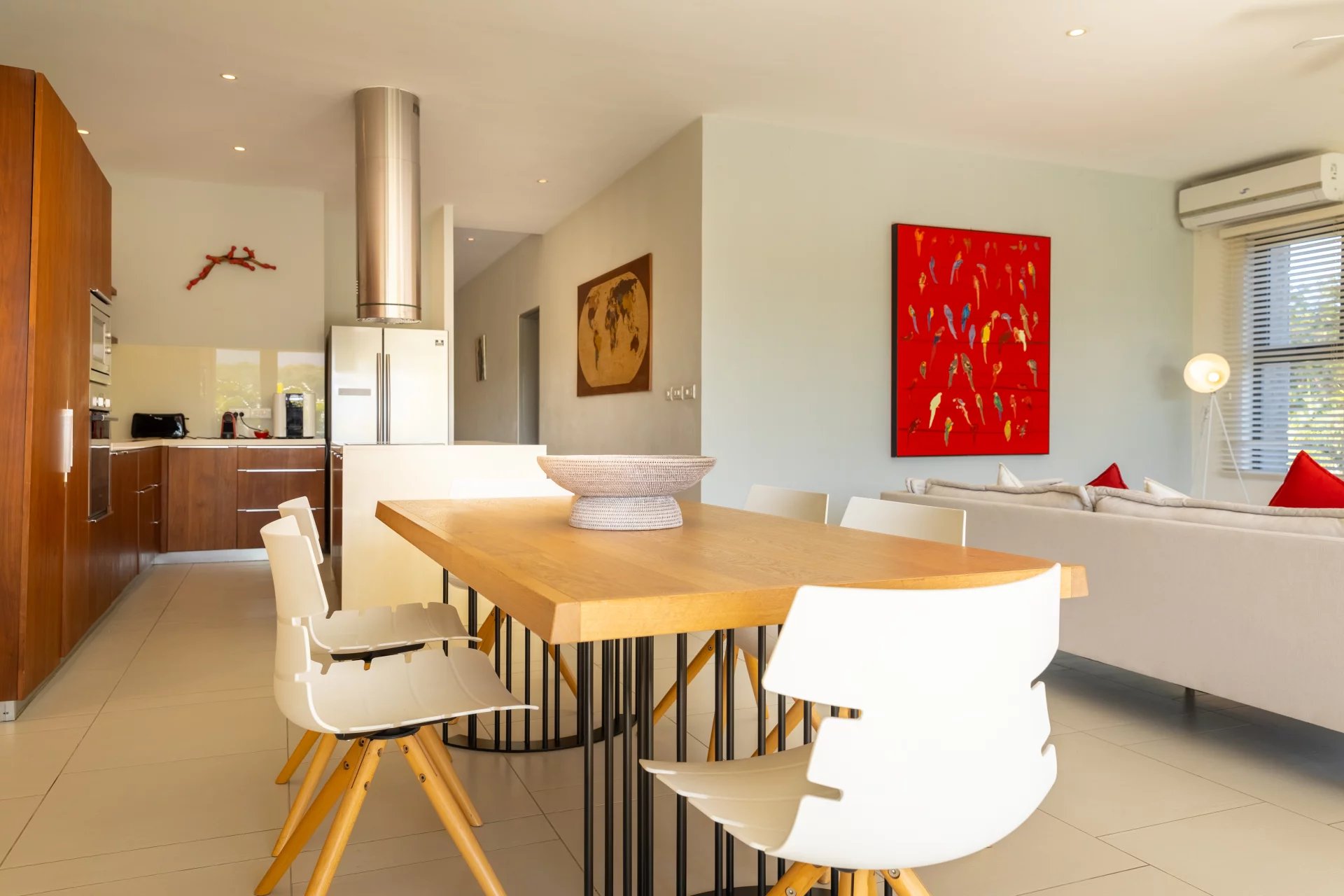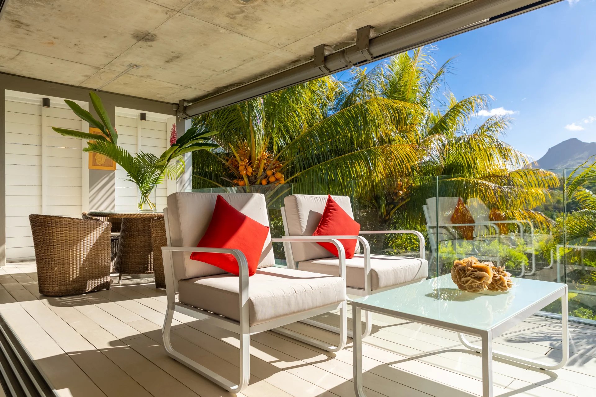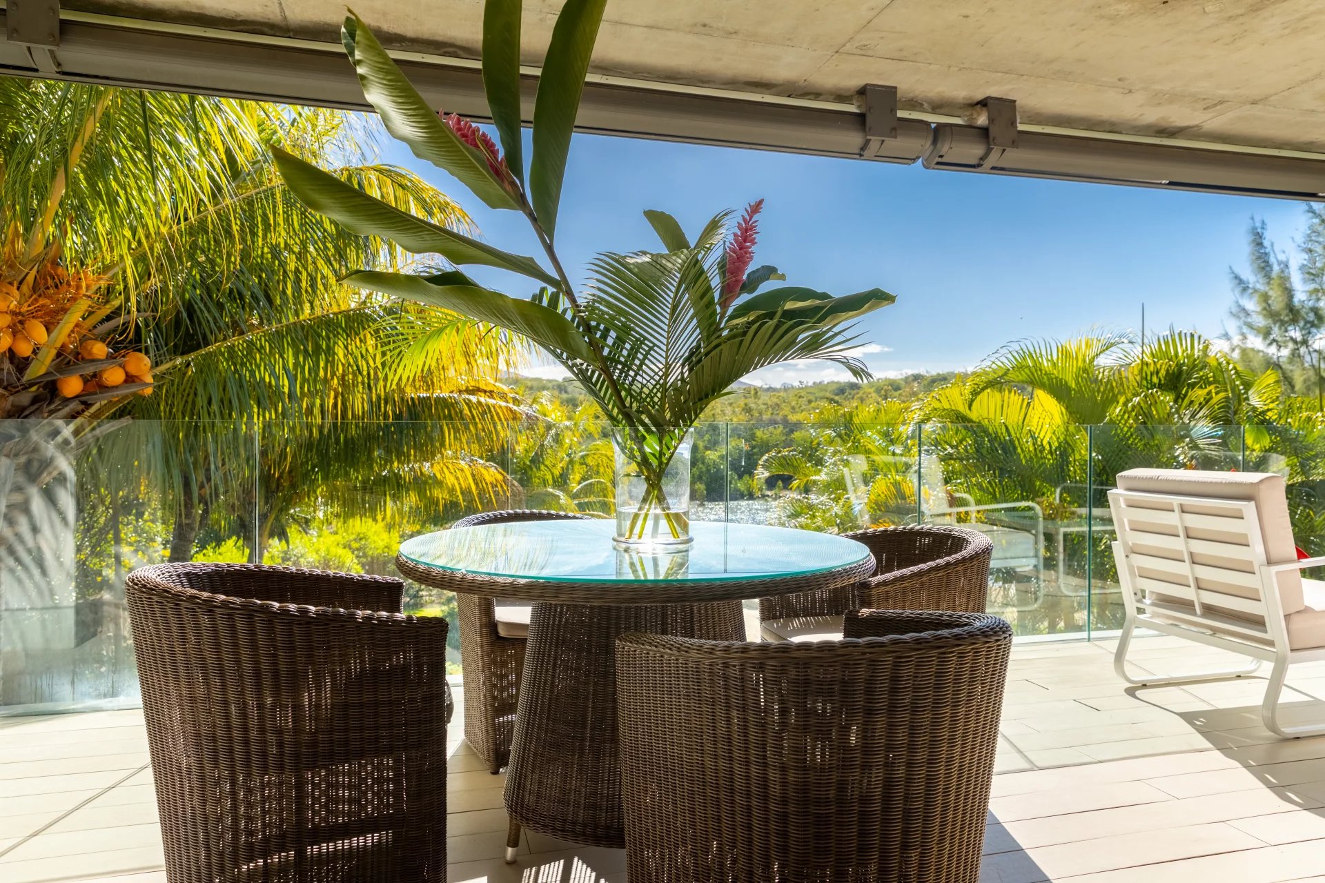 De hoofdslaapkamer en suite heeft een kleedkamer en een badkamer met bad om te ontspannen. De andere 2 slaapkamers hebben ook een eigen badkamer. Dit modern vormgegeven appartement biedt veel comfort in een trendy, tropisch-chique omgeving.