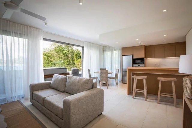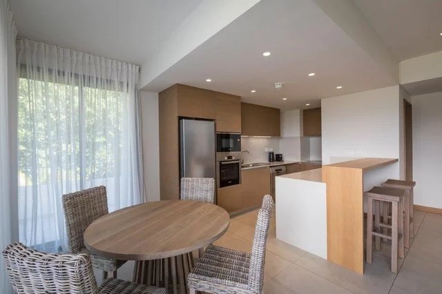 Das Apartment bietet außerdem ein Ess-/Wohnzimmer, eine gemütliche TV-Ecke zum Entspannen sowie eine große Terrasse mit privatem Pool. Die gesamte Immobilie ist komfortabel und praktisch möbliert.