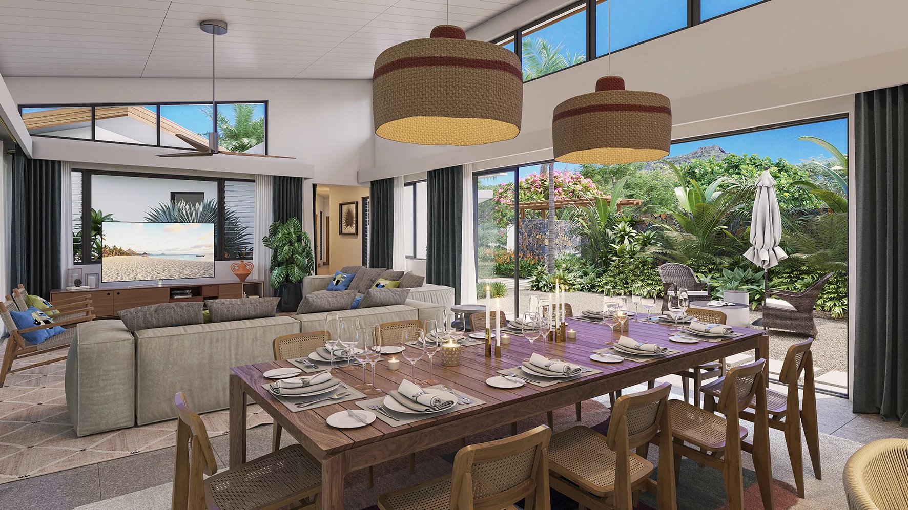 Große Sorgfalt wurde sowohl auf Design als auch auf Komfort gelegt: Alle Villen sind von üppiger Vegetation und tropischen Gärten umgeben, durchflutet von Tageslicht und spektakulären Sonnenuntergängen.