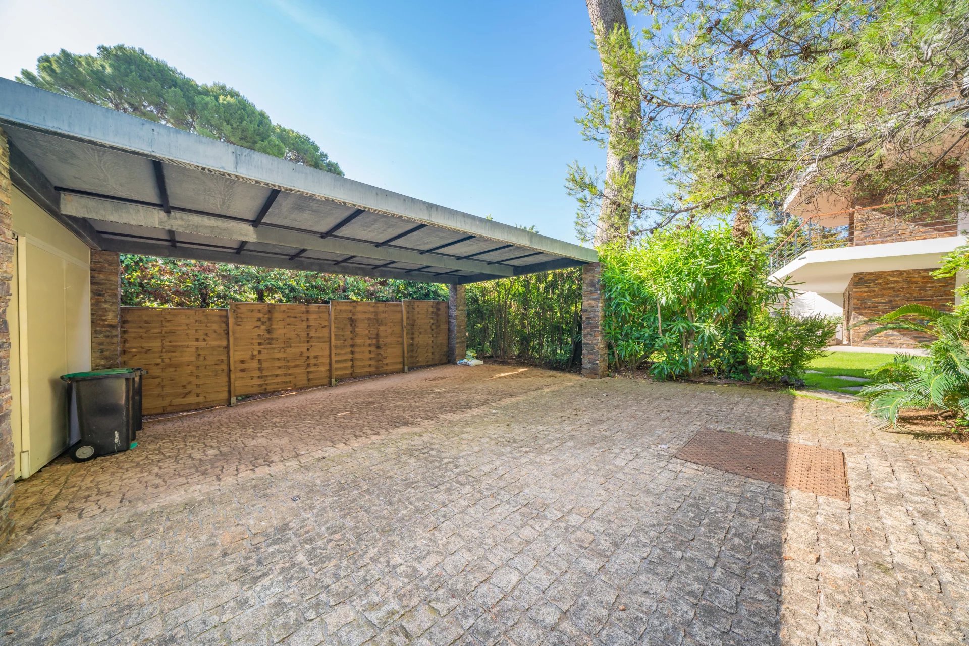 In zweiter Reihe gelegen, in einer Sackgasse, abseits vom Verkehr, befindet sich diese nach Süden ausgerichtete Villa mit 5 Schlafzimmern und 5 en-suite Badezimmern nur wenige Gehminuten von den Stränden von Garoupe entfernt.