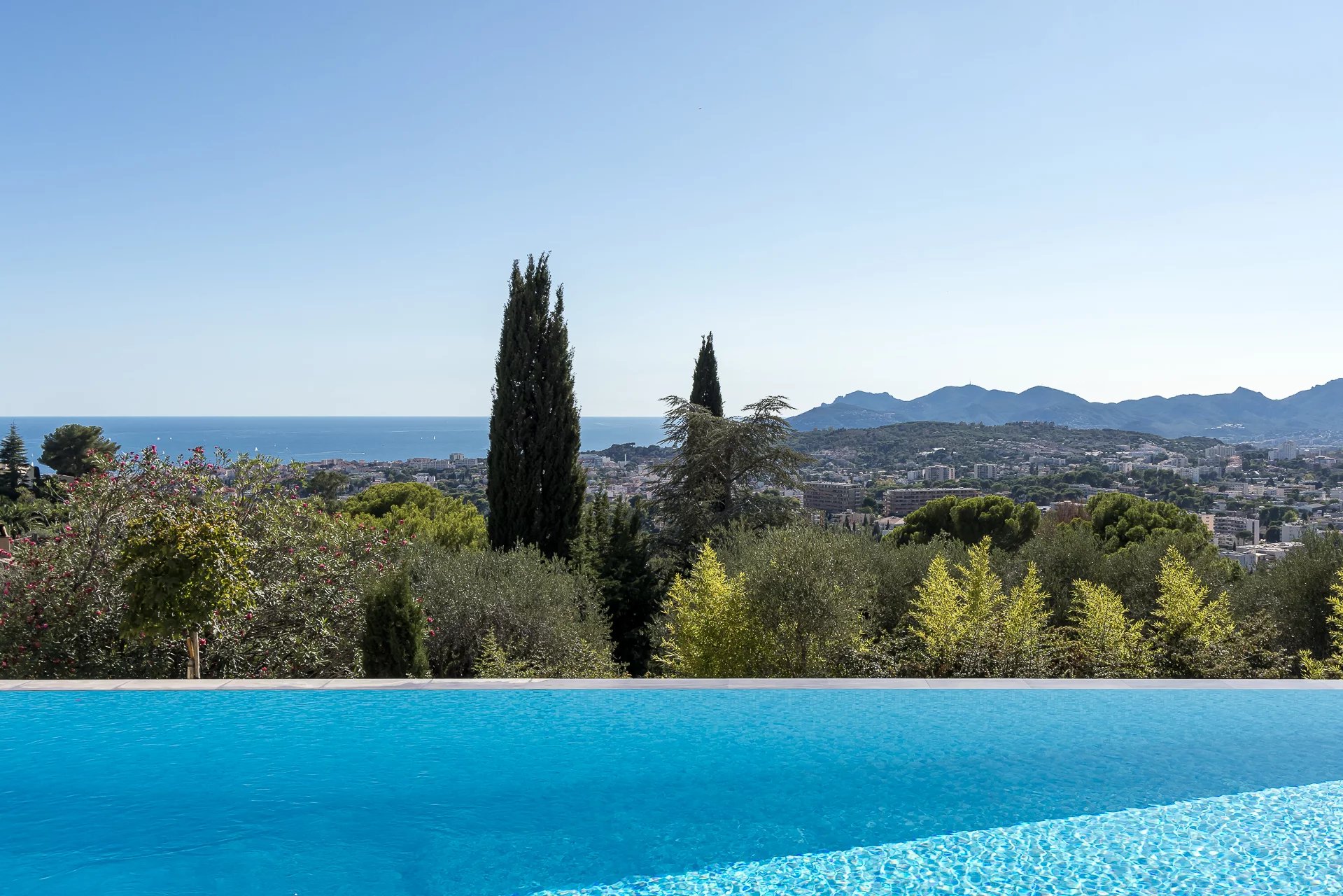 Moderne Villa mit Panoramablick auf die Hügel und das Meer