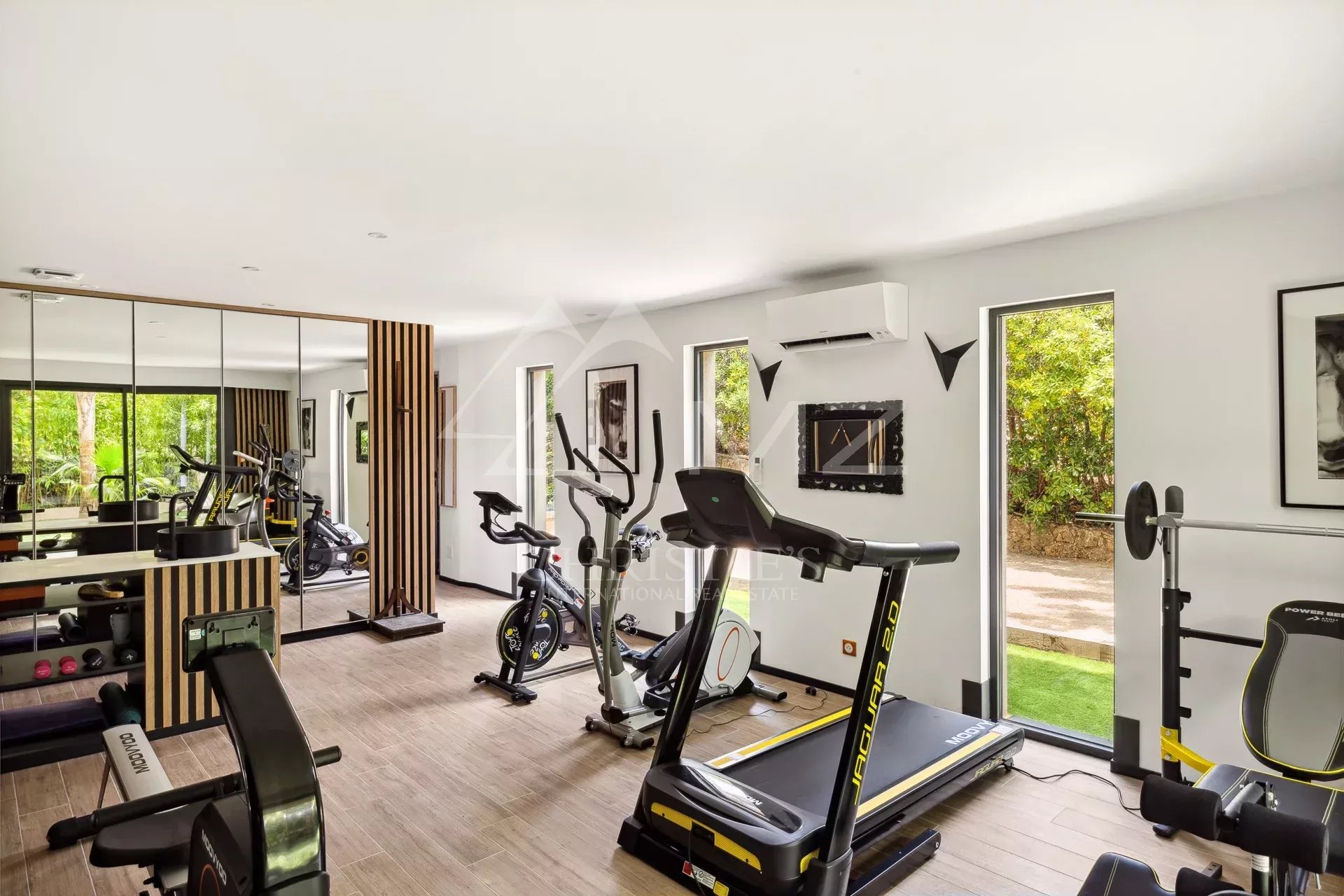 Fitnessraum, Sauna, Waschküche, Bouleplatz, Weinkeller und 4 Parkplätze.