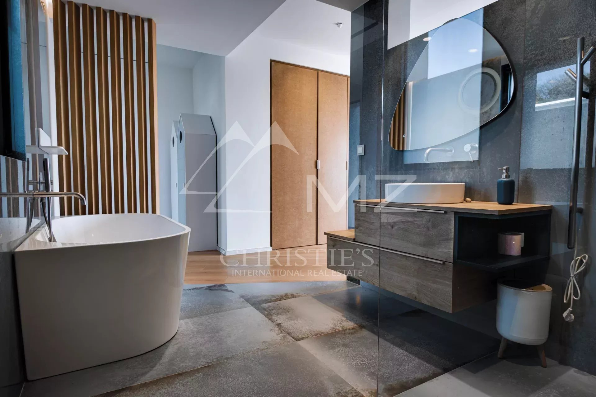 In einer beliebten Gegend von Mougins, eine sehr schöne moderne Villa von ca. 500 m², die einen raffinierten Garten mit einem beheizten Infinity-Pool, ein angenehmes Poolhaus (ausgestattet mit einem Pizzaofen und einem Grill) bietet. Auf einem Grundstück von ca. 2000 m², in absolut ruhiger Lage, verfügt das Haus im Gartengeschoss über ein großes Wohnzimmer mit Kamin, ein Esszimmer, eine offene Küche, ein Spielzimmer und seinen Kinosaal. Ein Spa verbindet das Haus mit der Terrasse mit einem Jacuzzi, einer Sauna, Toilette und Duschraum. Im Erdgeschoss befindet sich eine schöne große Mastersuite mit Ankleidezimmer und großem Badezimmer, auf der gleichen Etage ein Doppelzimmer en suite und ein Hauswirtschaftsraum. Im Obergeschoss befinden sich 3 Schlafzimmer, jedes mit Dusche oder Bad und eigener Terrasse. Abstellraum und Parkplätze auf dem Grundstück.