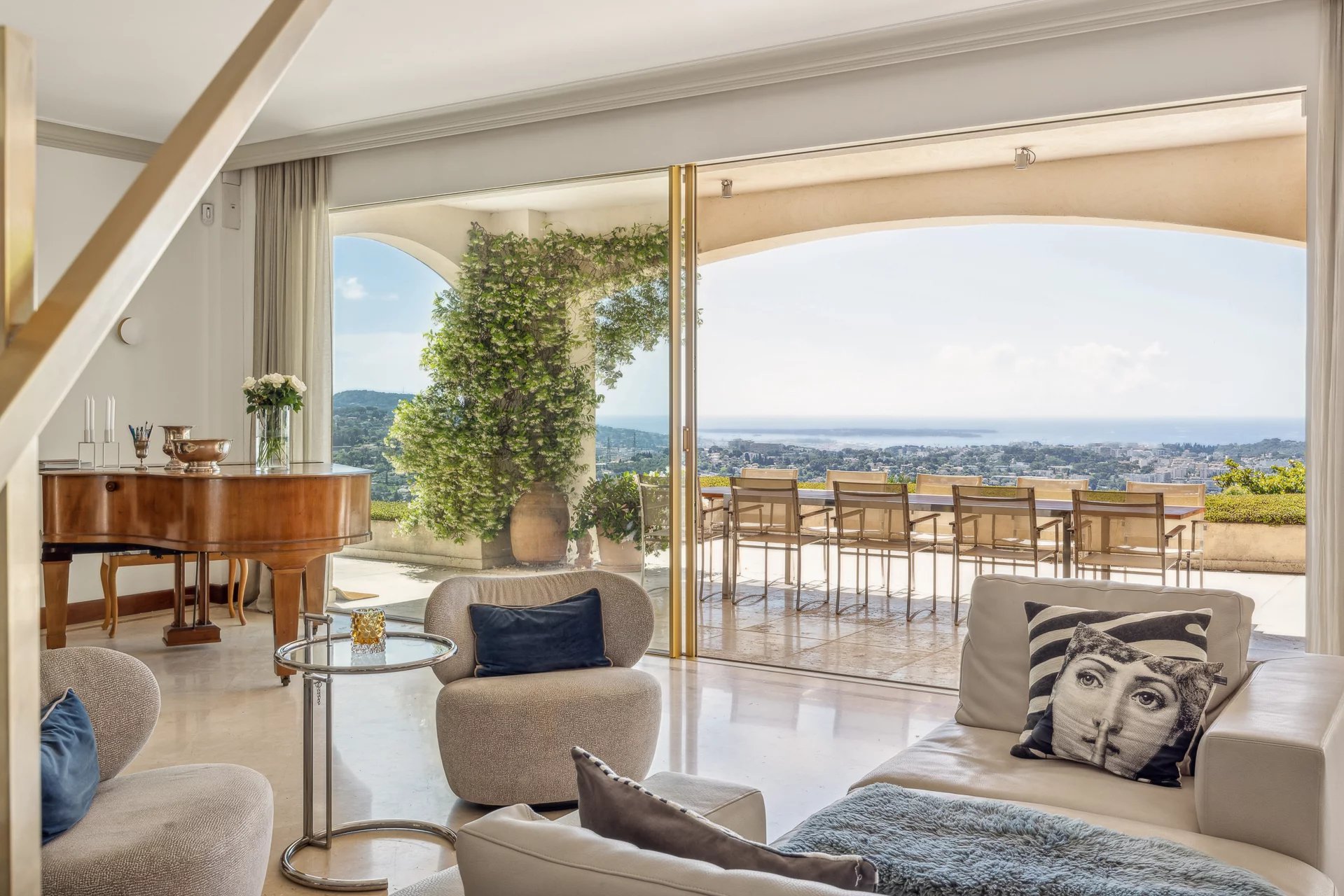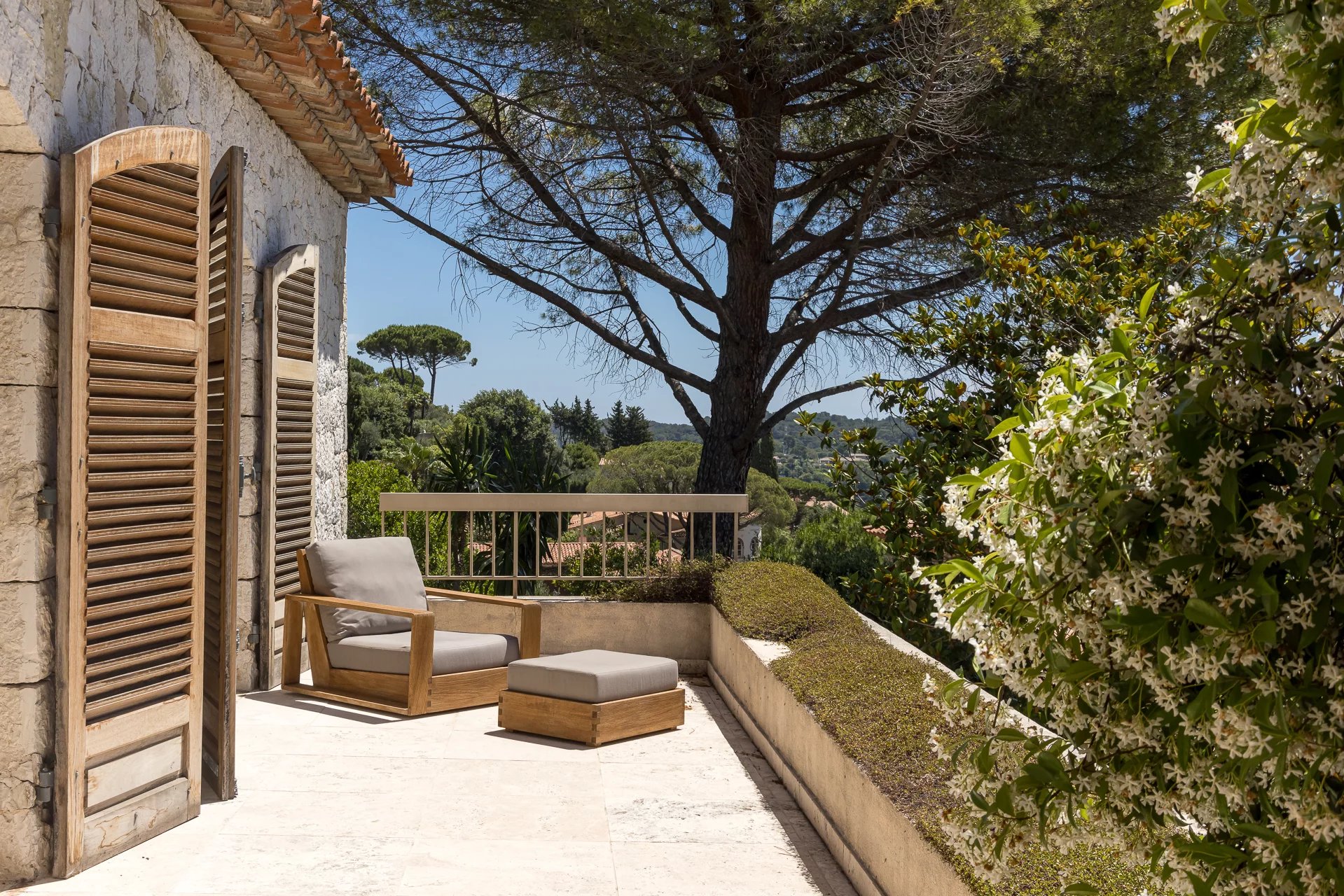 In idealer Lage, nur 5 Gehminuten von der Altstadt von Mougins entfernt, bietet dieses bezaubernde Anwesen einen spektakulären Panoramablick auf das Meer. Die raffiniert dekorierte Villa verfügt über 5 Schlafzimmer und einen schönen Wohnbereich von ca. 100 m², der sich zu einer Sonnenterrasse und einem Sommer-Esszimmer öffnet.