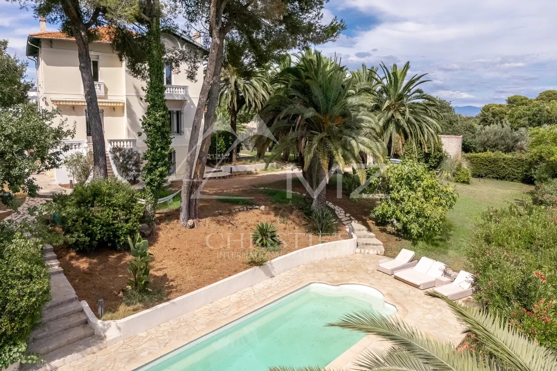 Ideal gelegen, nahe dem Stadtzentrum von Antibes, den Stränden von Juan-les-Pins und den Geschäften, bietet dieses prestigeträchtige Anwesen aus der Belle Époque, das Anfang des 20. Jahrhunderts erbaut und 2017 komplett renoviert wurde, elegante Ausstattungsmerkmale.