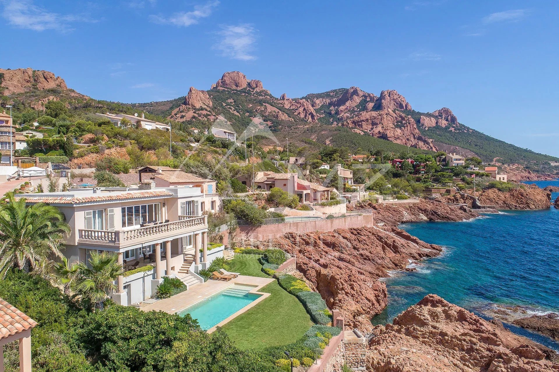 Am Ausgang des Naturschutzgebietes Cap Roux gelegen, charmante Villa in Südlage, komplett renoviert, auf 2 Ebenen, mit 4 Schlafzimmern, auf einem flachen Grundstück von ca. 1000m2 mit beheiztem Pool und mit direktem Zugang zum Meer. Coup de coeur, 35 Minuten von La Croisette, 10 Minuten vom Hafen und weniger als eine Stunde vom Flughafen Nizza entfernt.