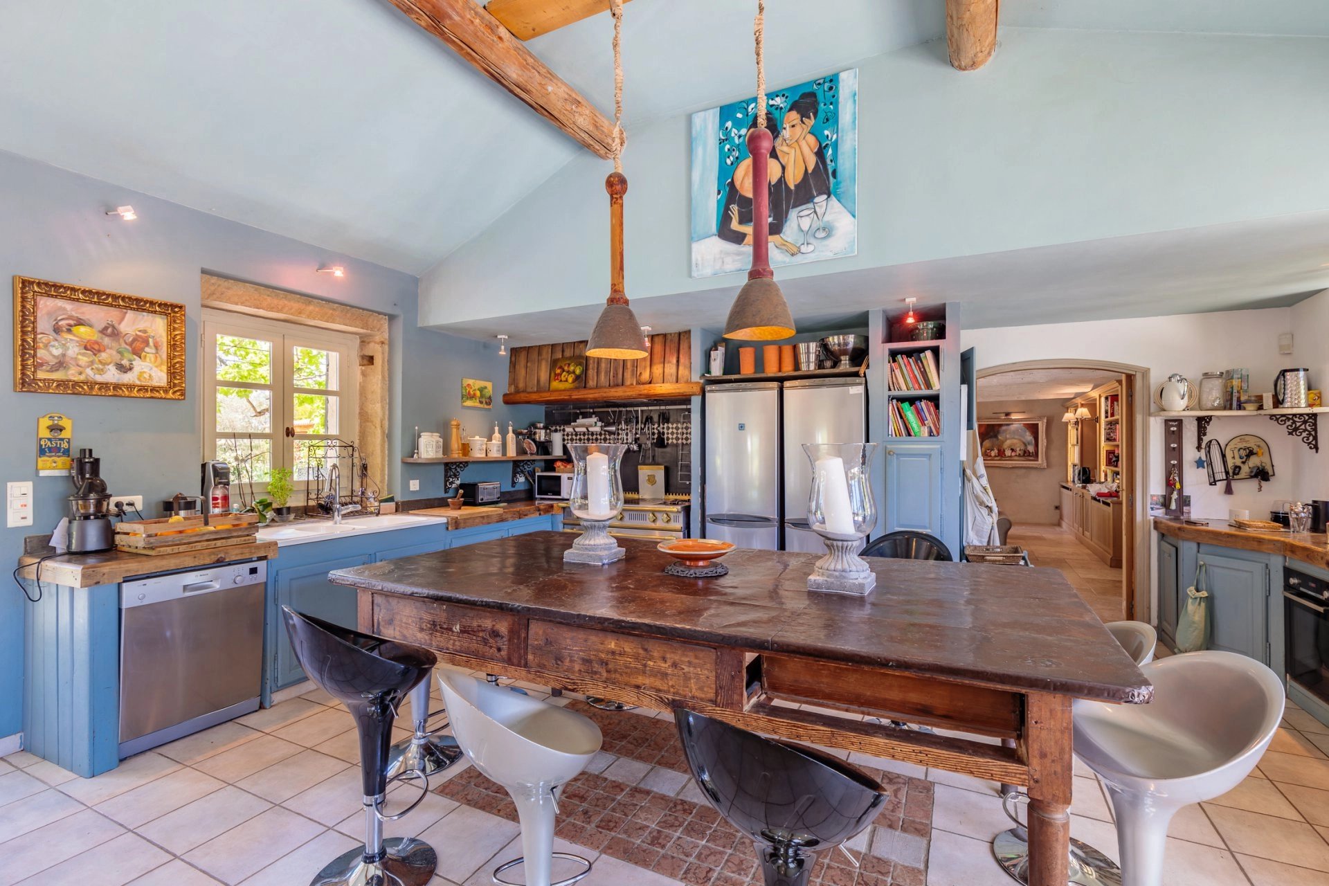 Große Wohnküche, die sich zum Hof und Garten hin öffnet, Wohnzimmer mit Heimkino, schönes gewölbtes Esszimmer, das sich zum Hof hin öffnet. Die 6 Schlafzimmer (mit 3 Badezimmern und 2 Duschräumen) sind auf den verschiedenen Ebenen verteilt, um eine große Gruppe oder eine große Familie unterzubringen.