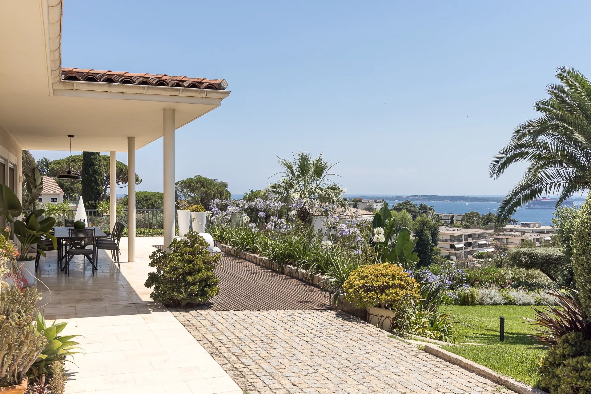 In erhöhter Lage auf den begehrten Hügeln von Croix-des-Gardes gelegen, bietet diese Villa einen atemberaubenden Blick auf das Meer und das Estérel-Gebirge – in einer ruhigen und gehobenen Wohngegend.