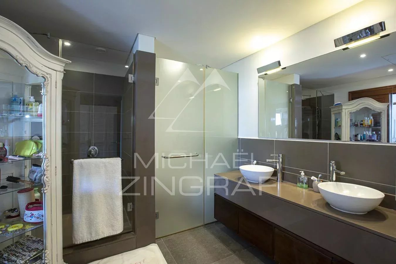 Dieses Penthouse vermittelt dank seines kleinen Gartens und insbesondere des privaten Schwimmbades den Eindruck einer unabhängigen Villa, ideal für eine Familie mit Kindern.