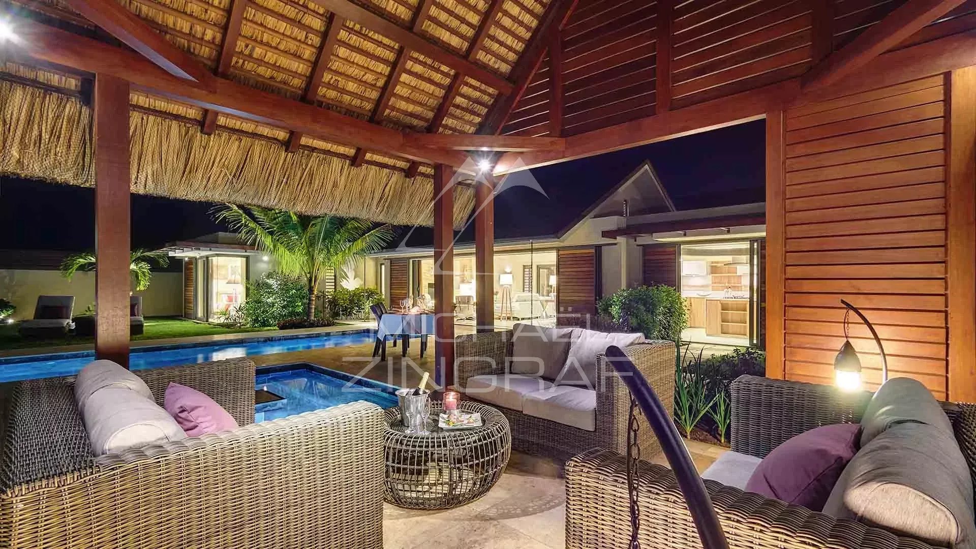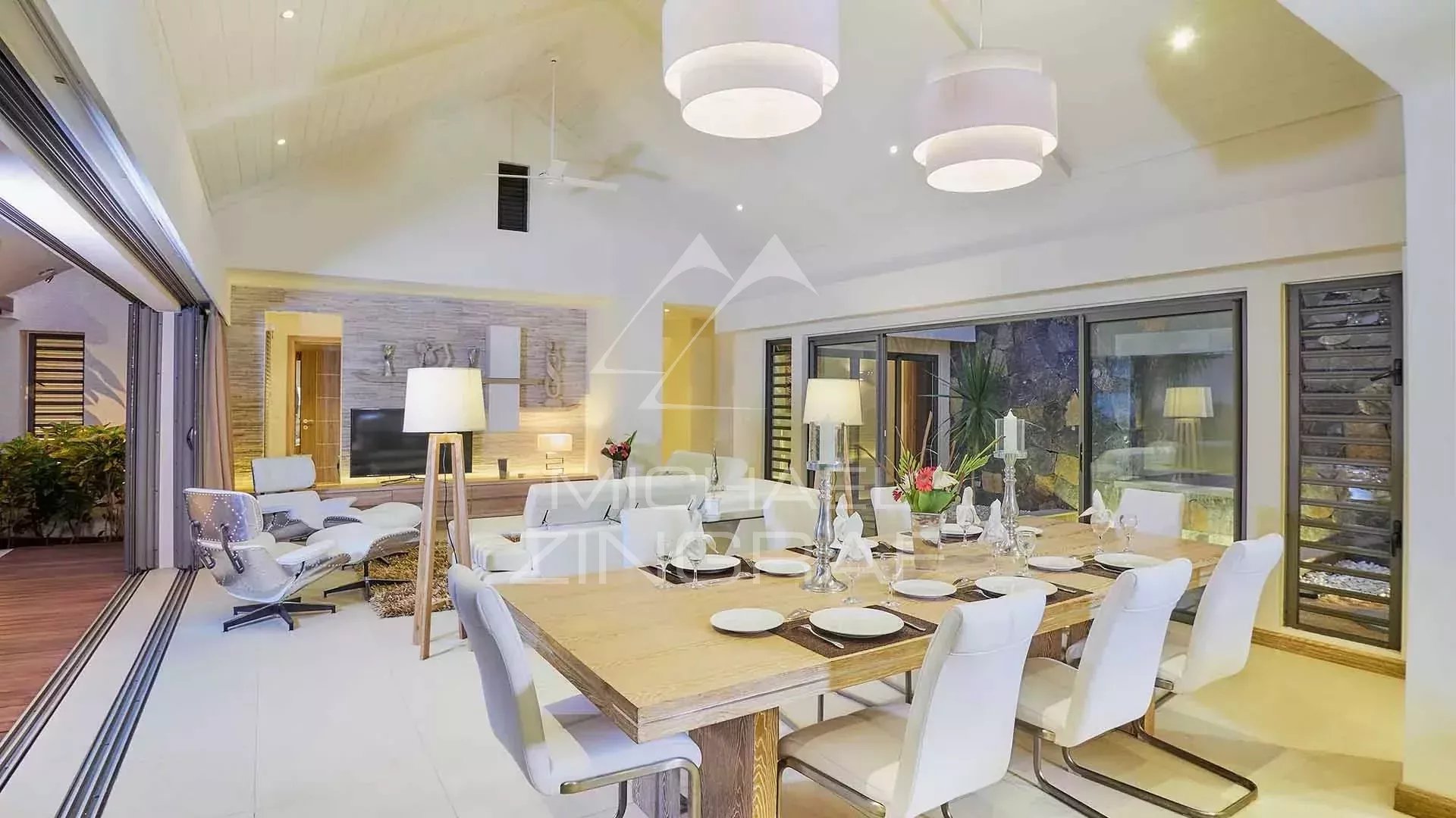 Entdecken Sie diese 273 m² große, prachtvolle Villa, die Luxus, Komfort und Eleganz vereint. Eingebettet in eine idyllische tropische Umgebung bietet sie helle und großzügige Wohnbereiche, die perfekt auf das mauritische Klima abgestimmt sind.