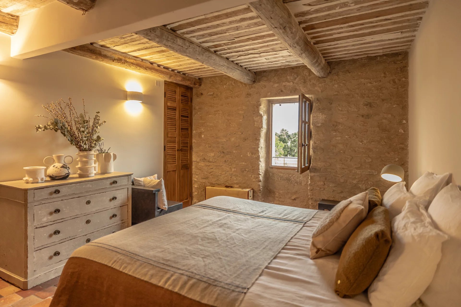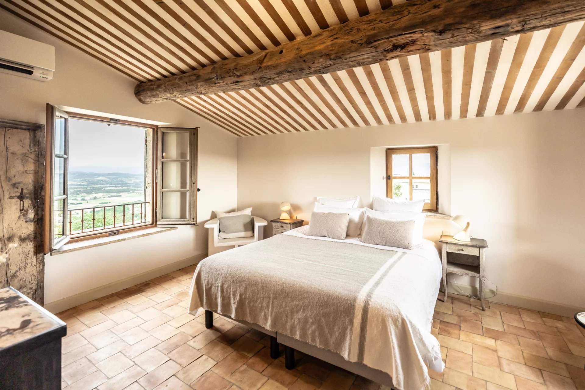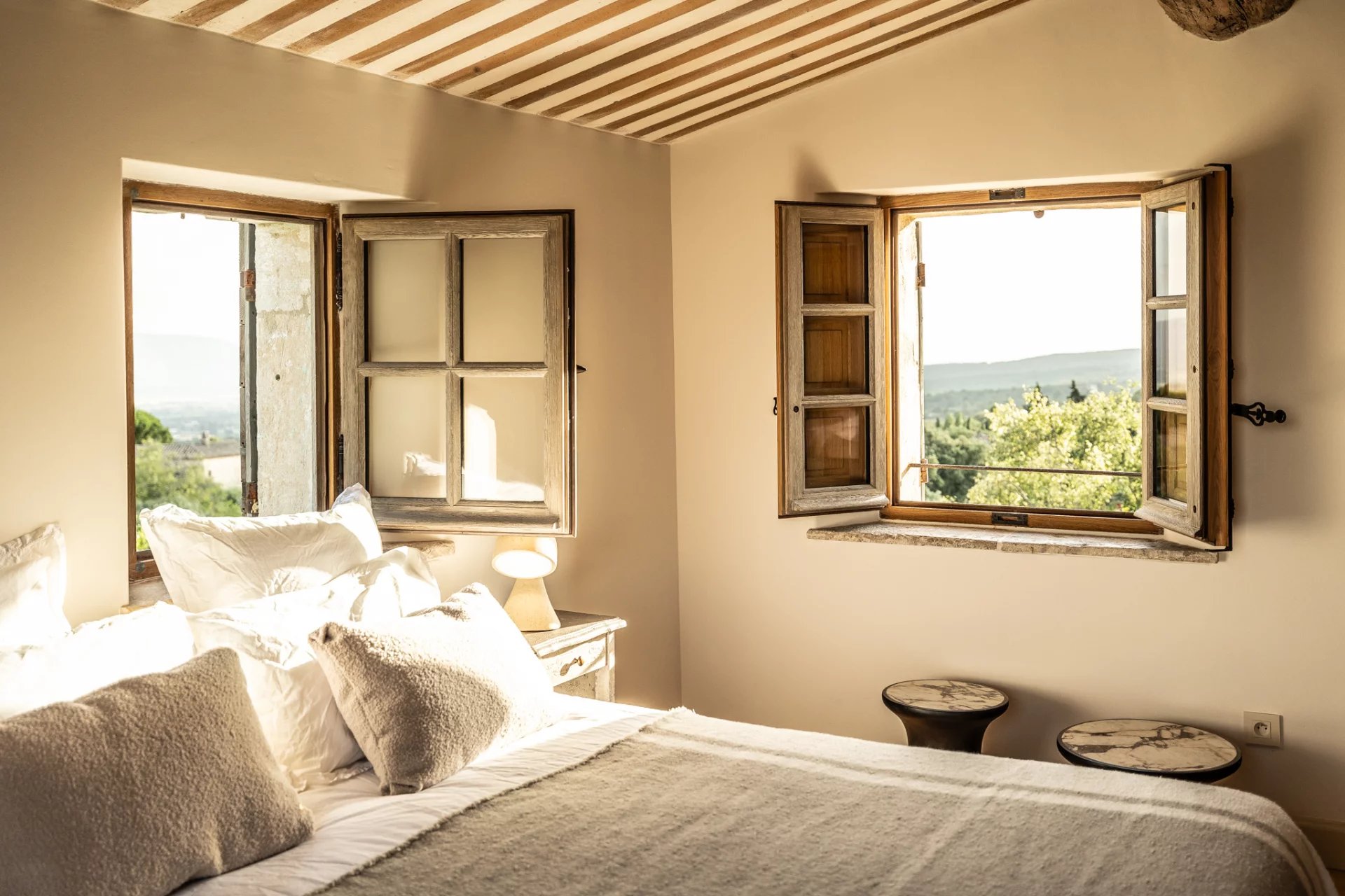 Jede der drei Suiten hat ihre eigene Identität, sei es, dass Sie in einer authentischen, renovierten Borie schlafen (die Suite im Erdgeschoss) oder einen atemberaubenden Blick auf das Dorf und den Luberon genießen (die Suiten im ersten und zweiten Stock).